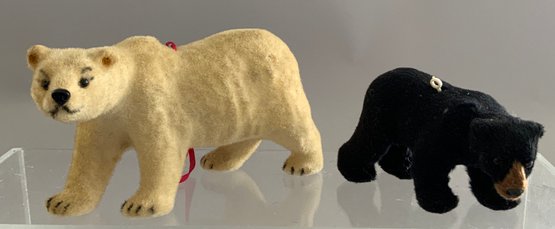 w/ label ”Sonsco Made in Occupied Japan”, 6” Flocked Polar Bear w/ Label “Handwork Kunstlerschutz, West Germany”, & two 4” bears, one black & one brown