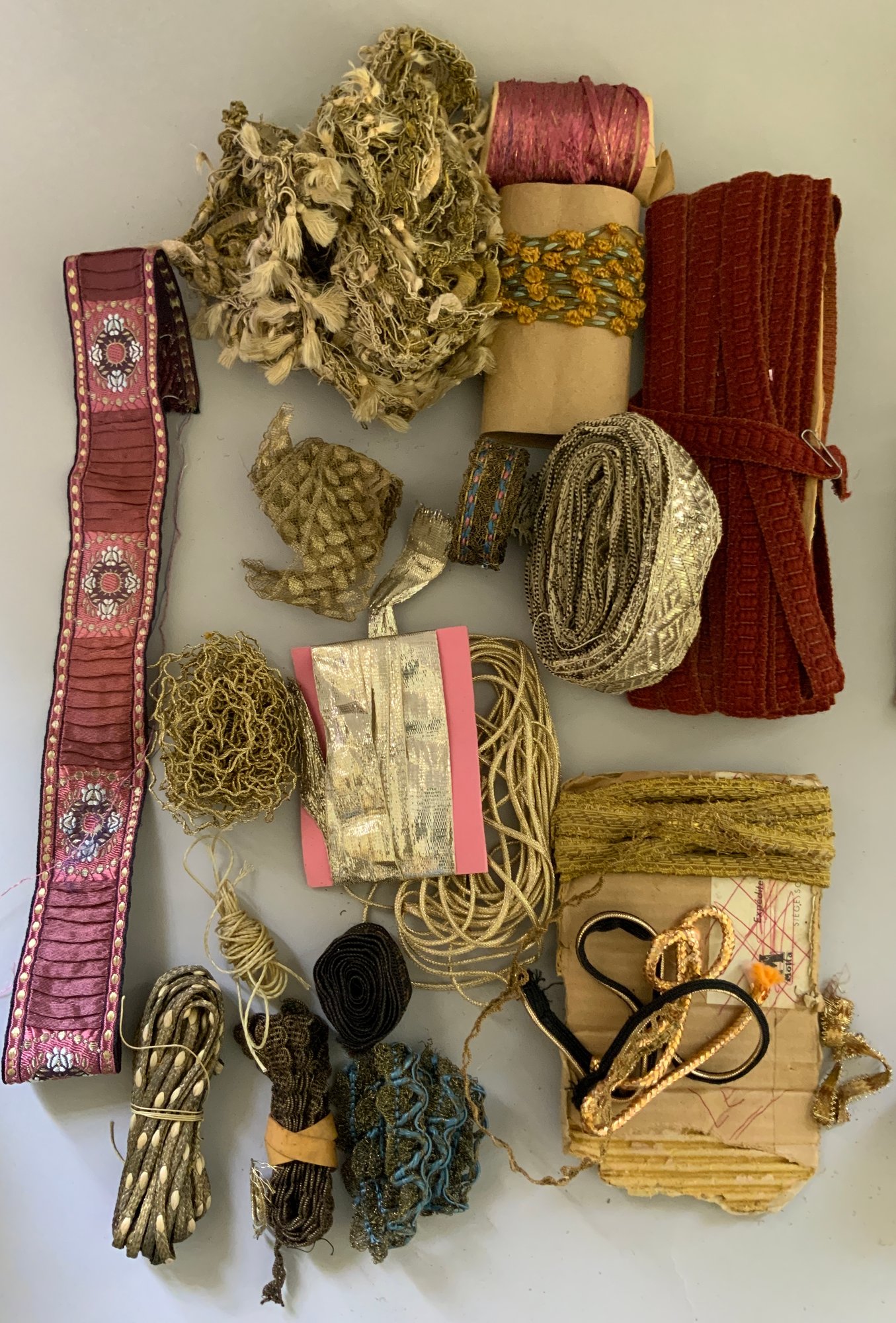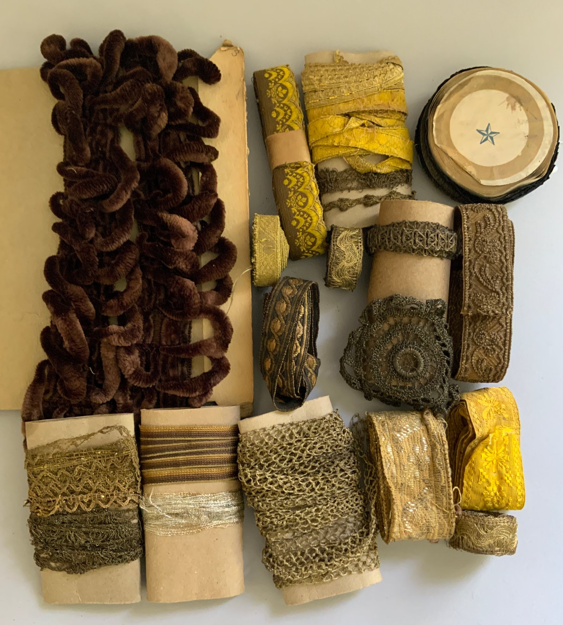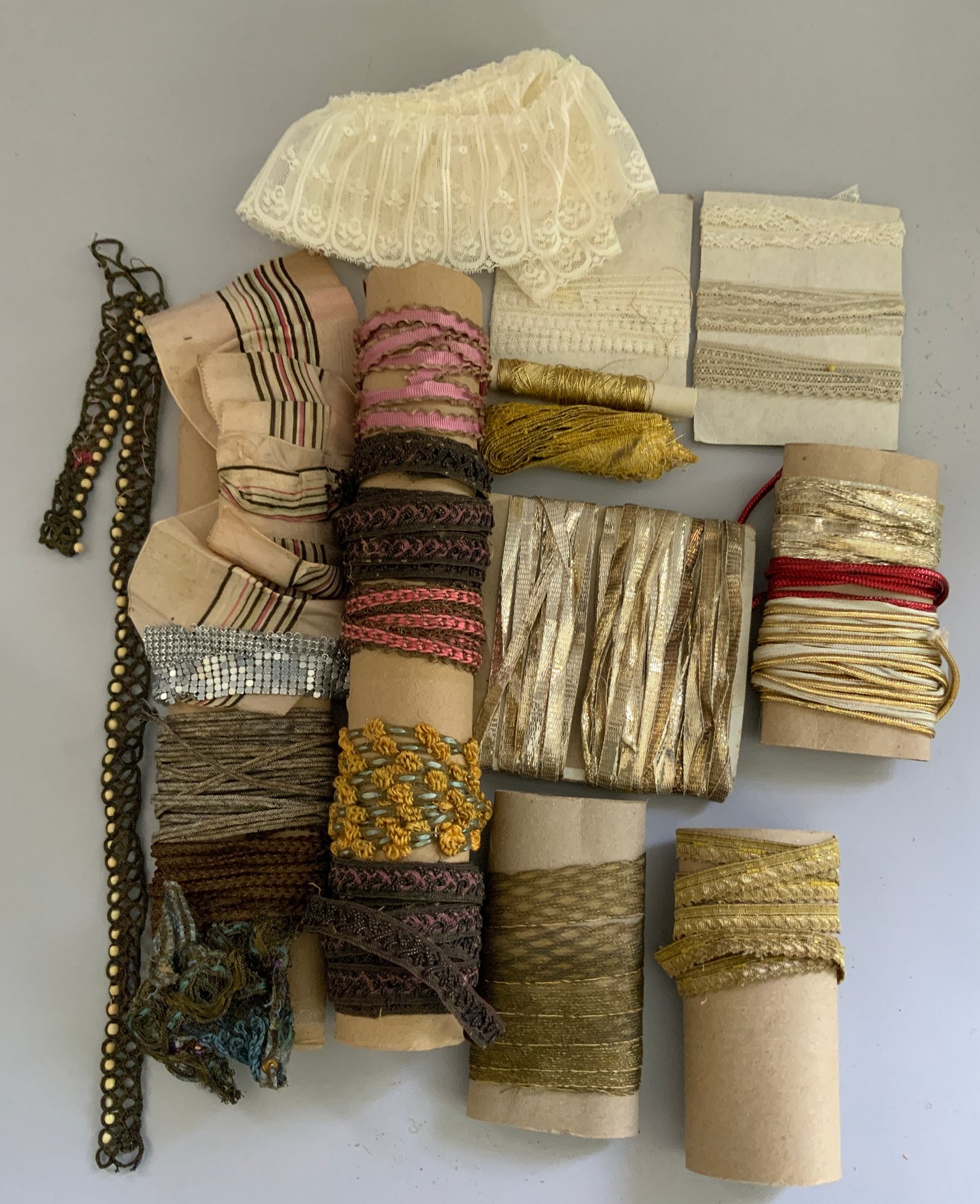 Box lot of early trims & lace