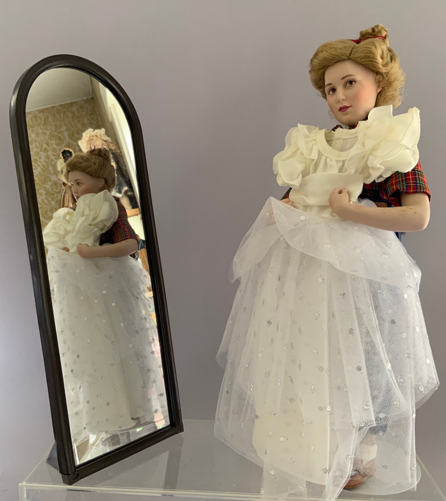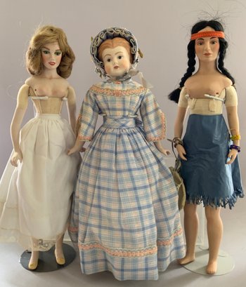 Box of artist-made dolls:Mercier Girl by Goodie B.; Little Women; Agatha by Lul 1975; Princess Kimime by LUL 1977; Danbury Mint “Prom Dress” Norman Rockwell Sat Evening Post cover COA & box and 3 Hummel dolls