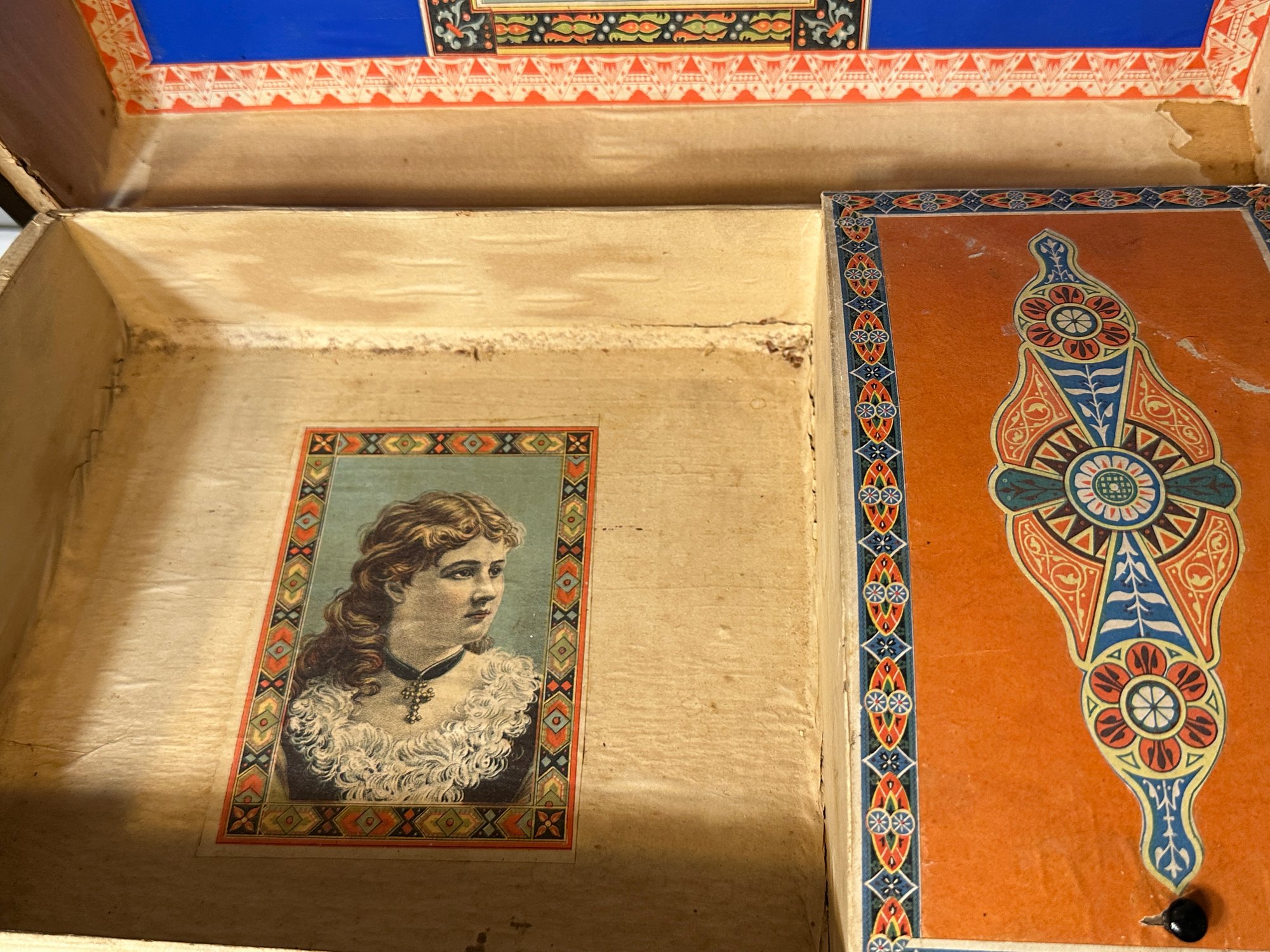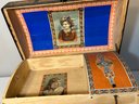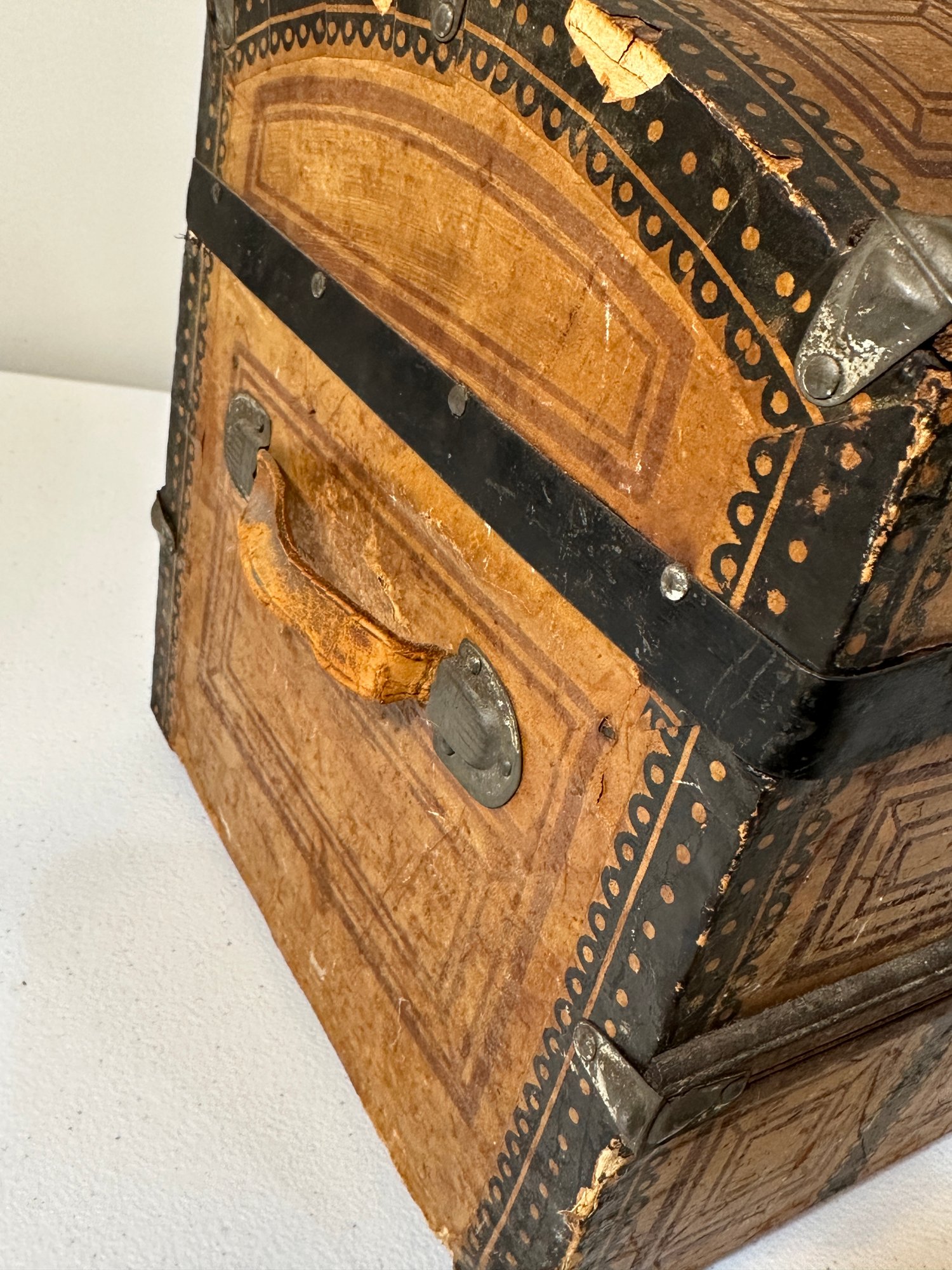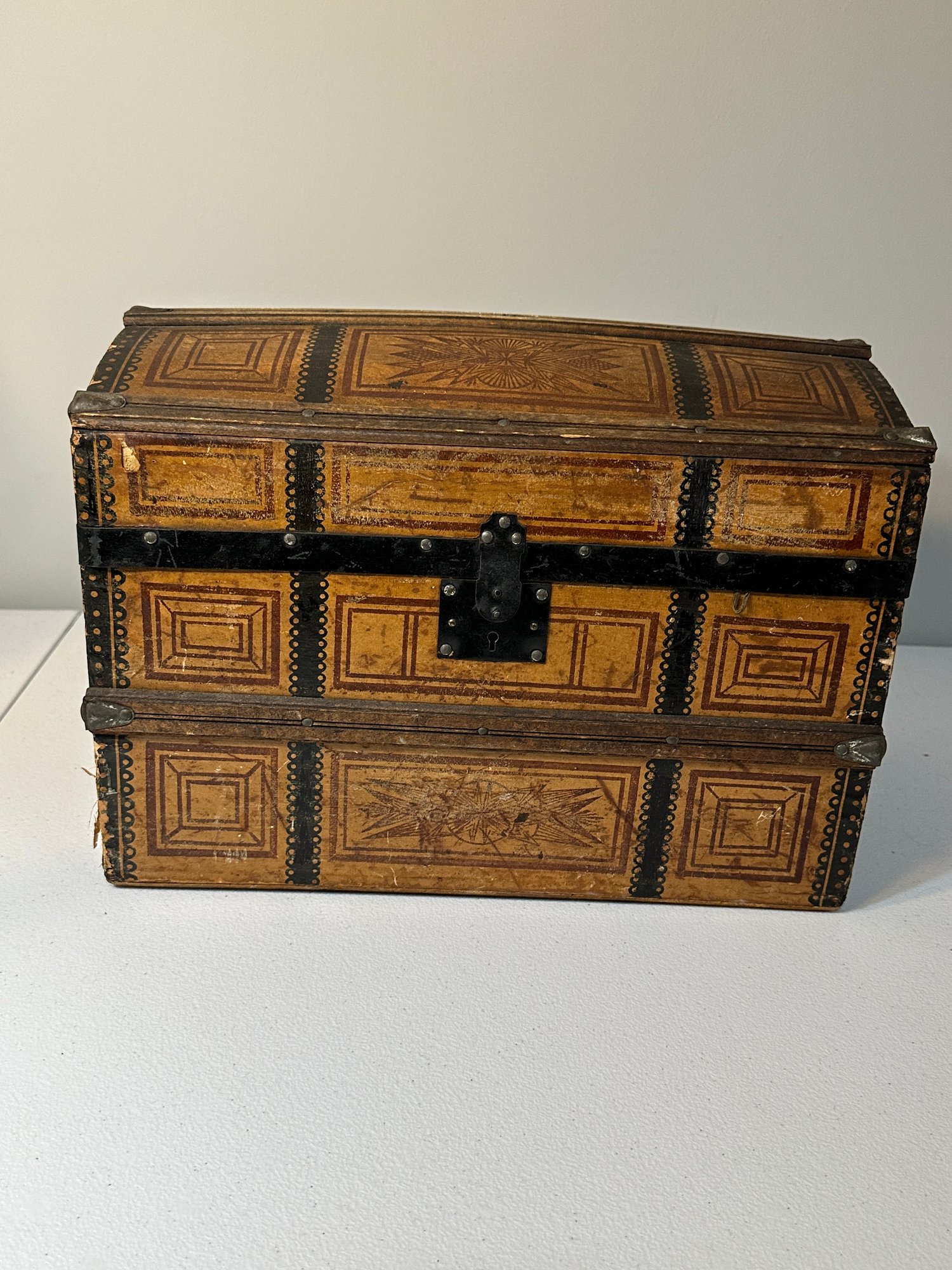 Dome trunk with key and nice insert. 10x15x11, nice prints, some scuffing to outside