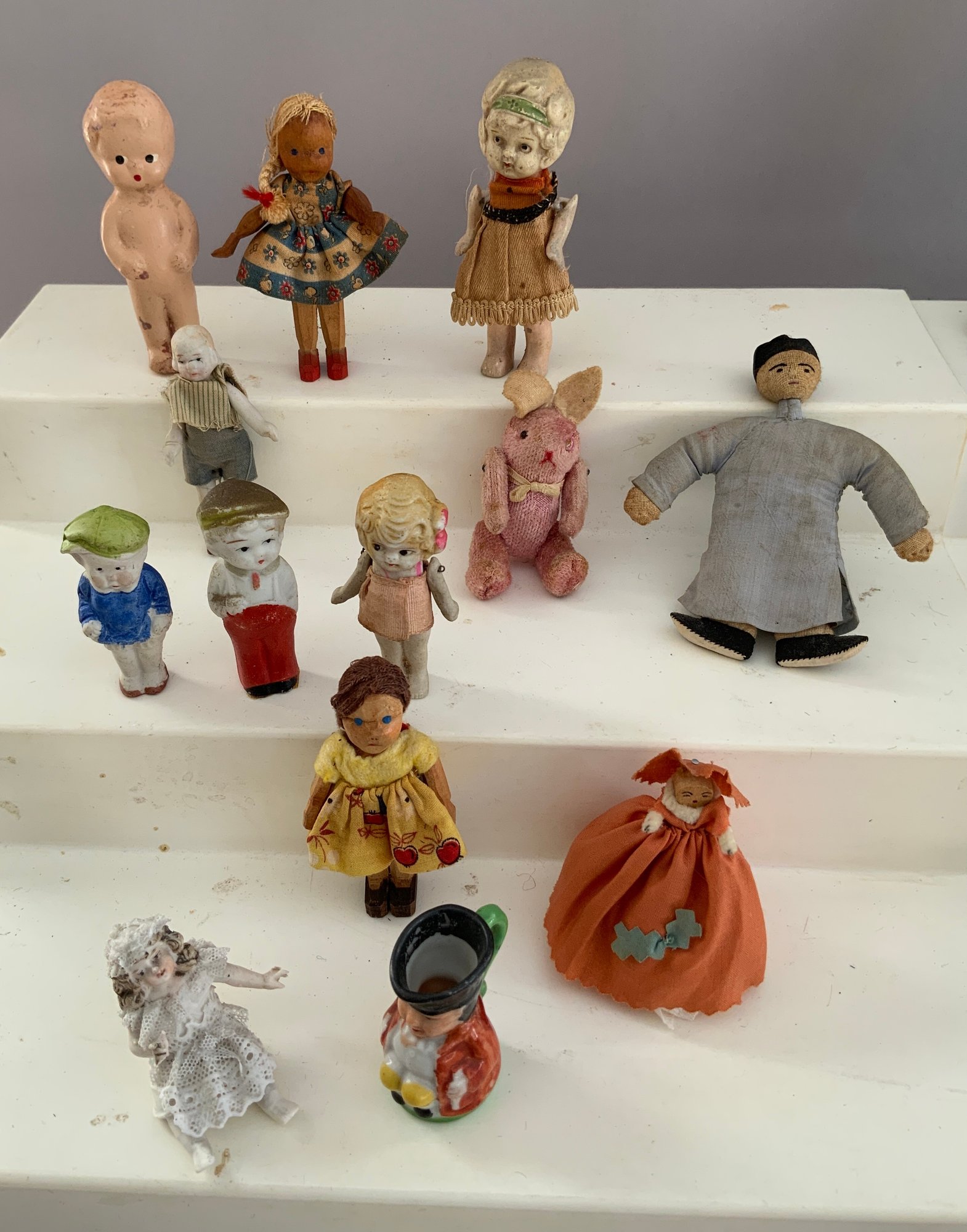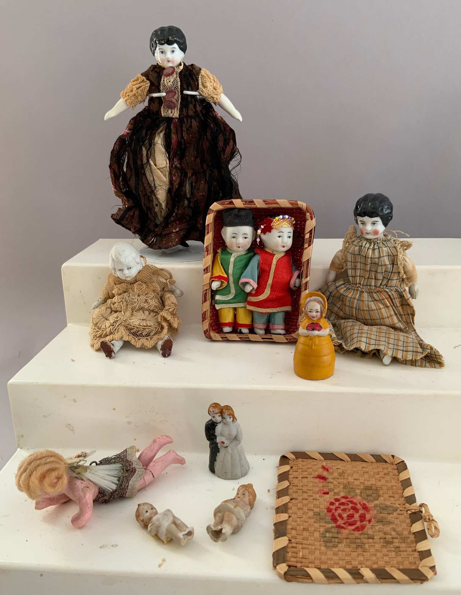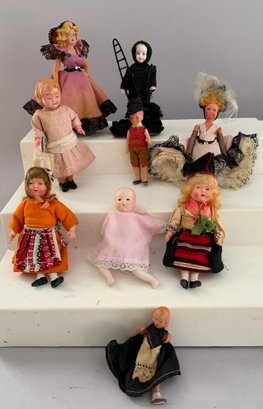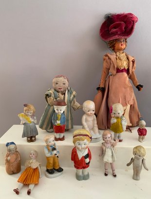 Large lot of assorted small dolls 1” – 8”, bisque, china, cloth, plastic, etc.