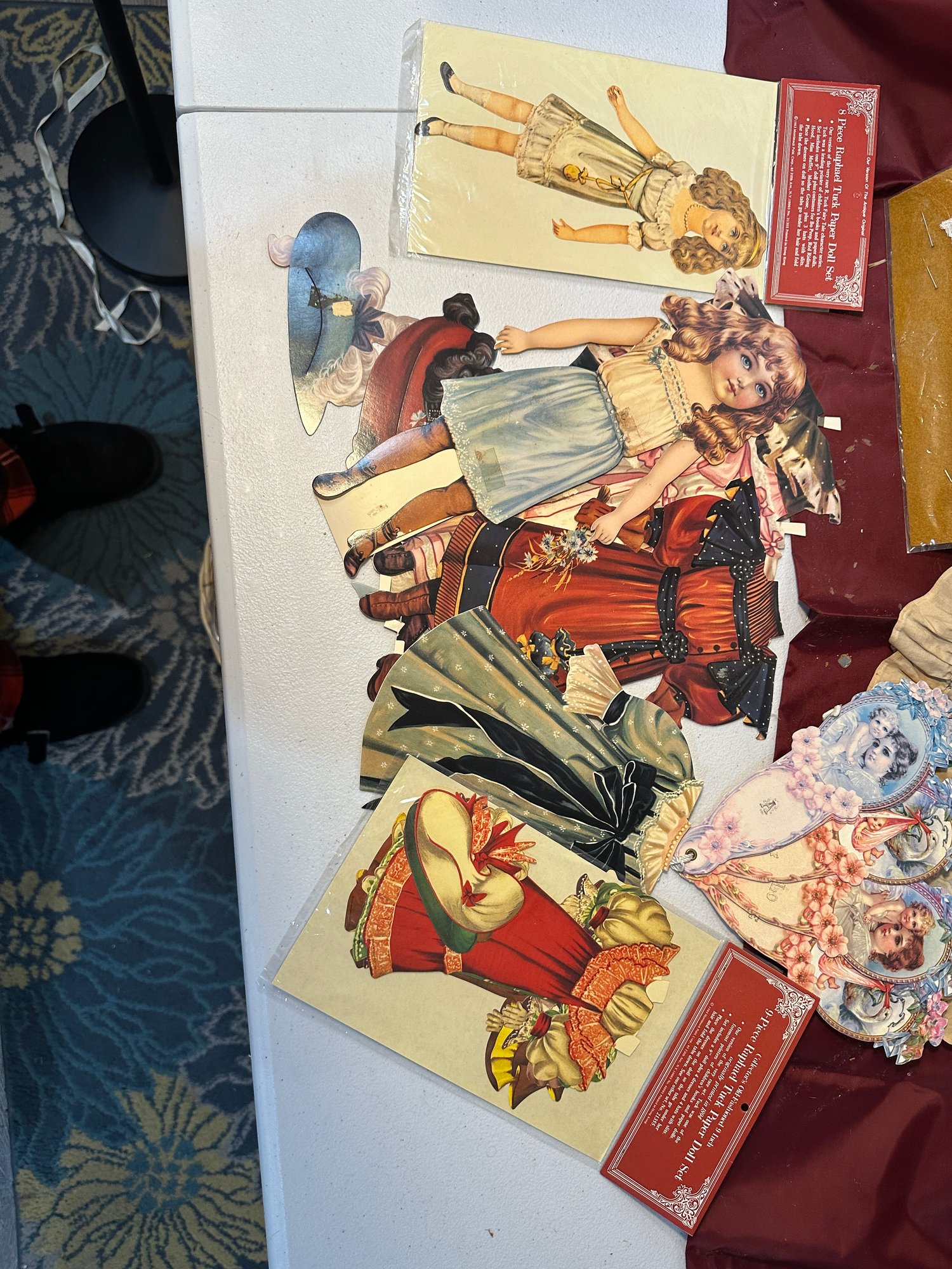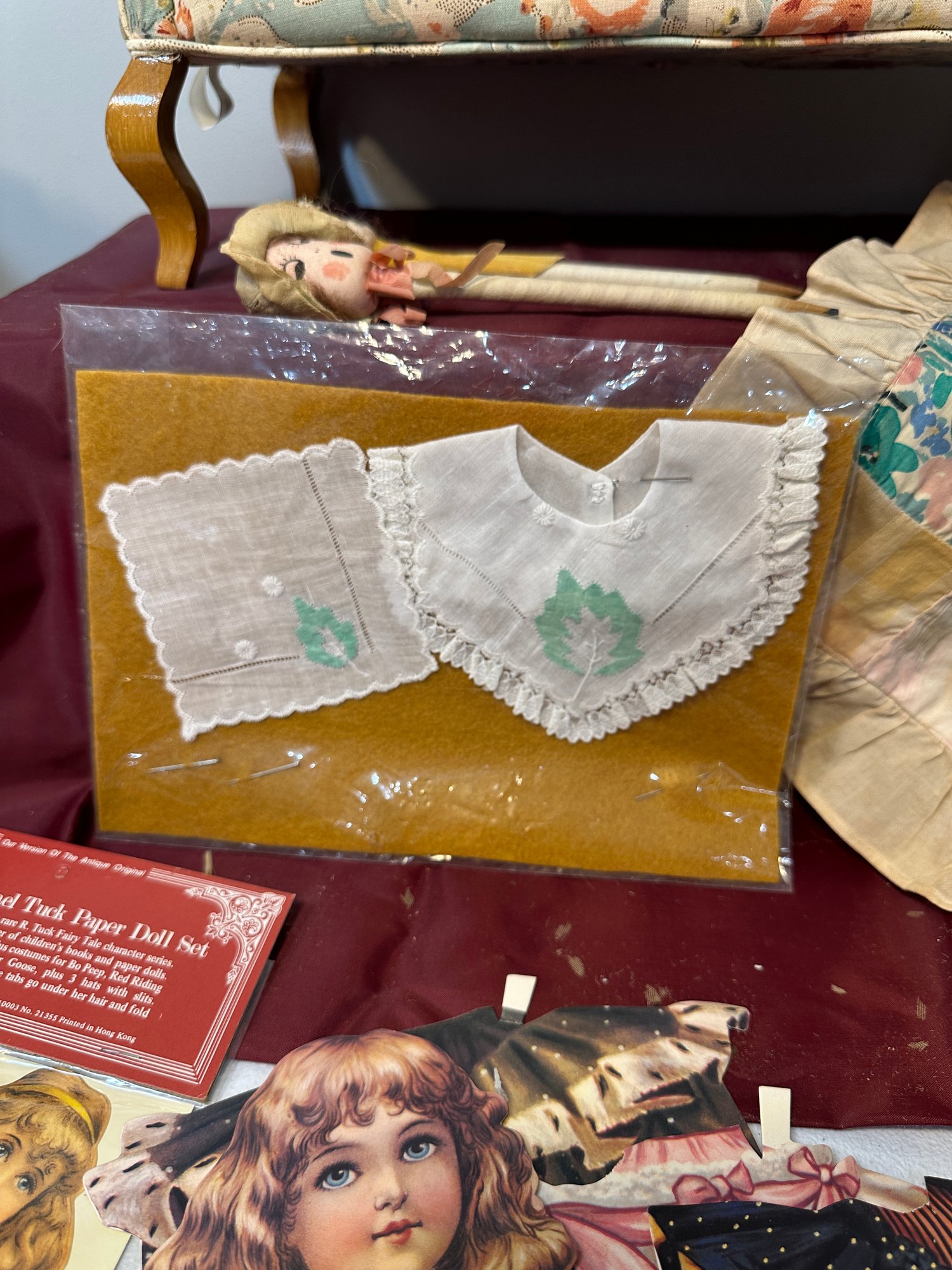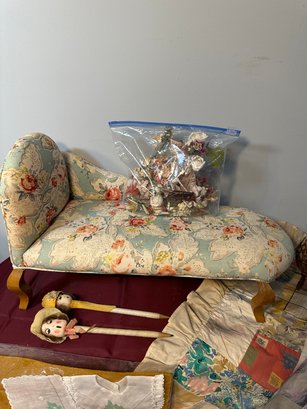 Large opportunity lot, quilt, vintage couch, reproduction paper dolls and more