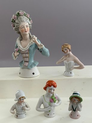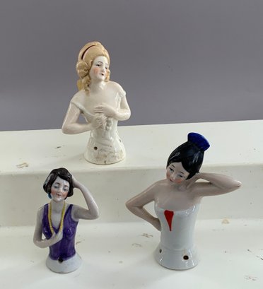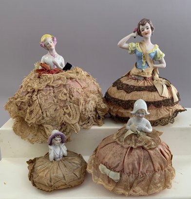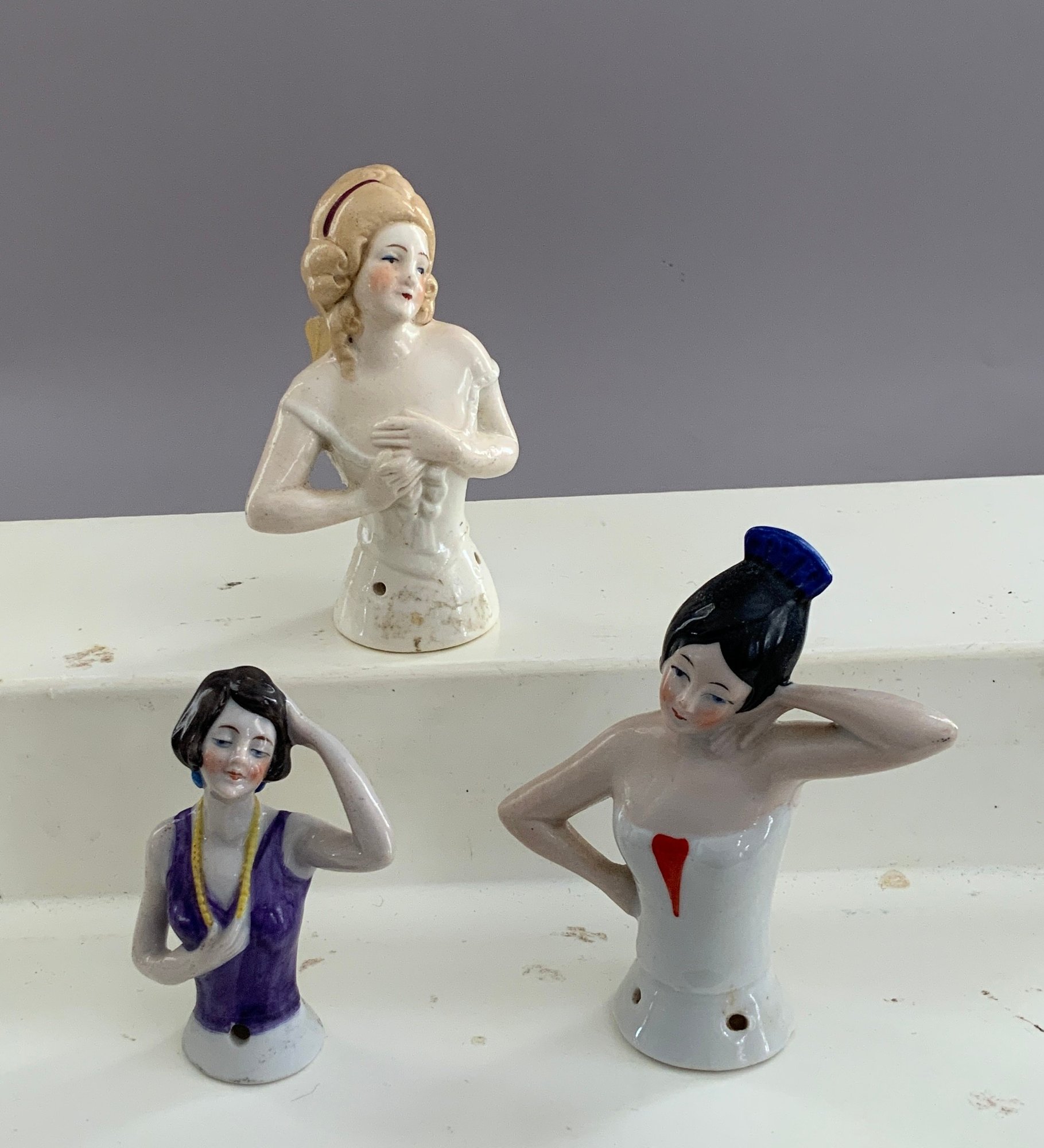 Lot of 12 assorted half dolls & half doll pin cushions, 2” – 7”