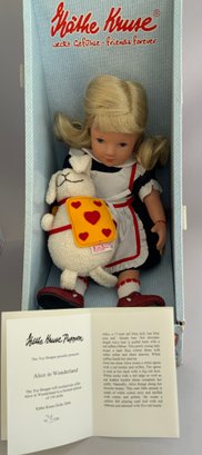 Lot of 2 Limited Edition Dolls: “Alice’s In Wonderland” by Kathe Kruse: 17” dolls w/ blue eyes, blonde hair, original blue dress & white apron, trimmed in red, with her white chenille rabbit. Each has Wooden tags, one marked “#21 and #27, of the limited Edition of 150 made for the Toy Shoppe in 2002, in original boxes , good condition