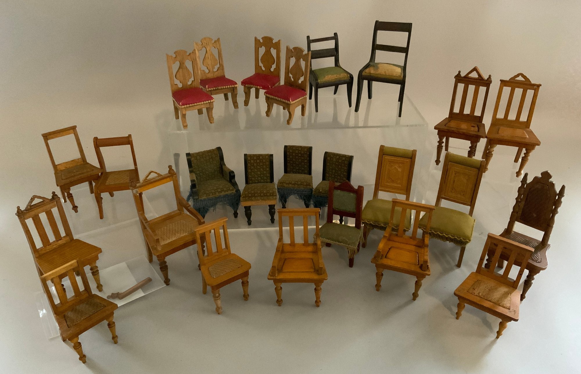 Lot of 26 assorted doll house chairs, various styles and sizes