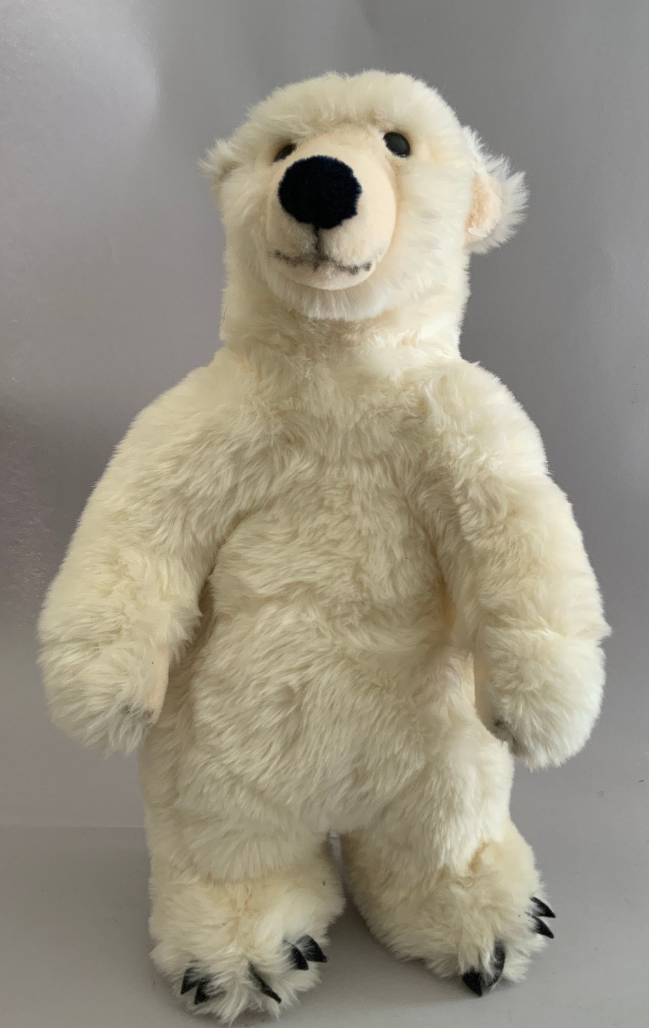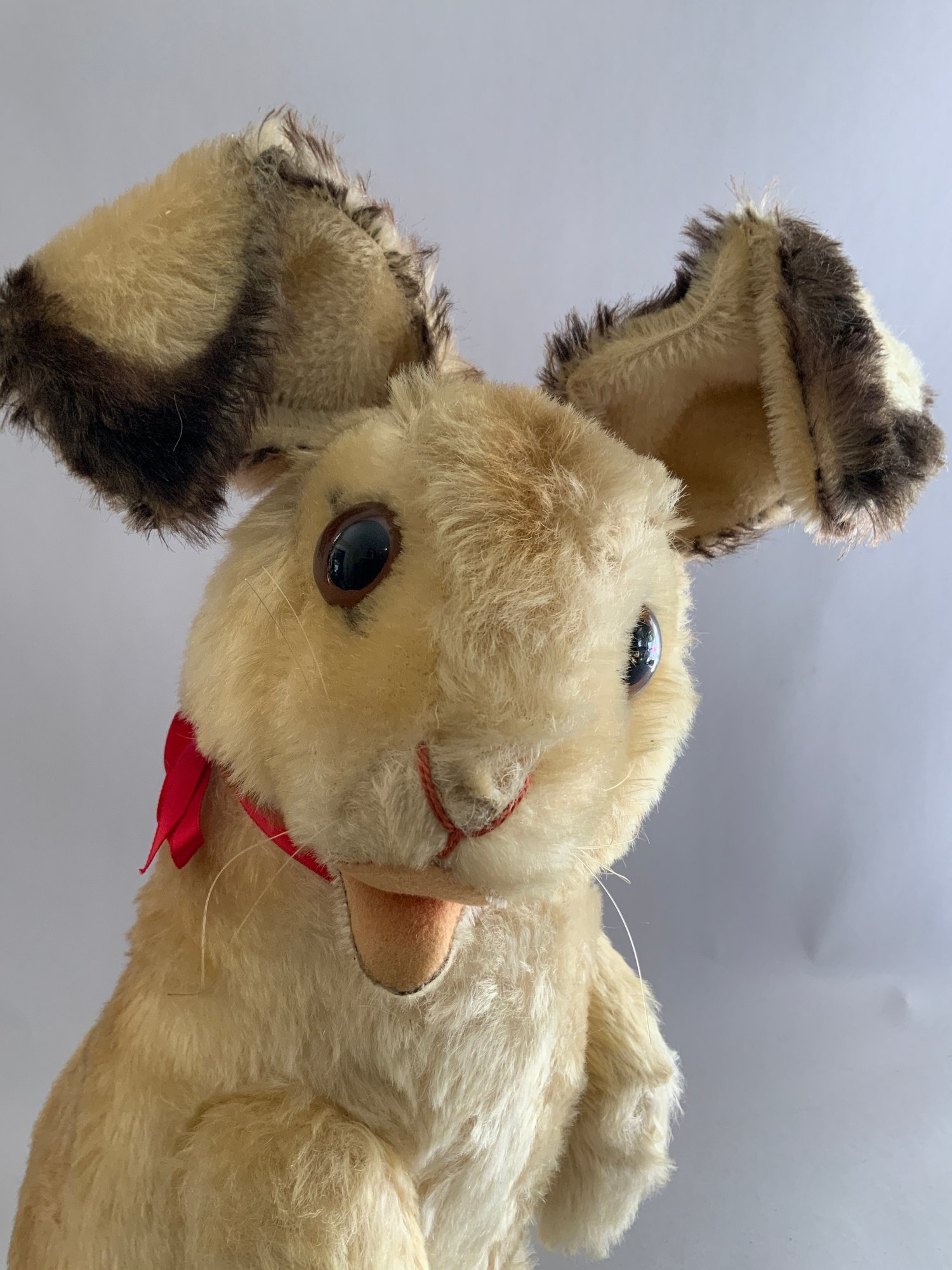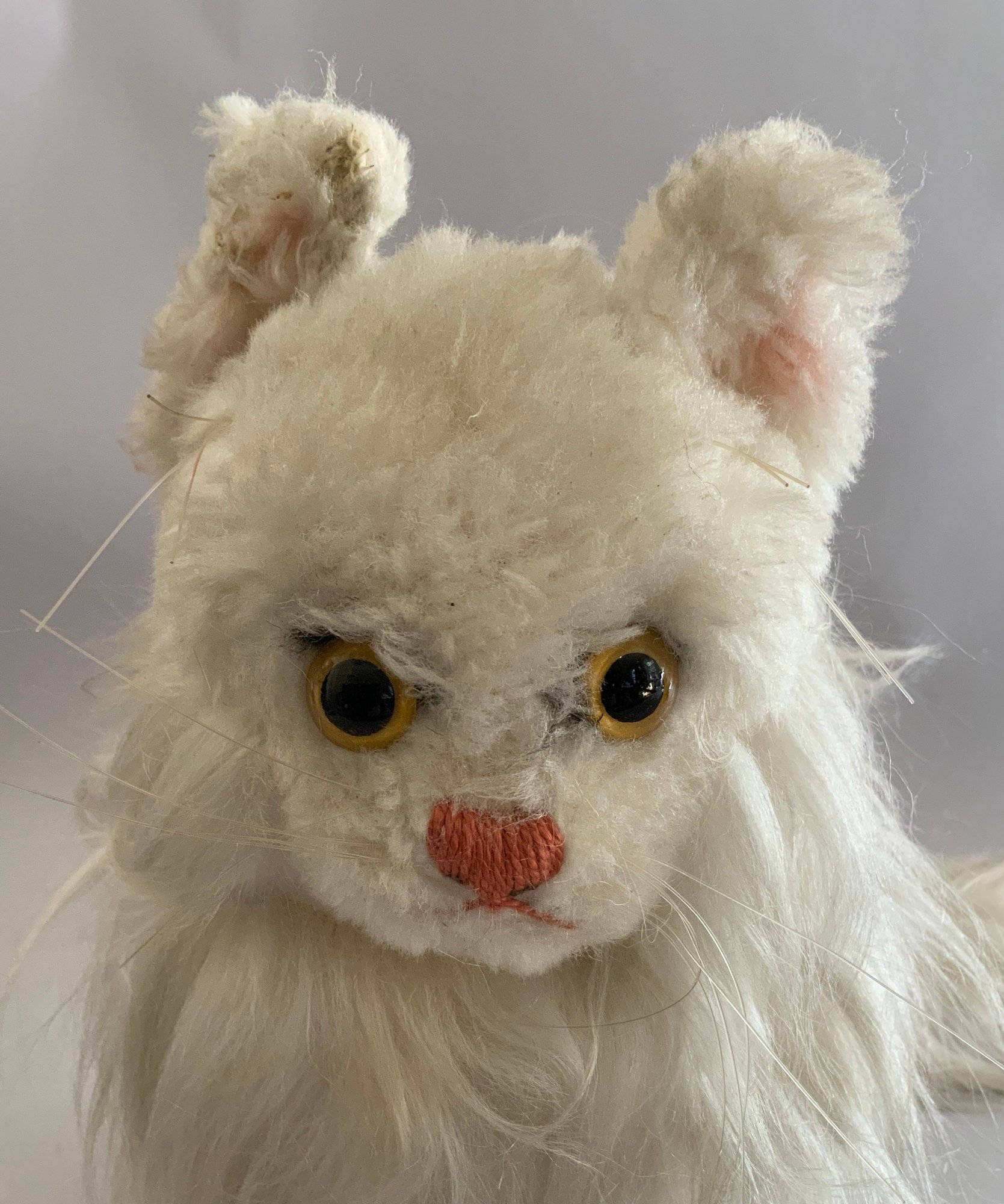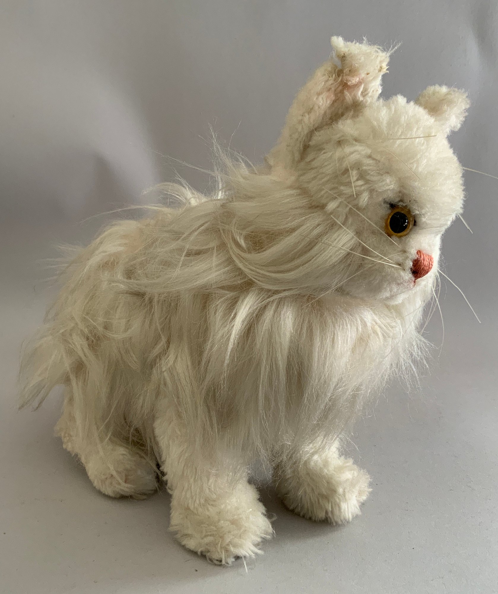 Lot of 3 Plush Animals: 19” Manni Rabbit, Steiff w/ button in ear; Angora Cat (Steiff? No button left ear torn); 18” Standing white Polar Bear (not Steiff)