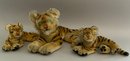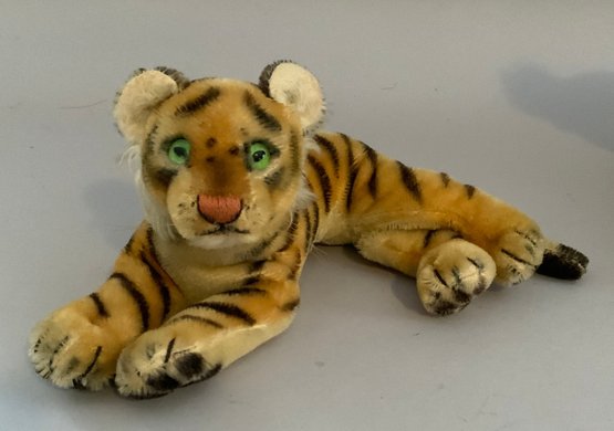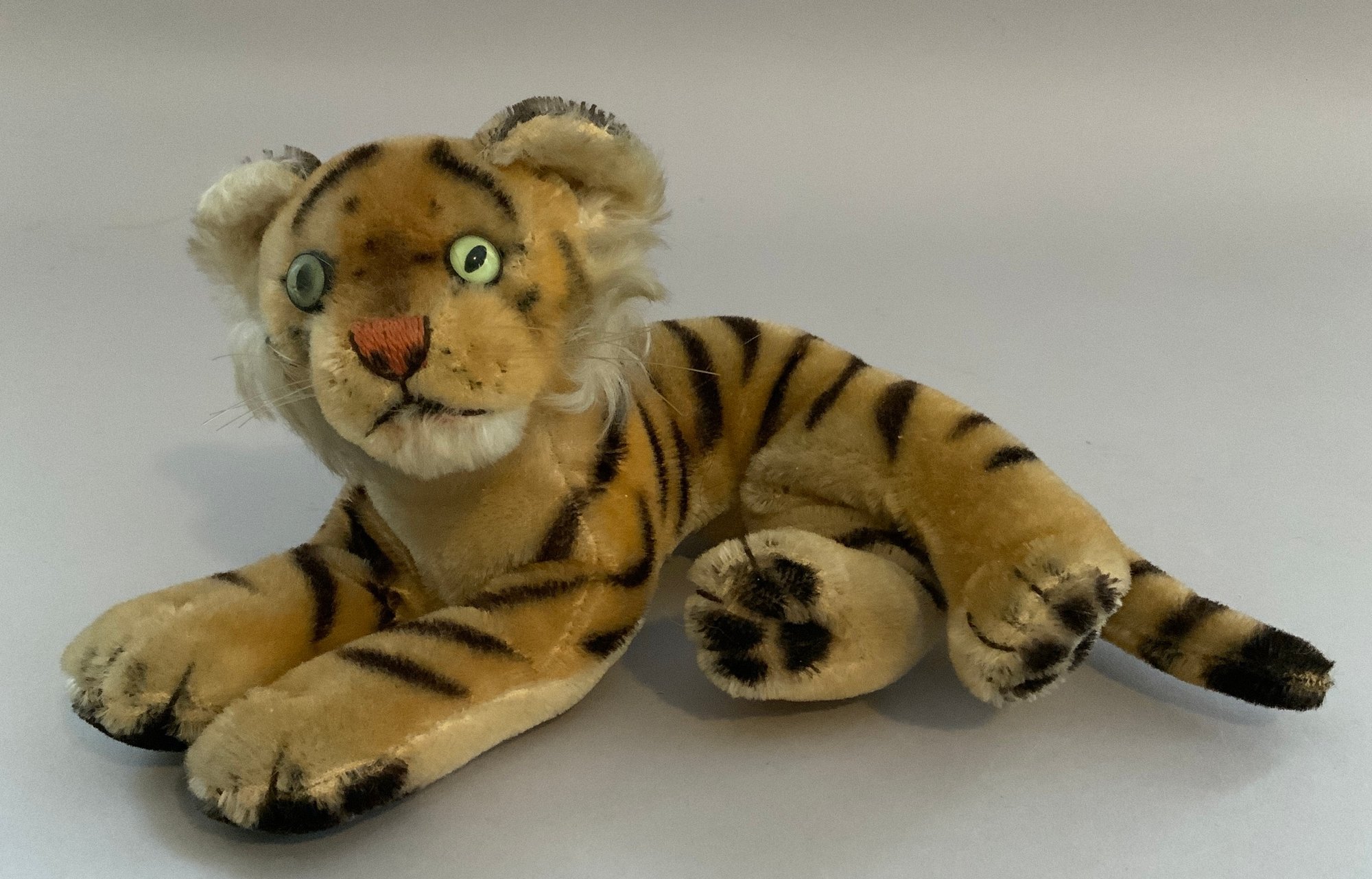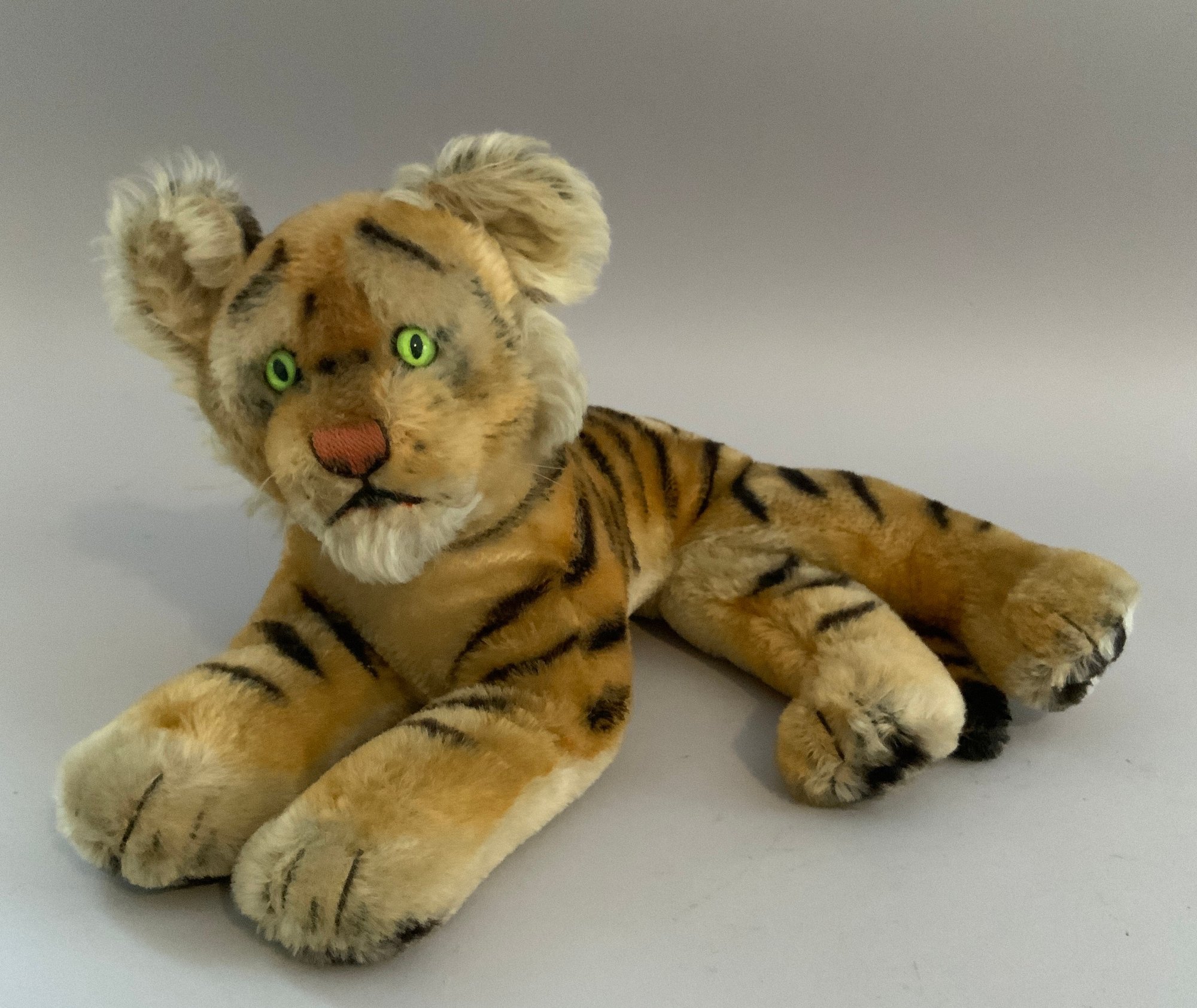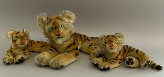 Lot of 3 Steiff tigers, no buttons, 8” – 14” long, played with condition