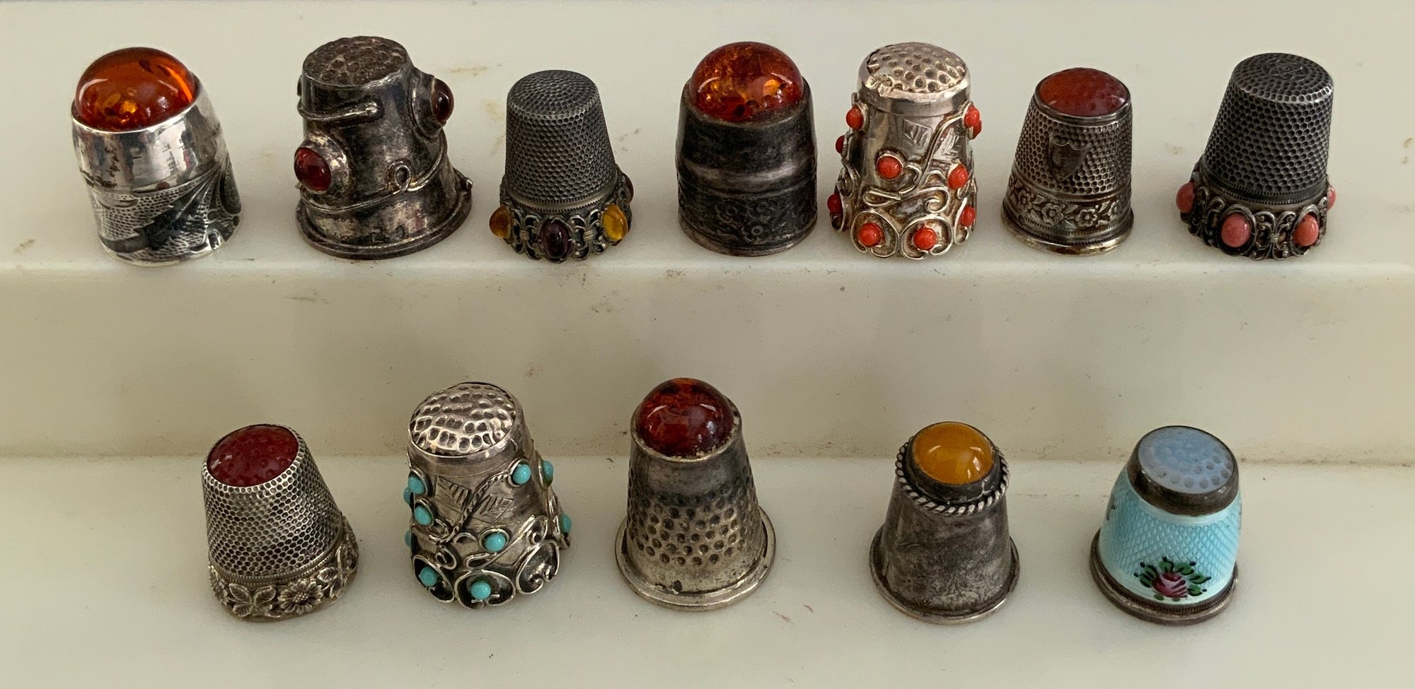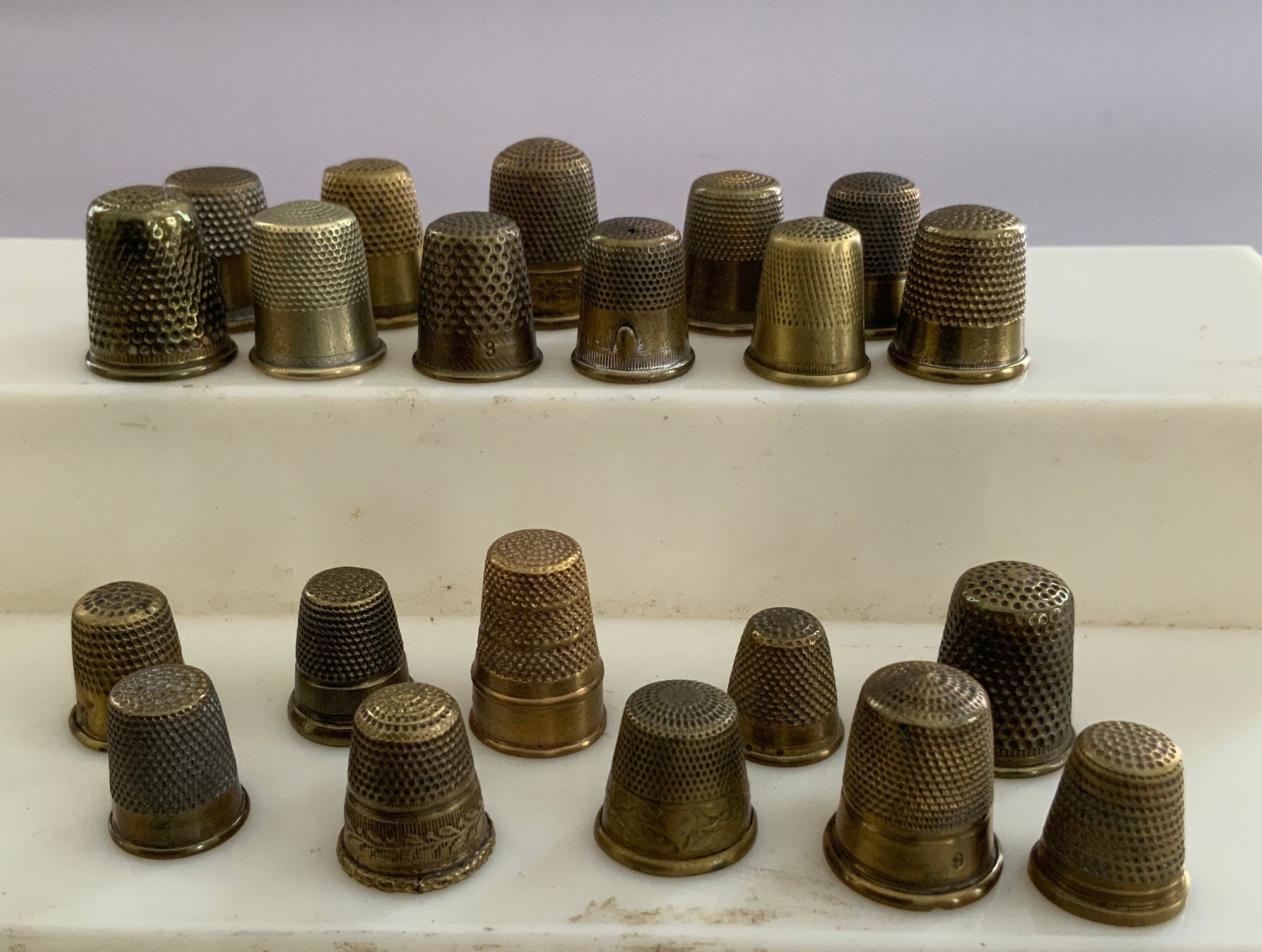 Lot of 35 Thimbles, 7 – enameled, & 9 with crystals, 19 brass