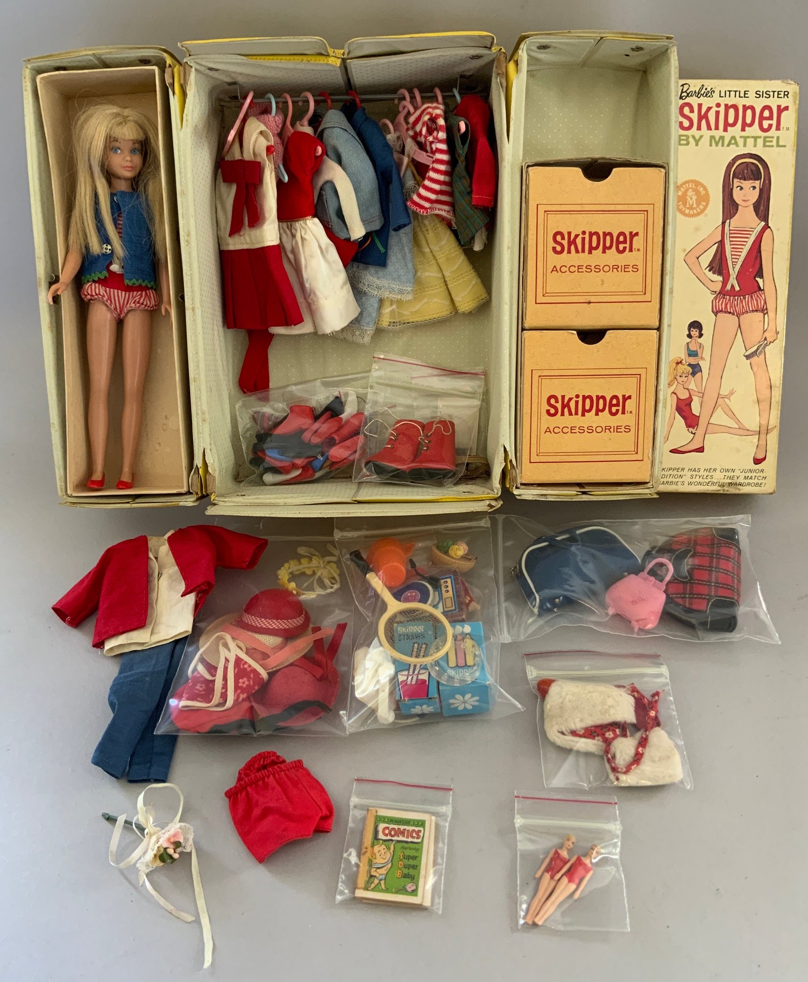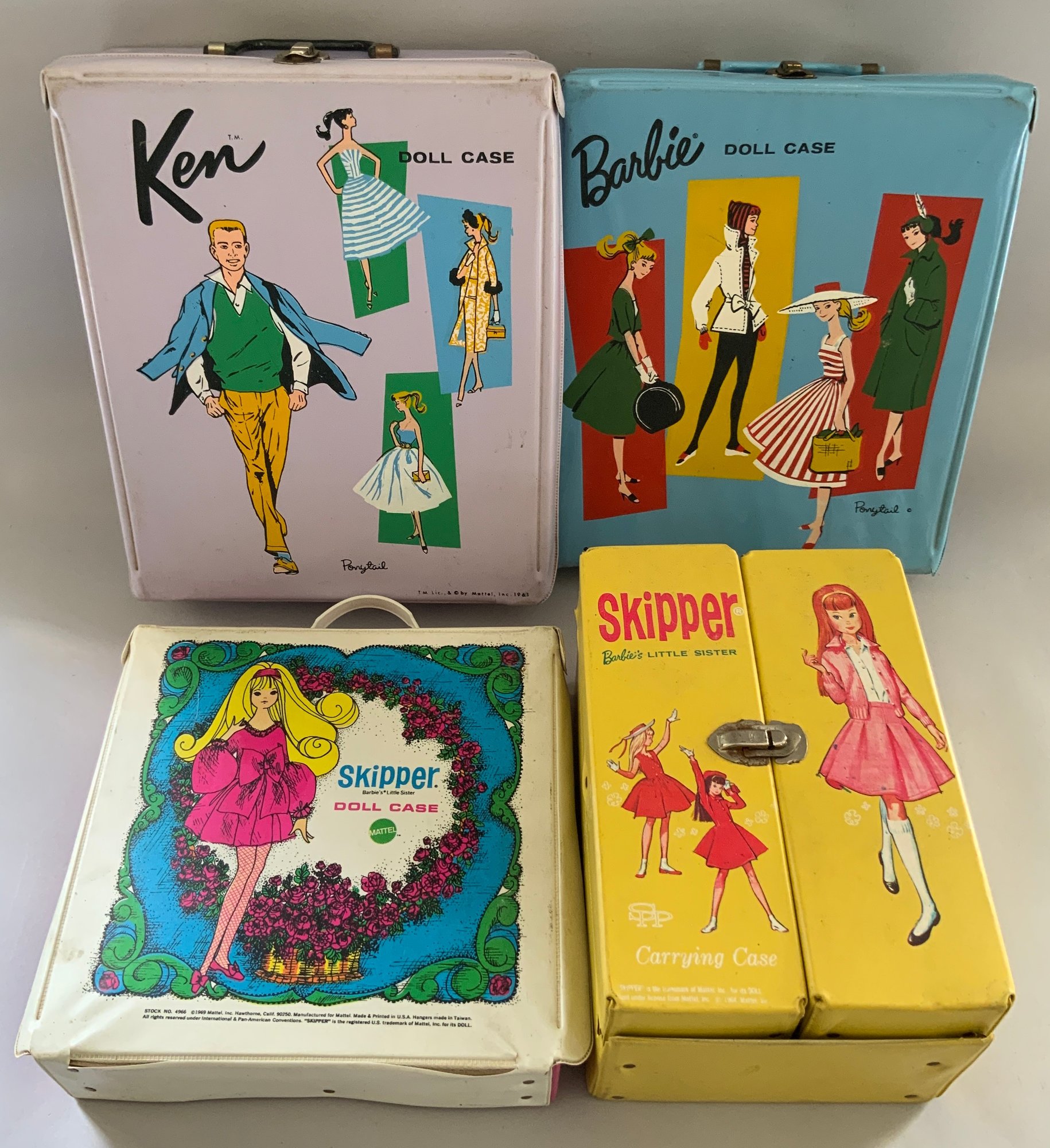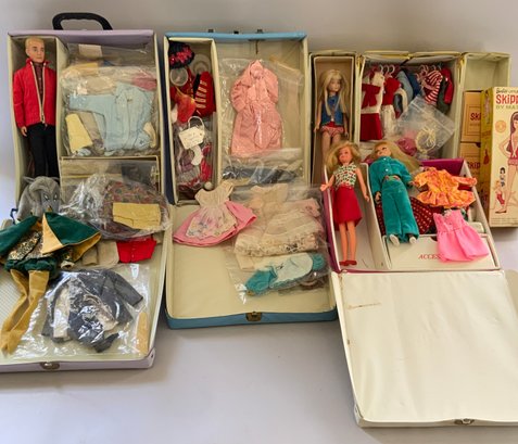 Lot of 4 Barbie, Ken & Skipper doll cases & accessories
