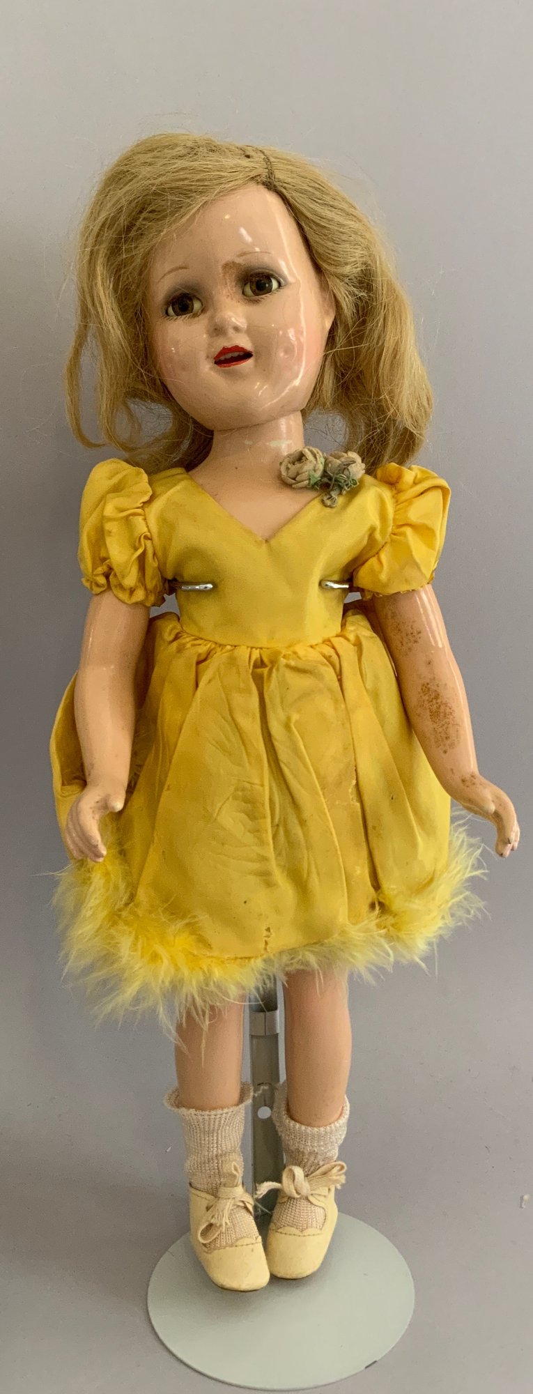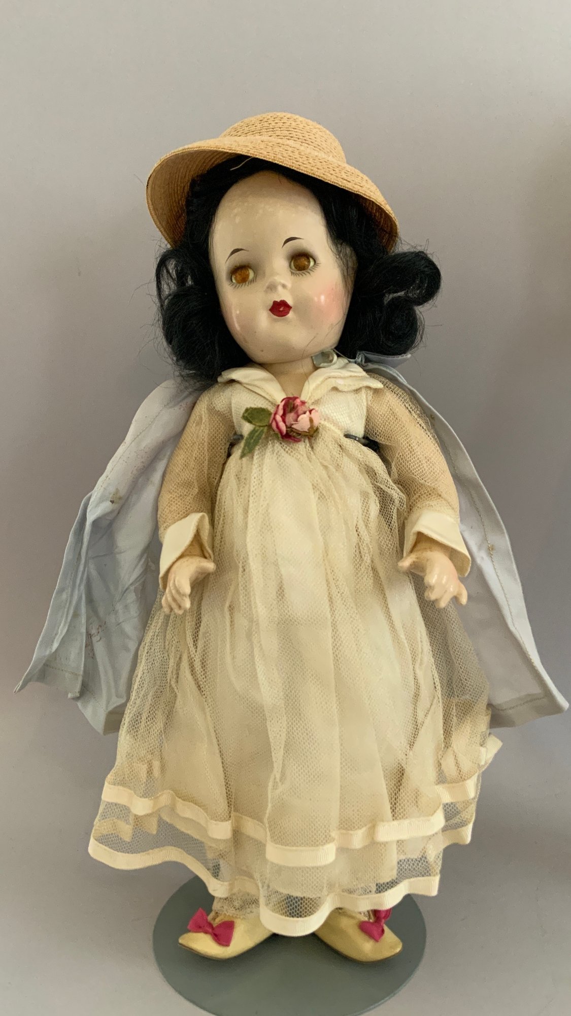 Lot of 4 – composition dolls, 1- 16 ½” Century doll infant as is, 1 – 10 ½” black baby no mark as is, 1 – 15” MA Snow White good condition, 1 – 17 ½” MA Sonja Henie fair condition