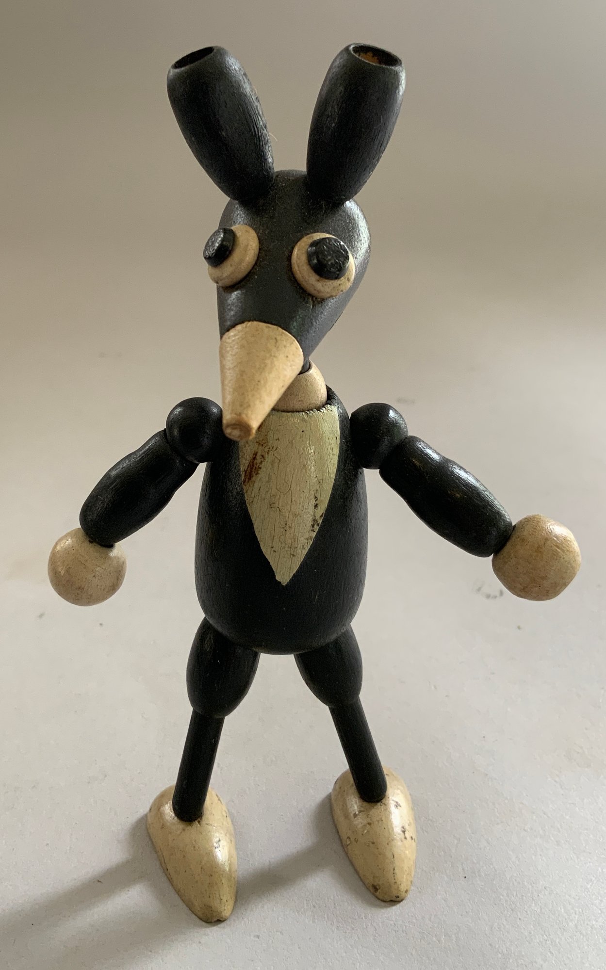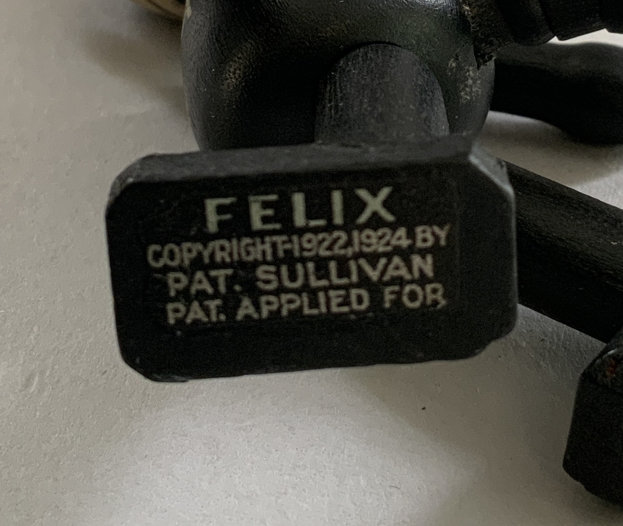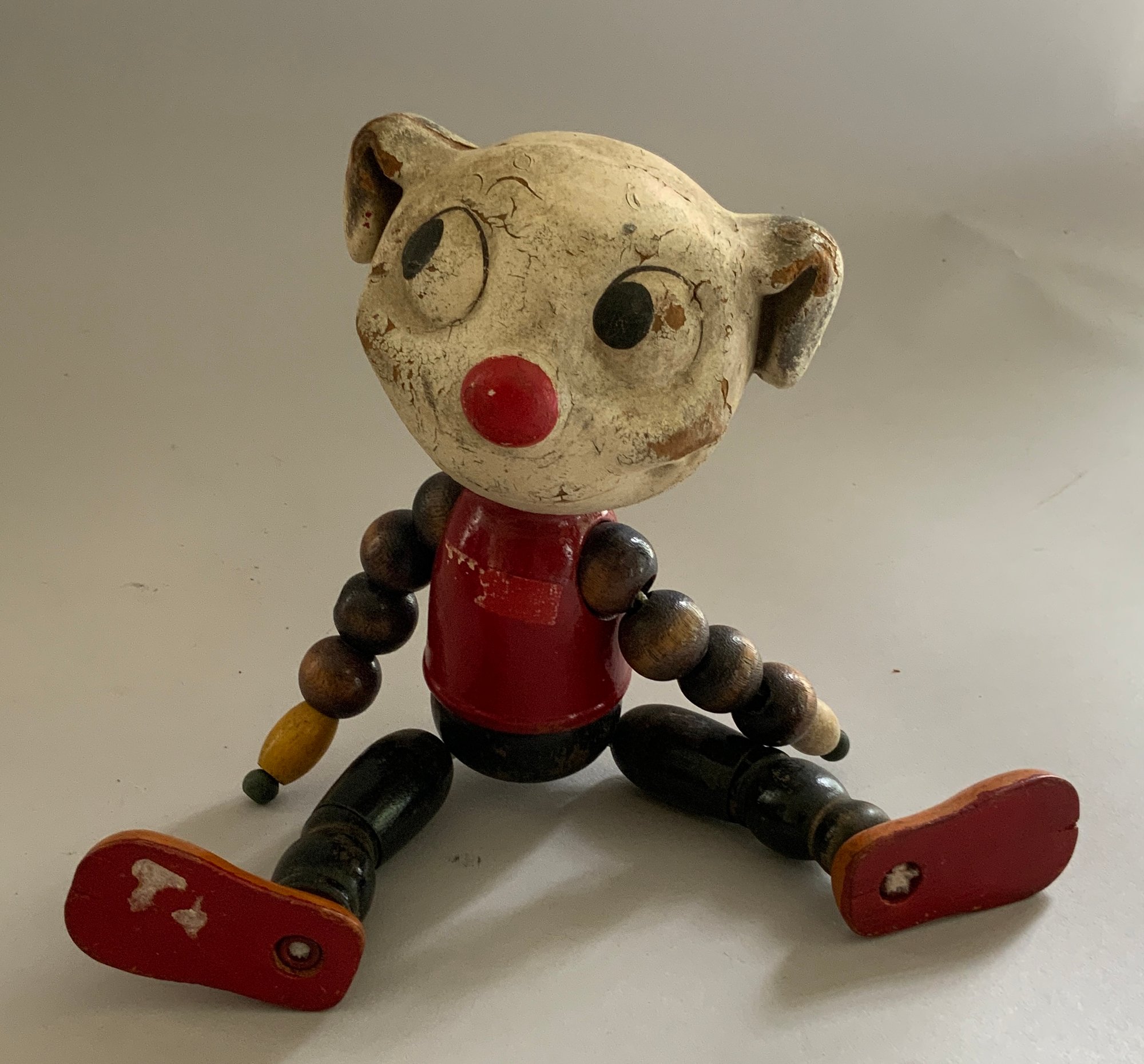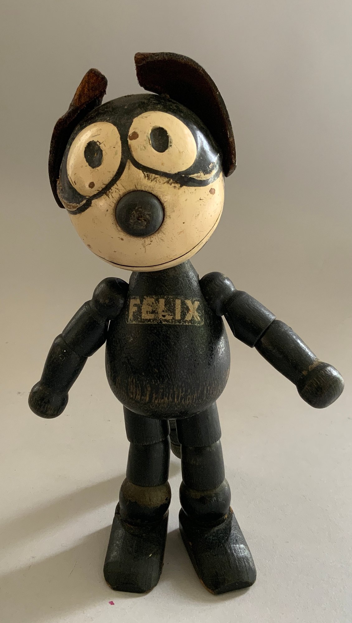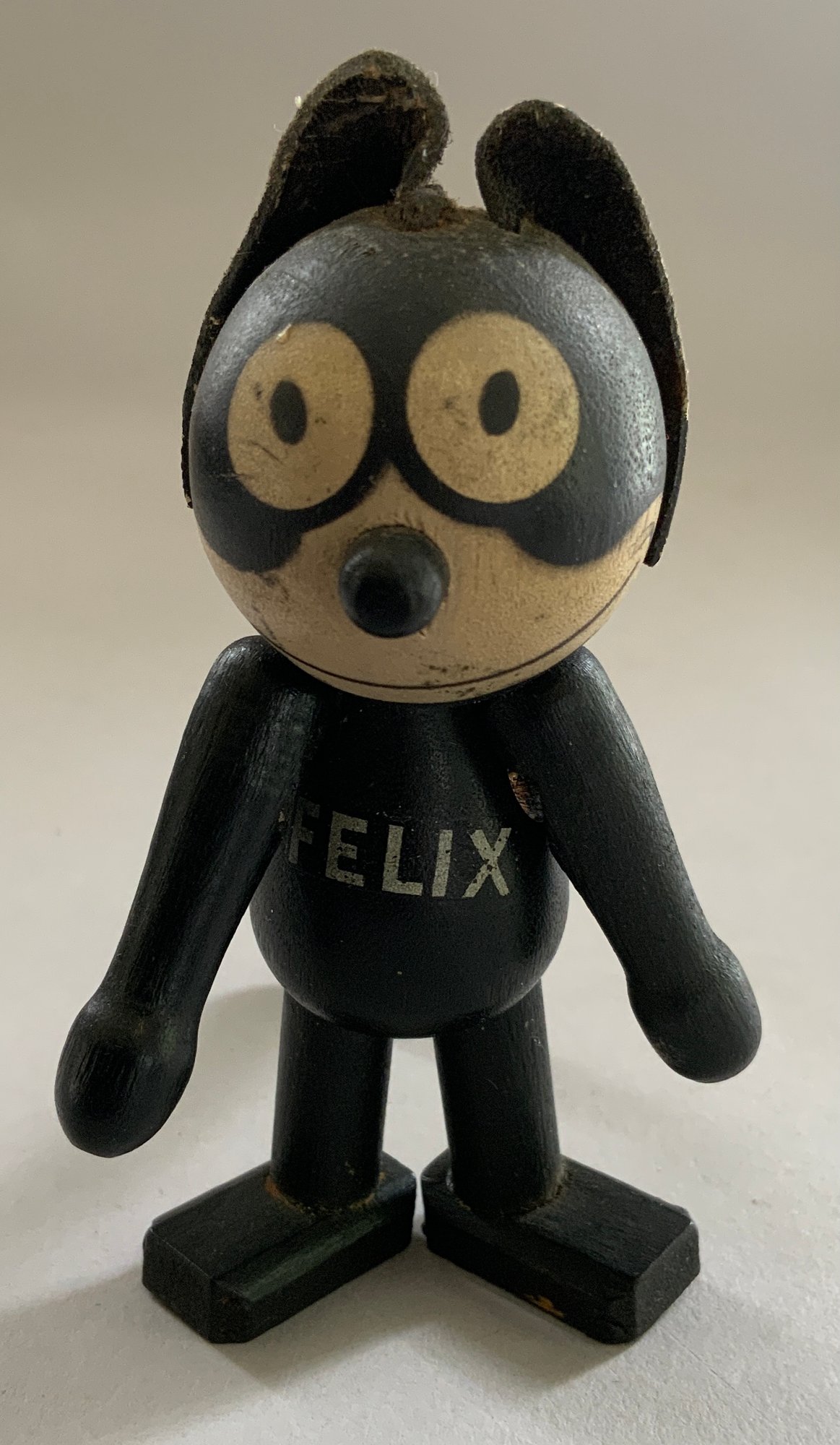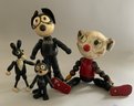 Lot of 4 wood characters, 2 – Felix by Sullivan 5 ½” & 8” 1924, 1 – 5 ½” early Ignatz mouse, & 9” Pete the Pup character (replaced arms?), played with condition