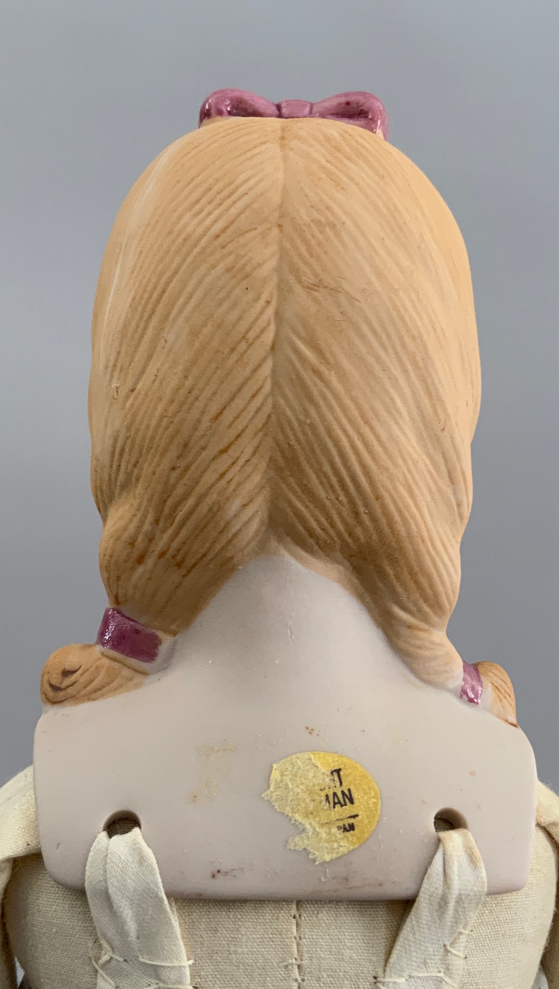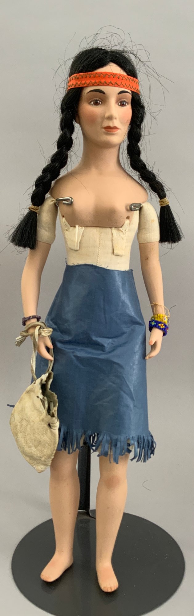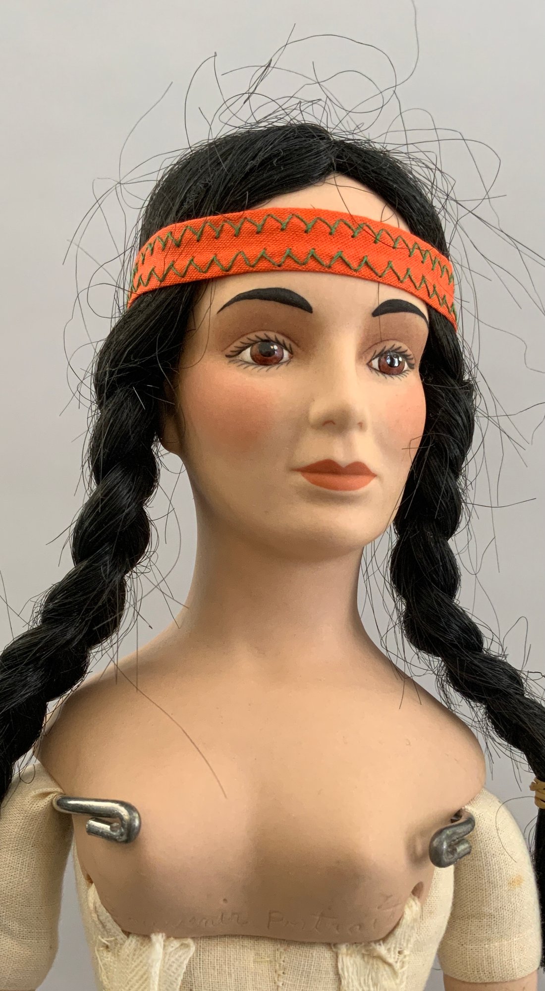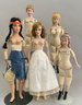 Lot of 5, 3 - 16” Little Women artist dolls, molded bisque shoulder heads with cloth bodies, 1 – 19” bisque shoulder head by Frances Reedy 1977, Indian doll, & 1 – NAIDA artist” bisque shoulder head LUL 1975