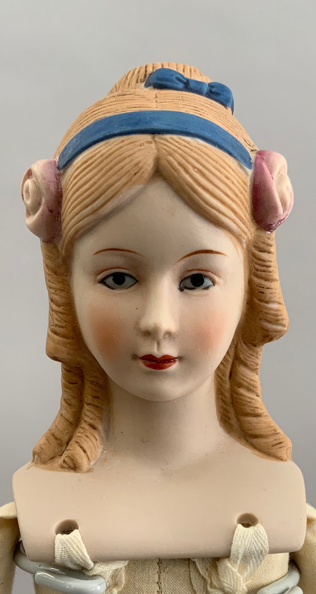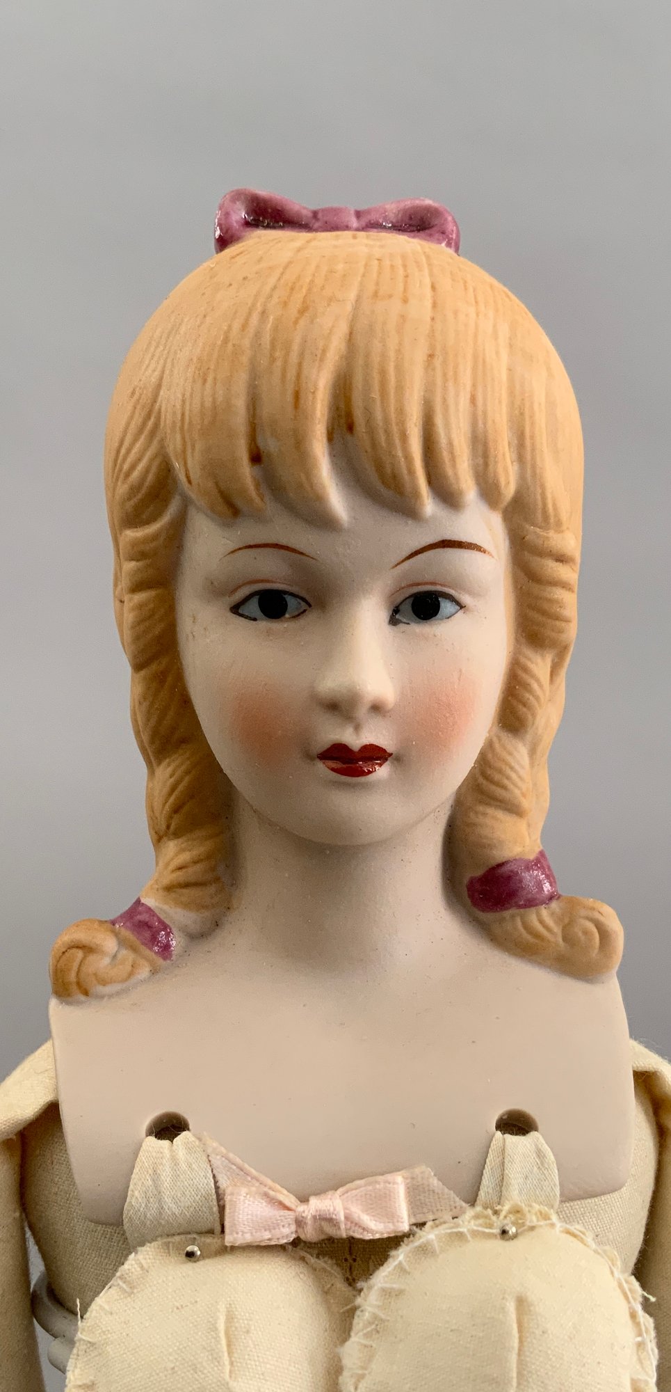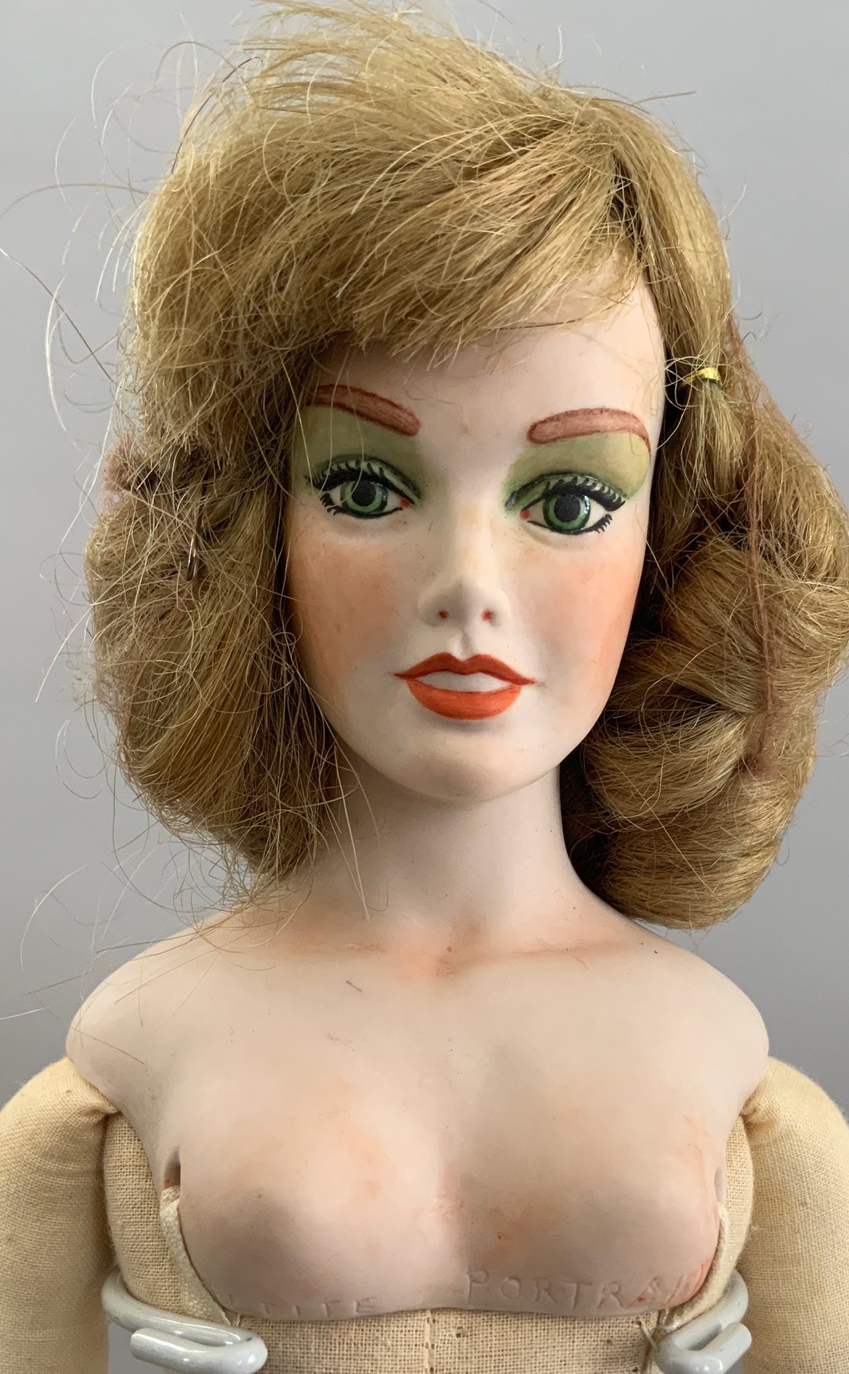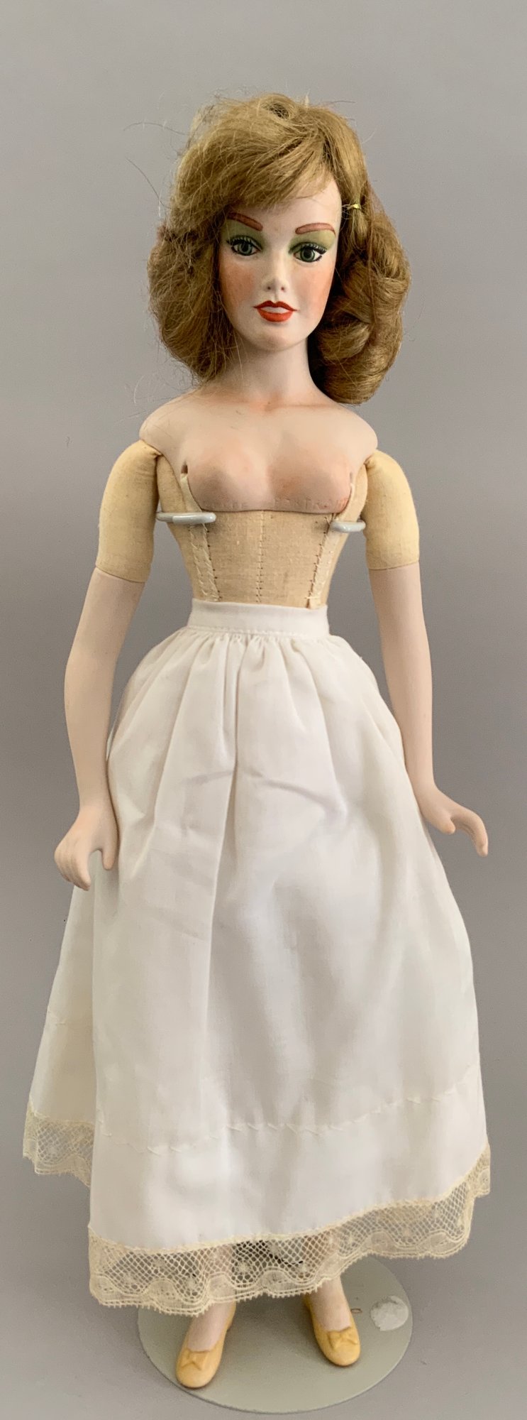 Lot of 5, 3 - 16” Little Women artist dolls, molded bisque shoulder heads with cloth bodies, 1 – 19” bisque shoulder head by Frances Reedy 1977, Indian doll, & 1 – NAIDA artist” bisque shoulder head LUL 1975