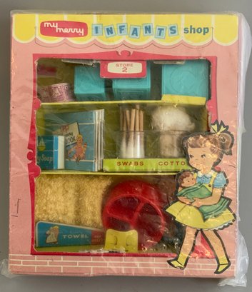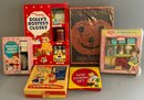 Lot of 6 children’s toys & games, Pumpkin Face Ring Game, My Merry Dolly’s Hostess Closet, My Merry Infants shop, My Merry Shoe Shining Set, My Merry Dolly’s Party Closet, & OXCO Kiddies Kitchen Kit, all in original boxes, some light wear