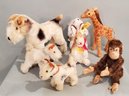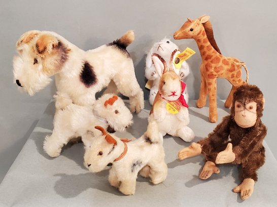 LOT OF 7 VINTAGE STUFFED ANIMALS - 3.25" - 7" TALL, 2 WITH STEIFF EAR BUTTONS