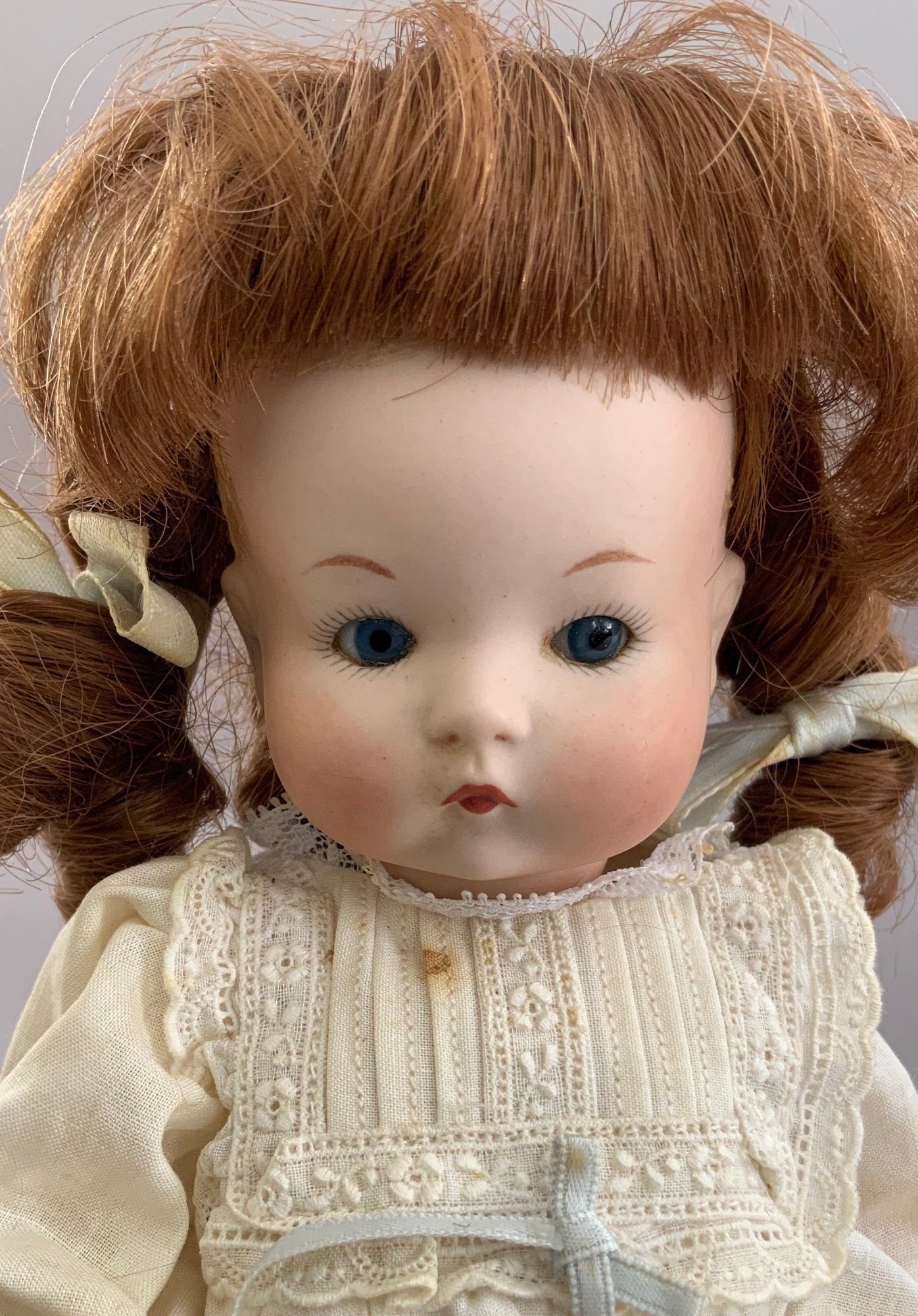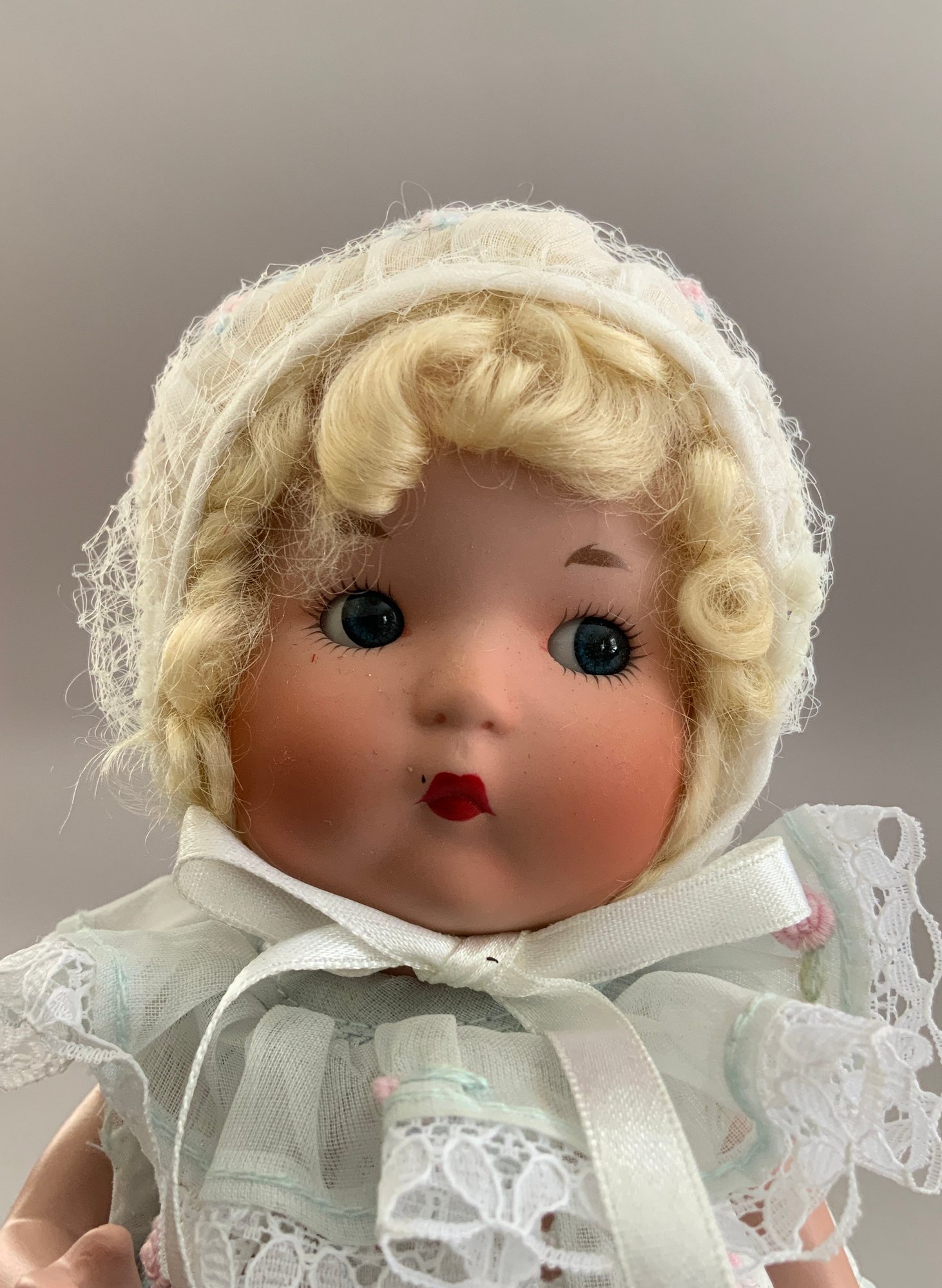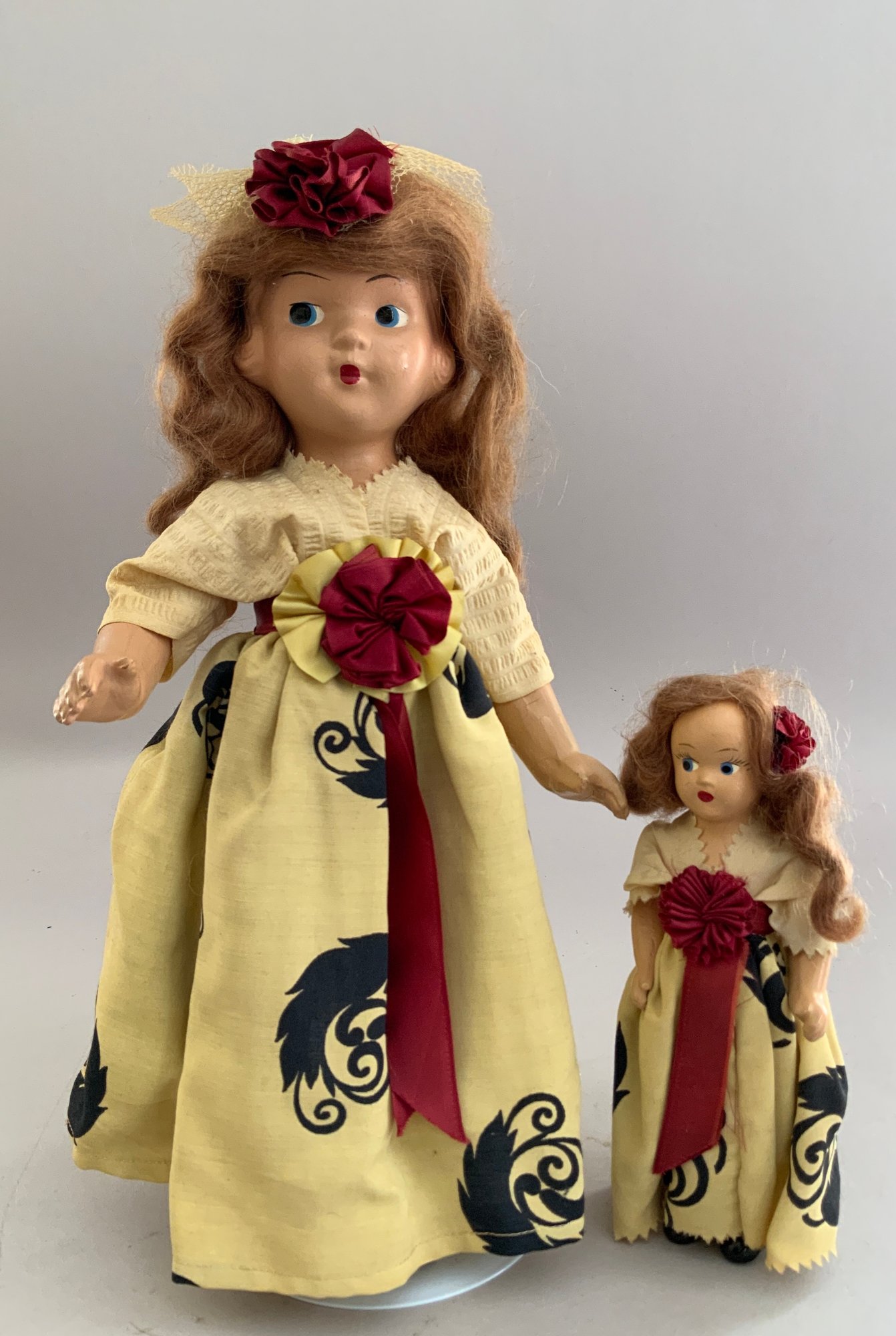 Lot of 8 Asst. dolls: 211” Jills, an 11” Bride in old box, a 9” Betsy McCall- type, 2 “Just Me” artist dolls (AM 310 repro} & a Vogue “Just Me” in original package, a compo big sister & little sister dressed alike