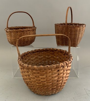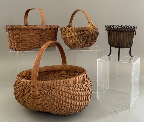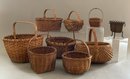 Lot of 9 early baskets, 3” – 9” Diameter, various forms & shapes