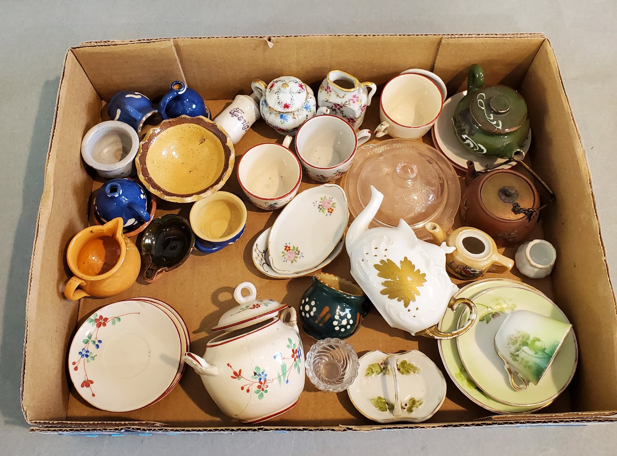 LOT OF ANTIQUE / VINTAGE CHILDREN'S DISHES - VARIOUS SIZED & PATTERNS, CRACKS & CHIPS NOTED, GREAT FOR DOLL DISPLAY