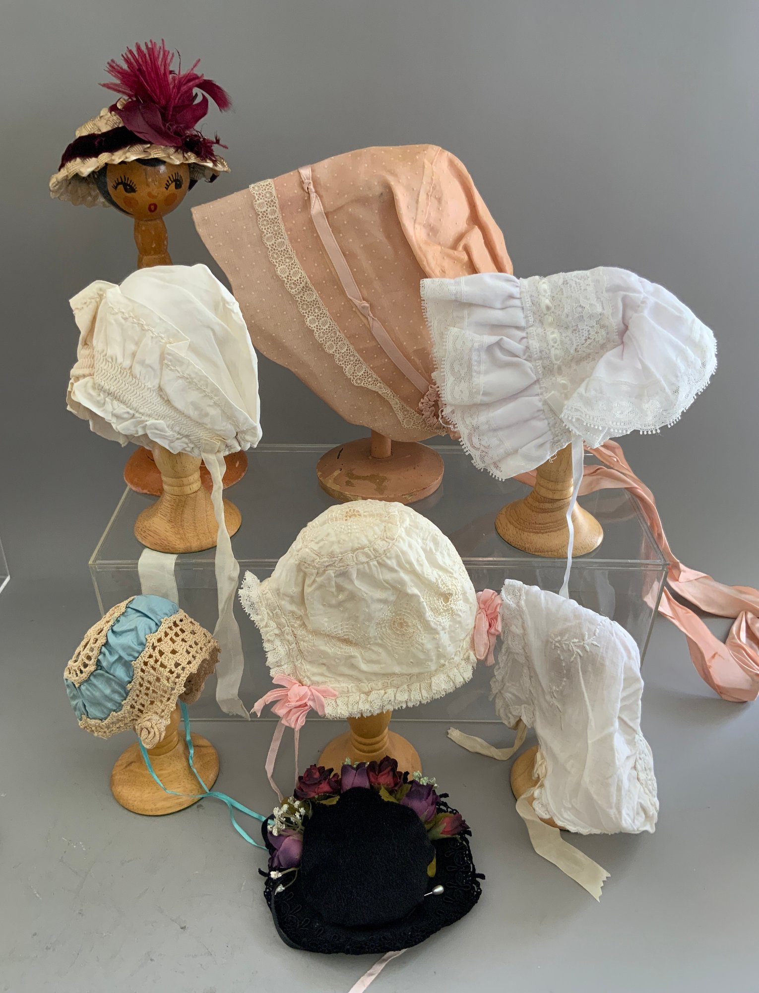 Lot of assorted doll hats & wigs
