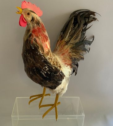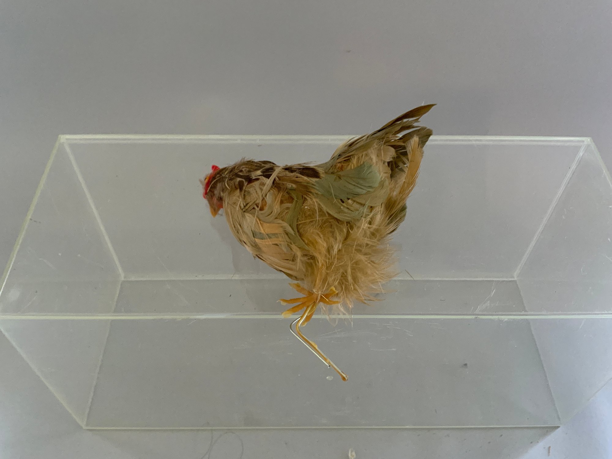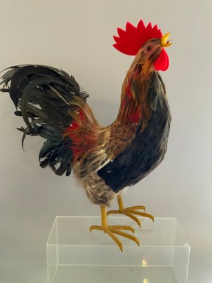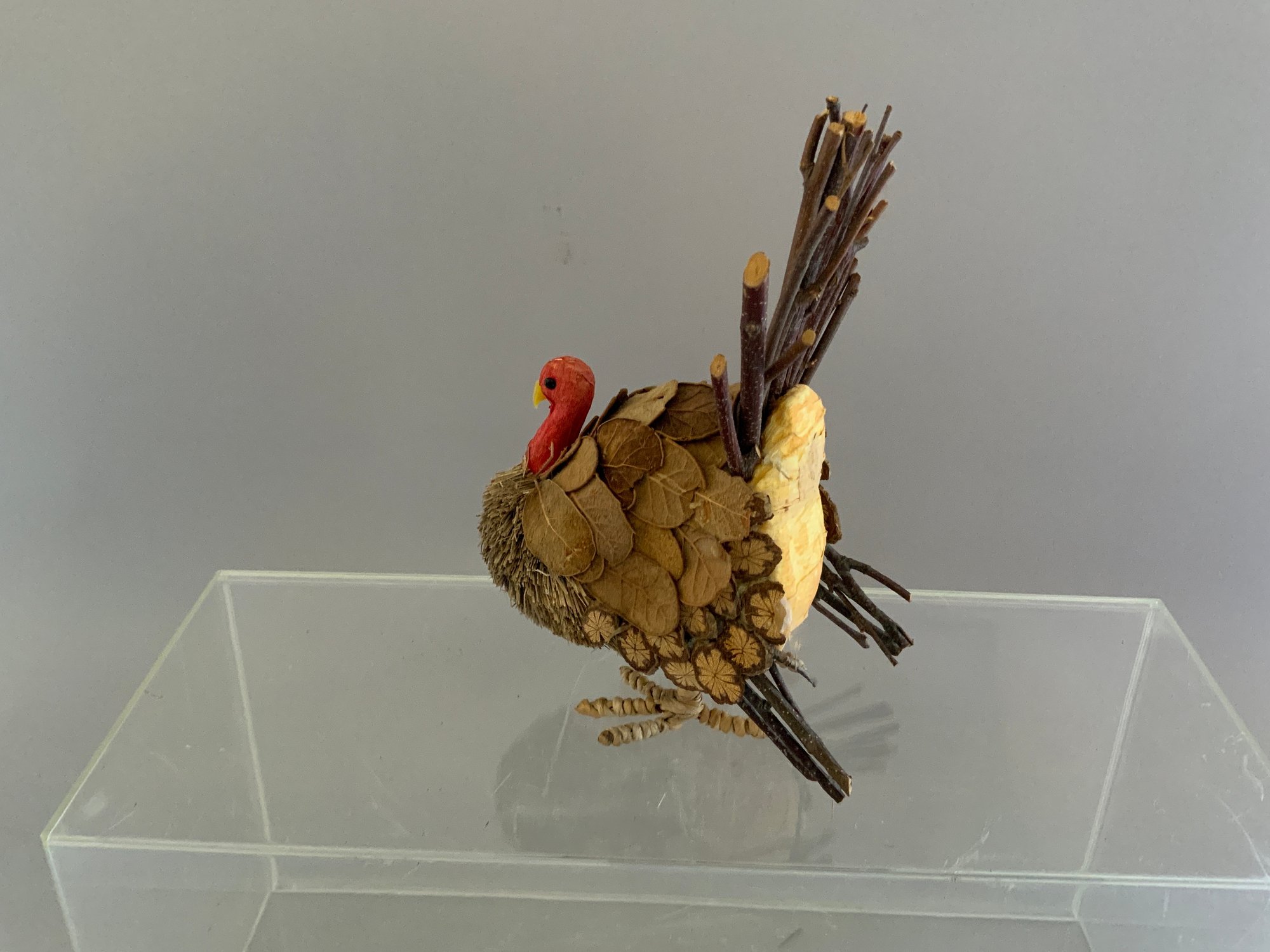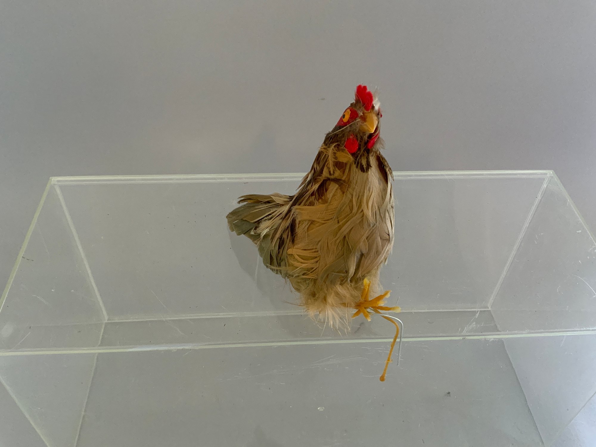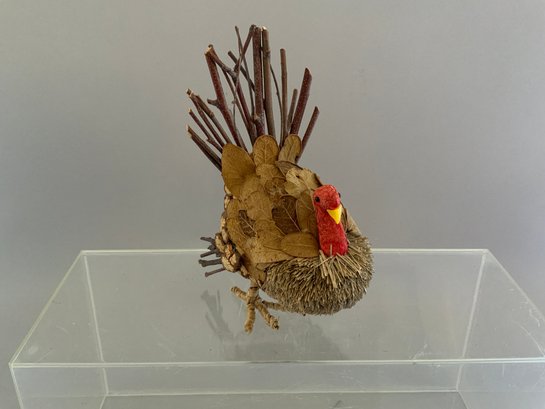 Lot of thirteen various feathered, paper or straw birds. Roosters, chickens, chicks, and turkey.
