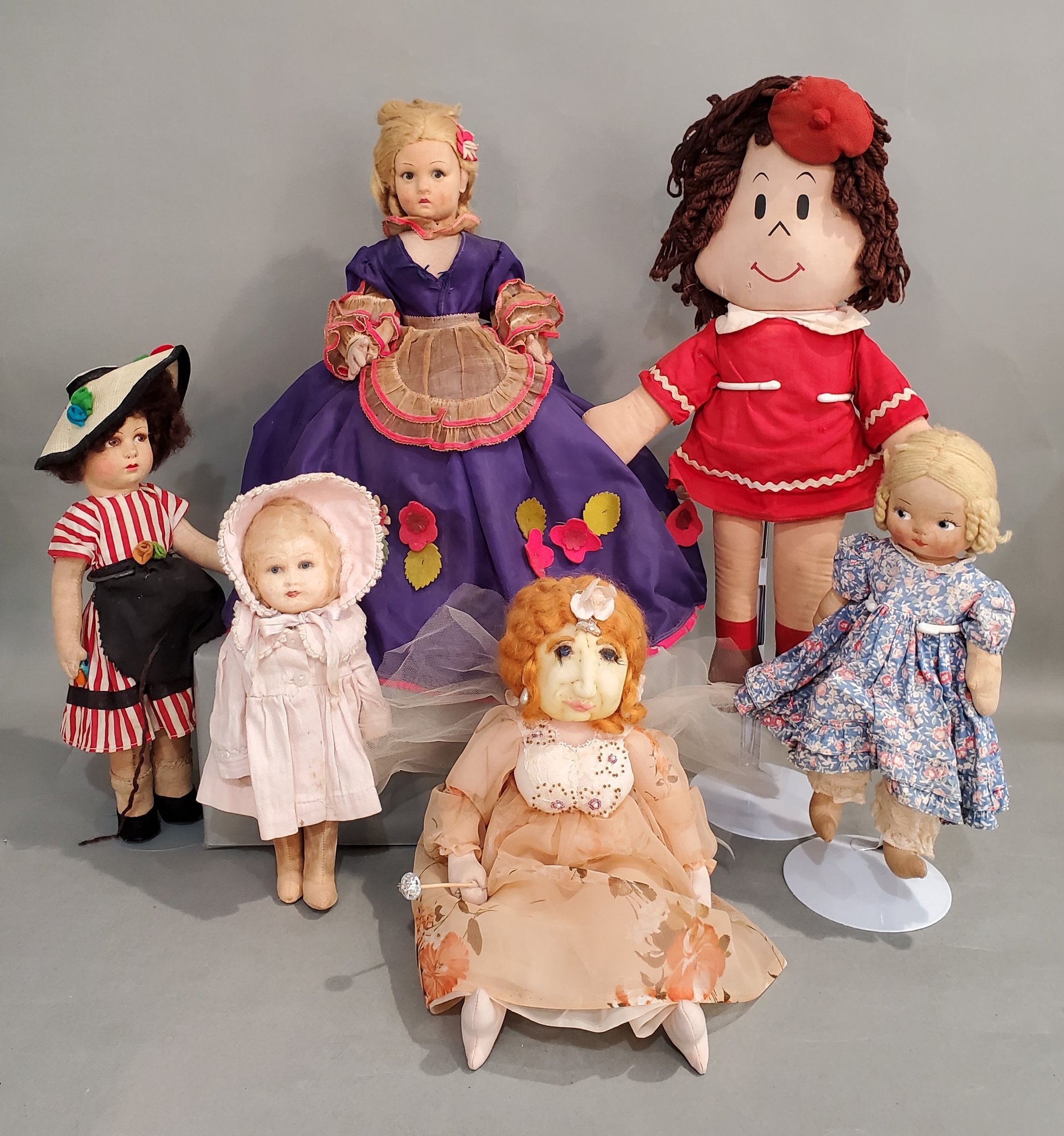 LOT OF VINTAGE CLOTH DOLLS - 11" - 18", ALL IN PLAYED WITH / DISPLAYED CONDITION