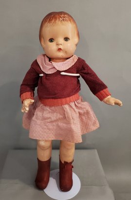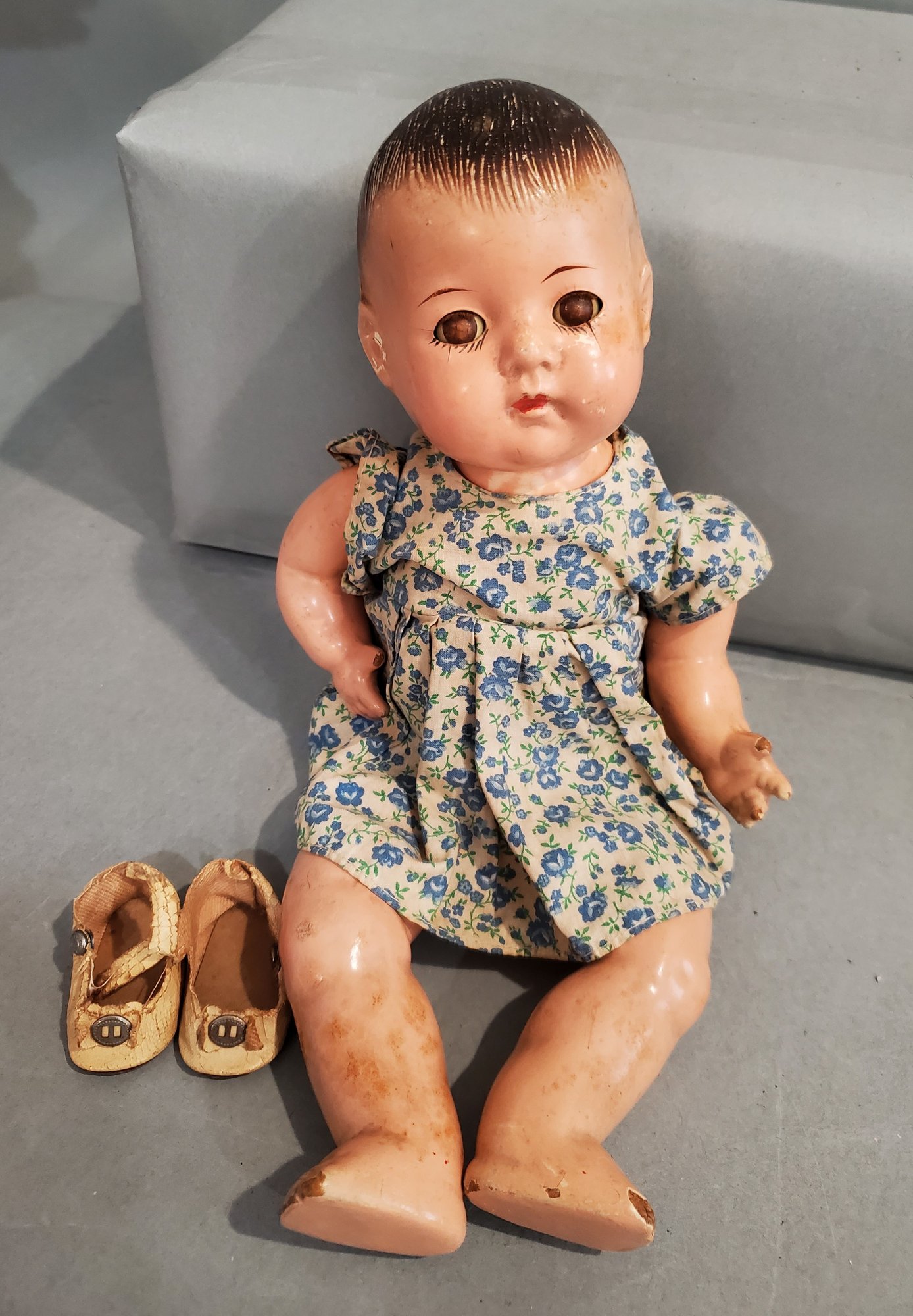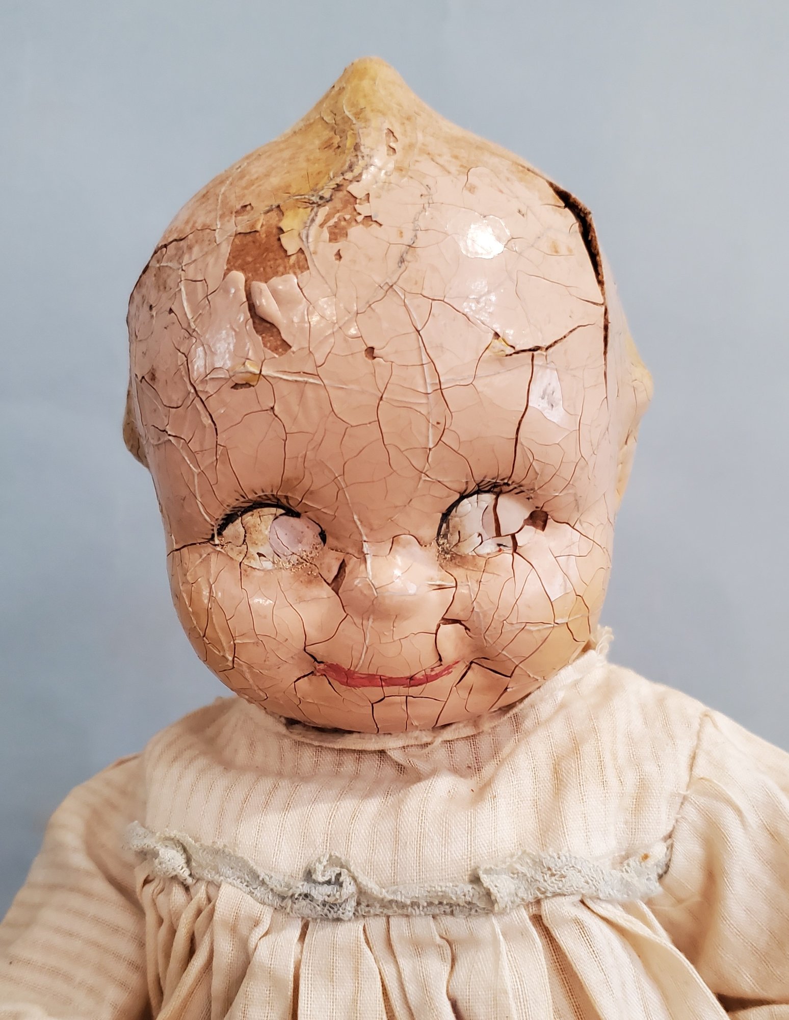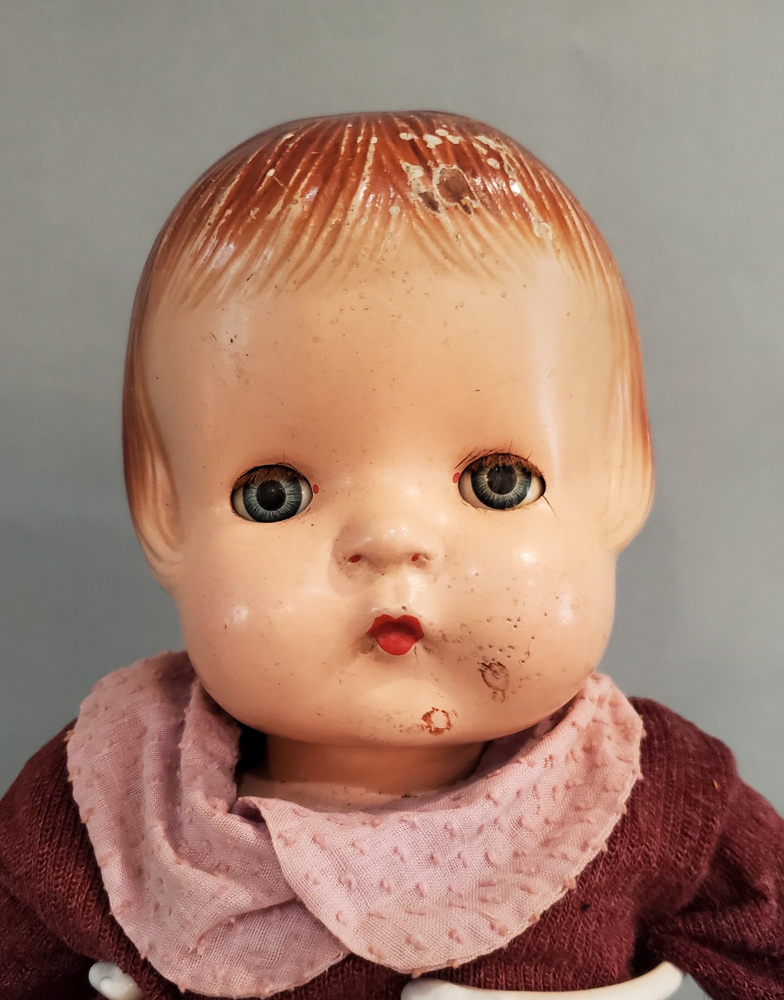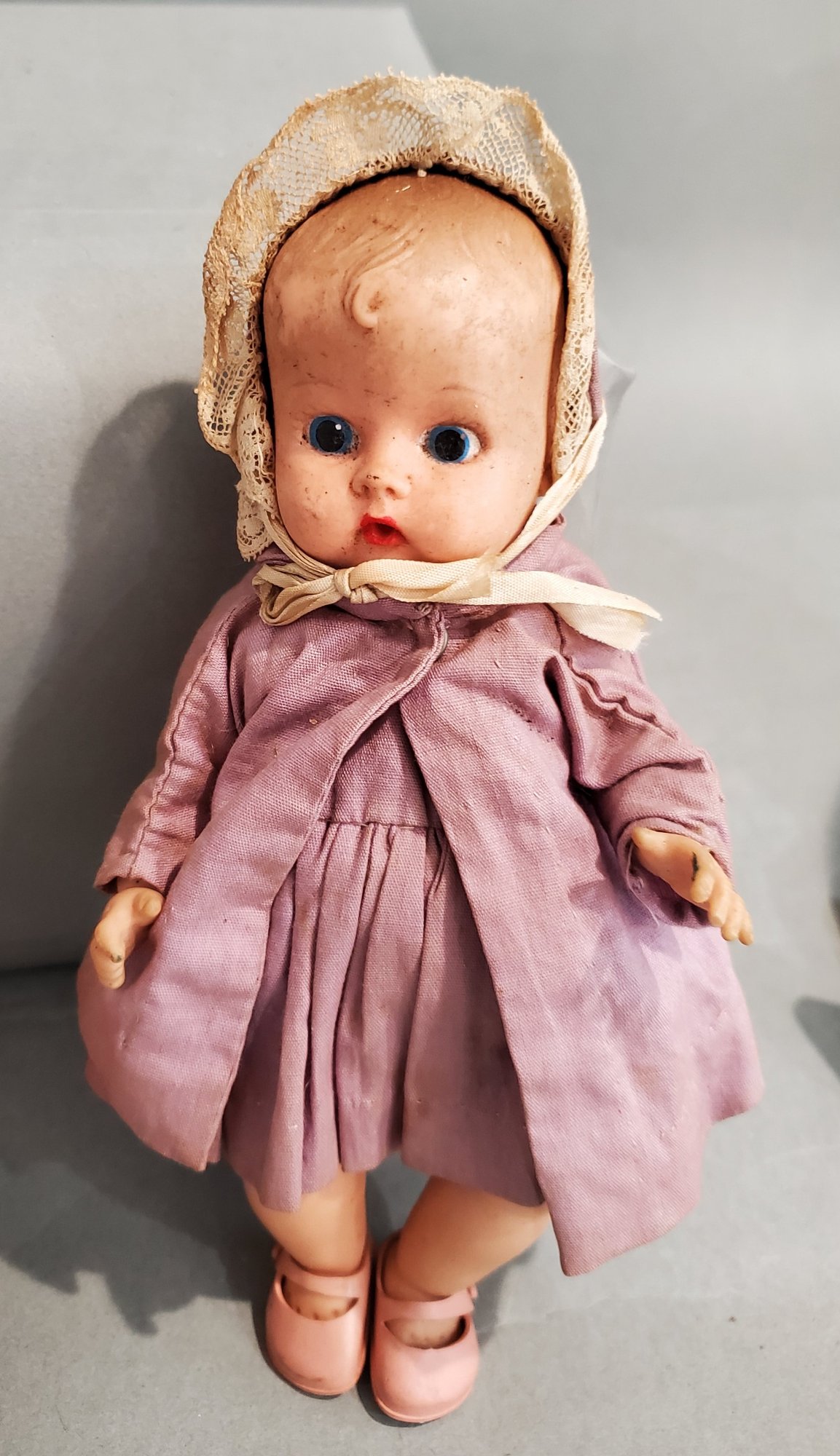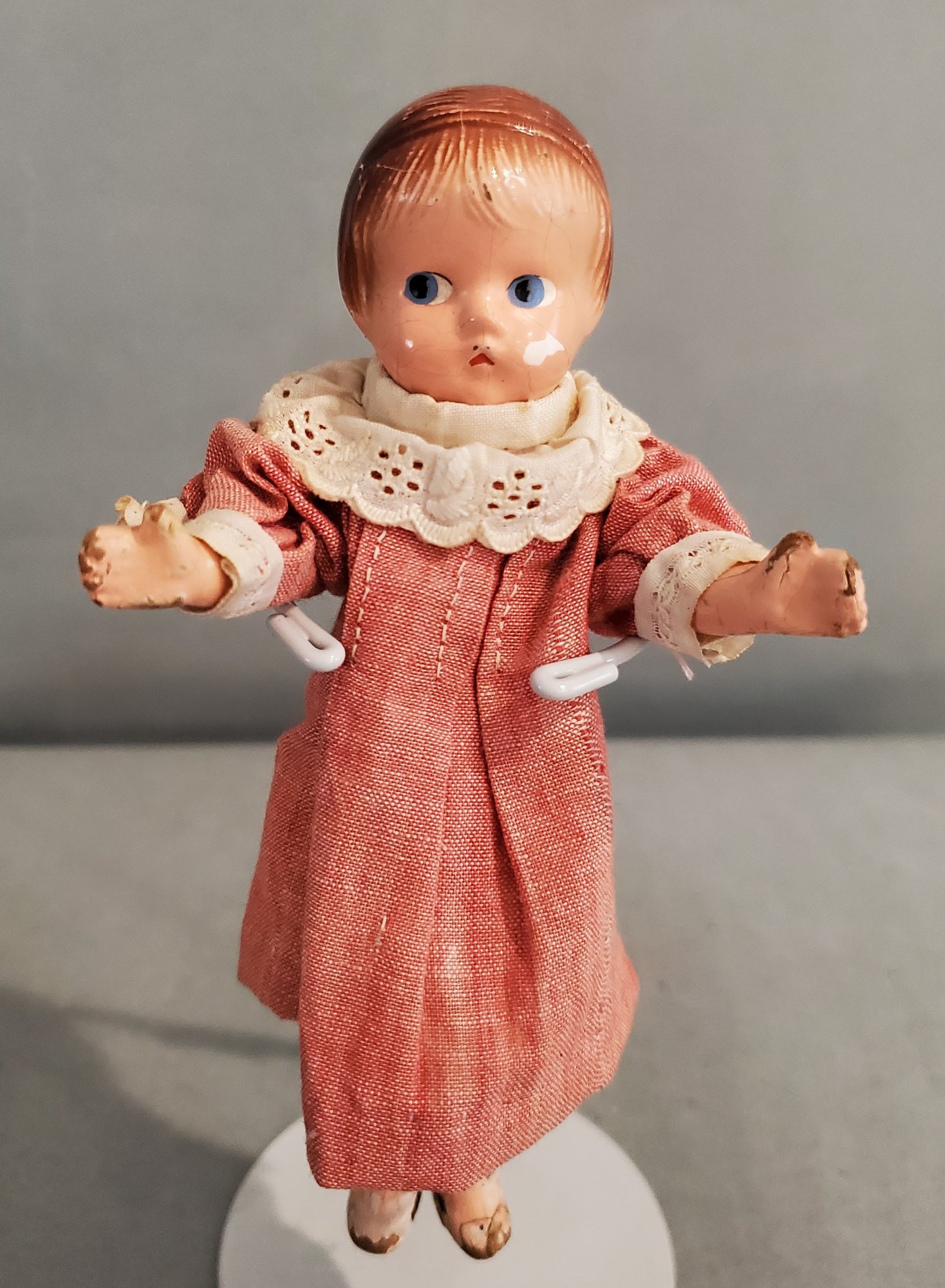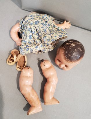 LOT OF VINTAGE COMPOSITION DOLLS PARTS / REPAIR - 5 3/4" - 19", 4 COMPOSITION / 1 VINYL, ALL IN PLAYED WITH CONDITION, ALL HAVE PAINT CRACKS & CHIPS