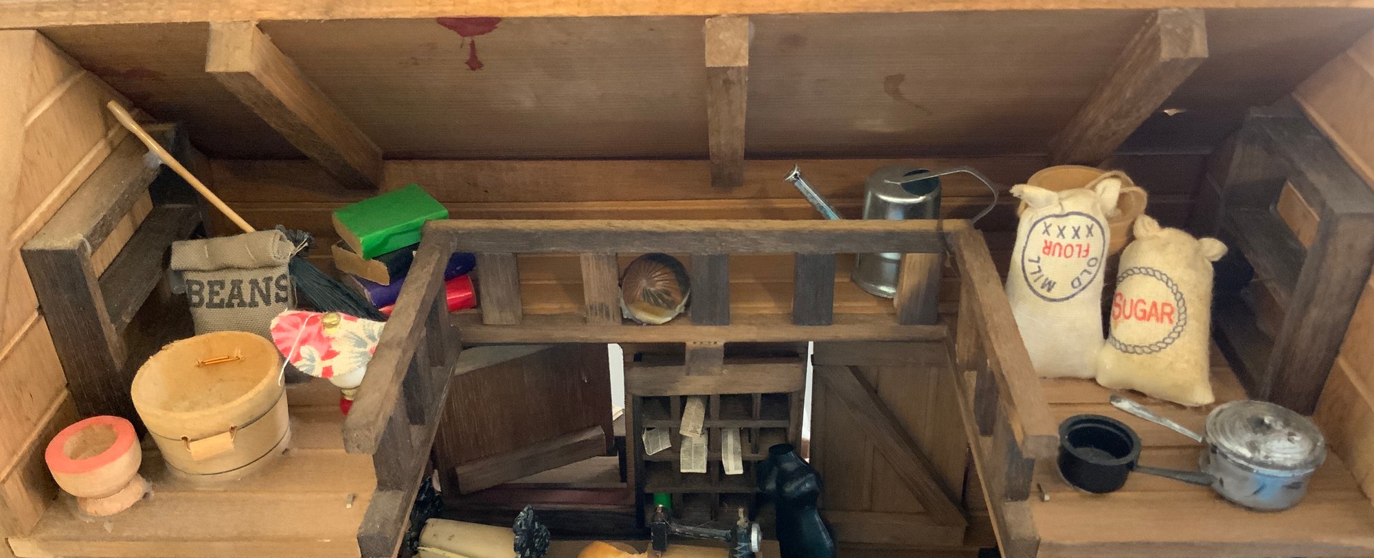 Old style General Store room box with contents, 12”L x 7”W x 10 ½”T