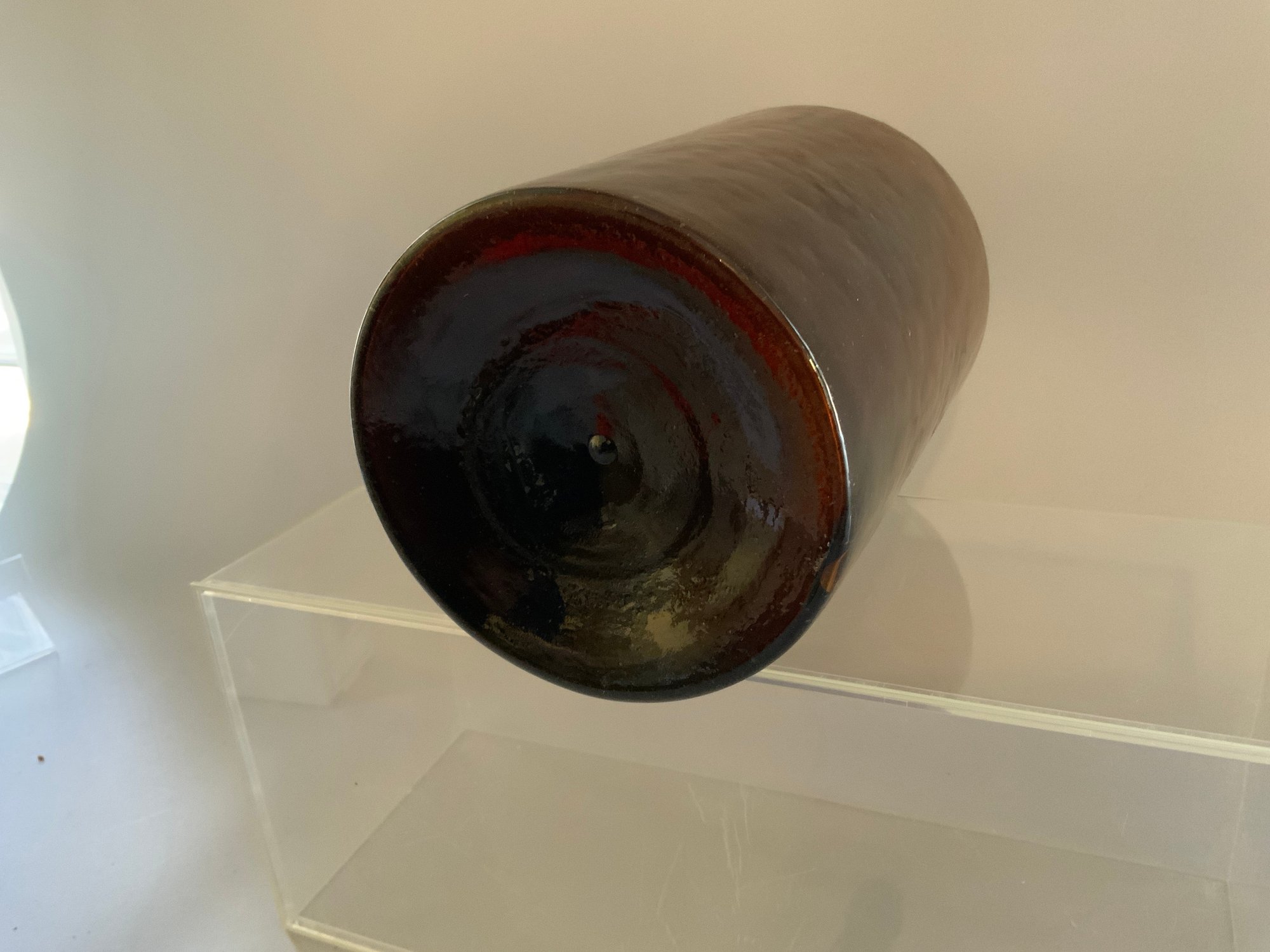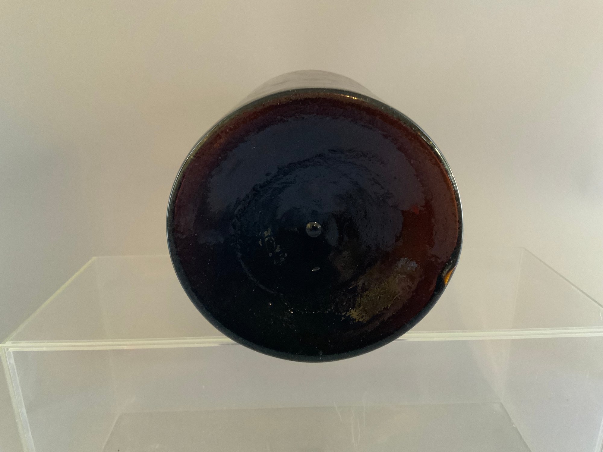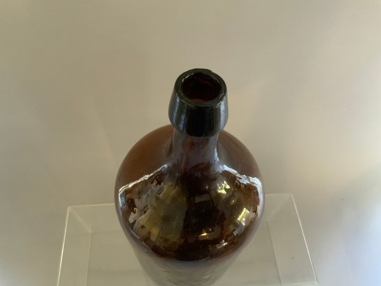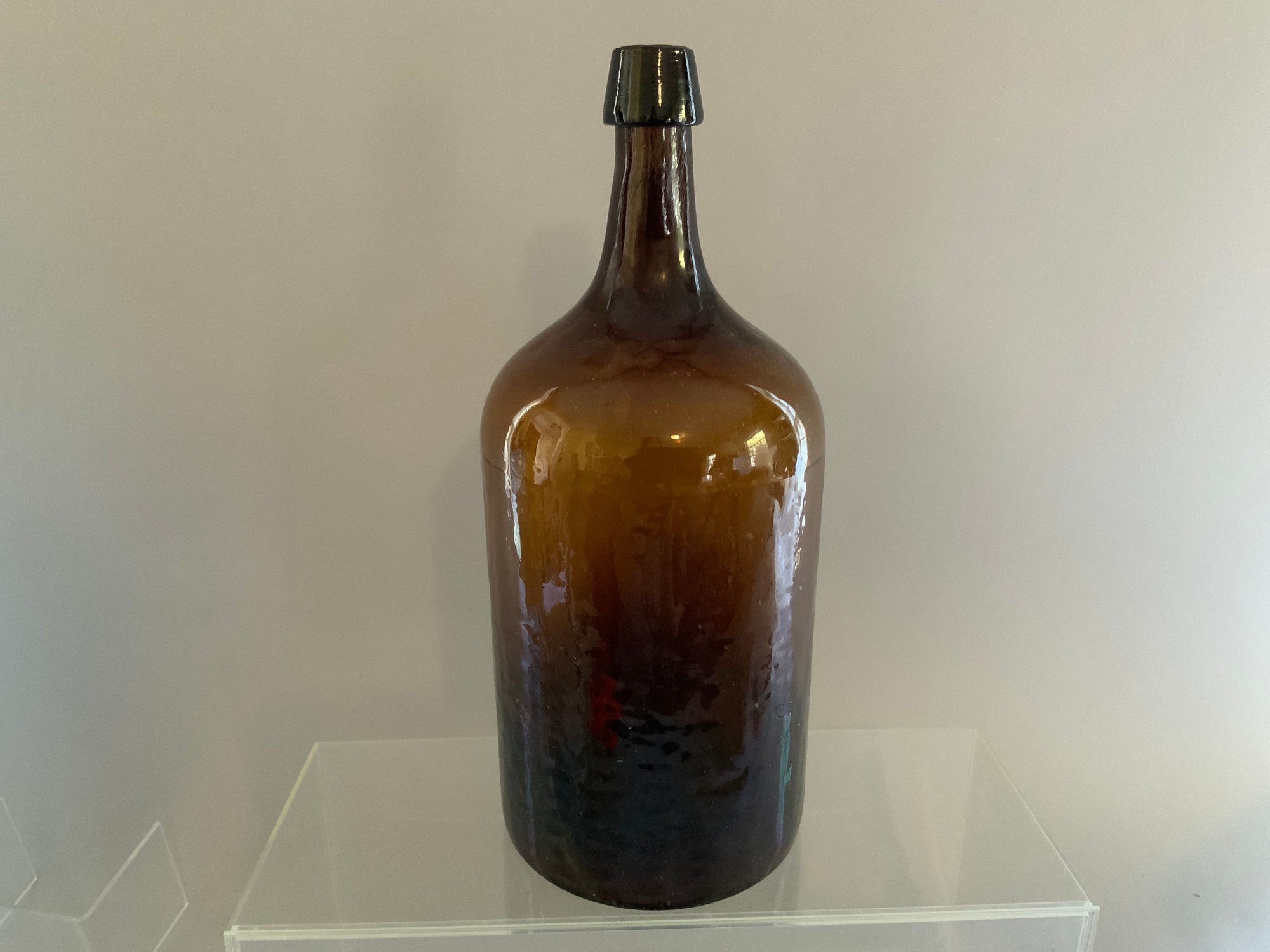 One 14.5”x6” Gallon Stoddard Demi-john, with applied neck and a smooth base with dot, overall good condition. Hand-blown. Amber color. Three-piece mold. Many small bubbles.