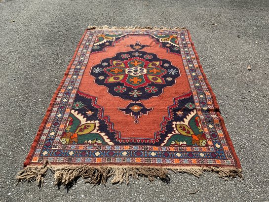 One 91”x51.5” appears to be Khamseh Persian rug, wear on edges. Some small areas of wear.