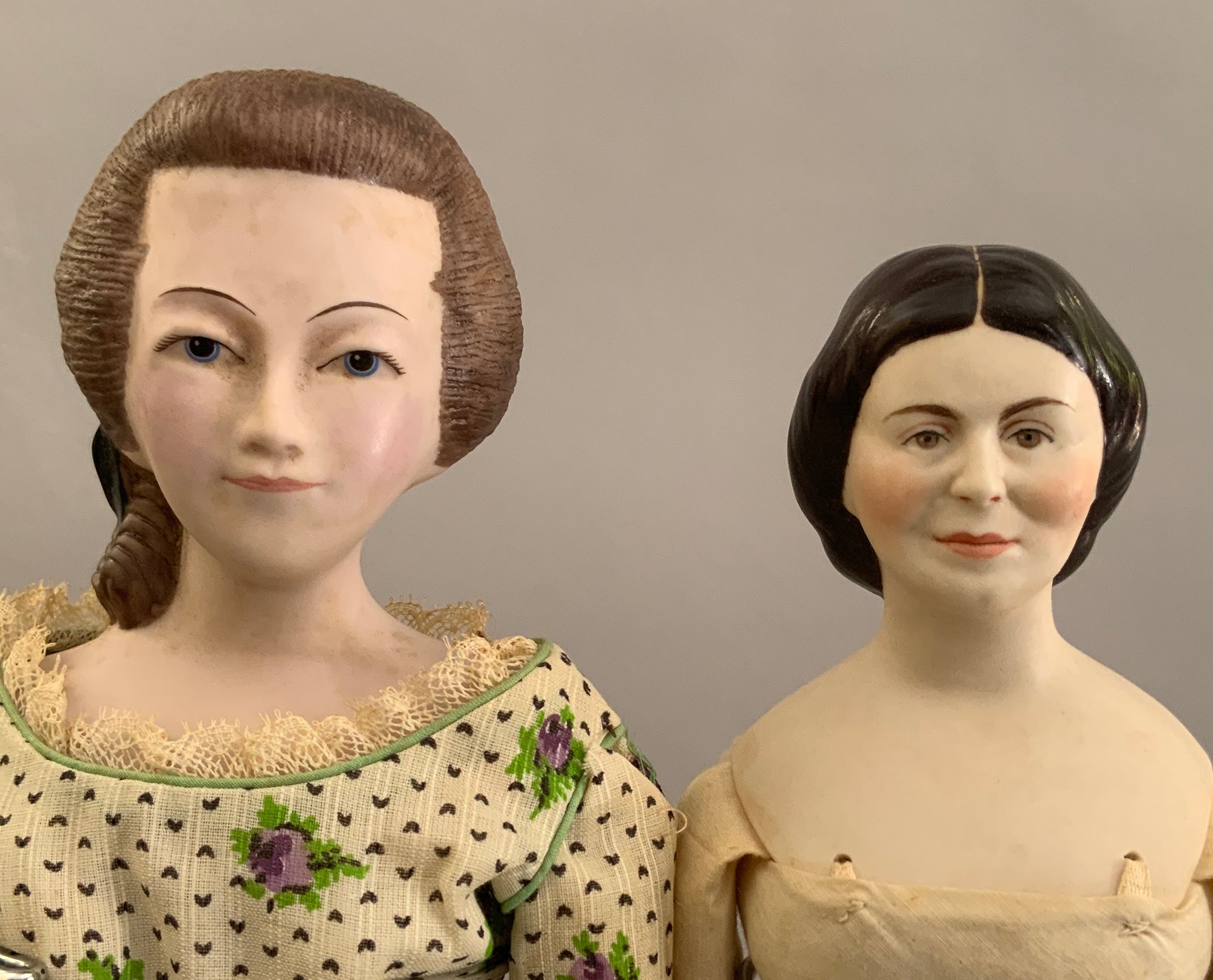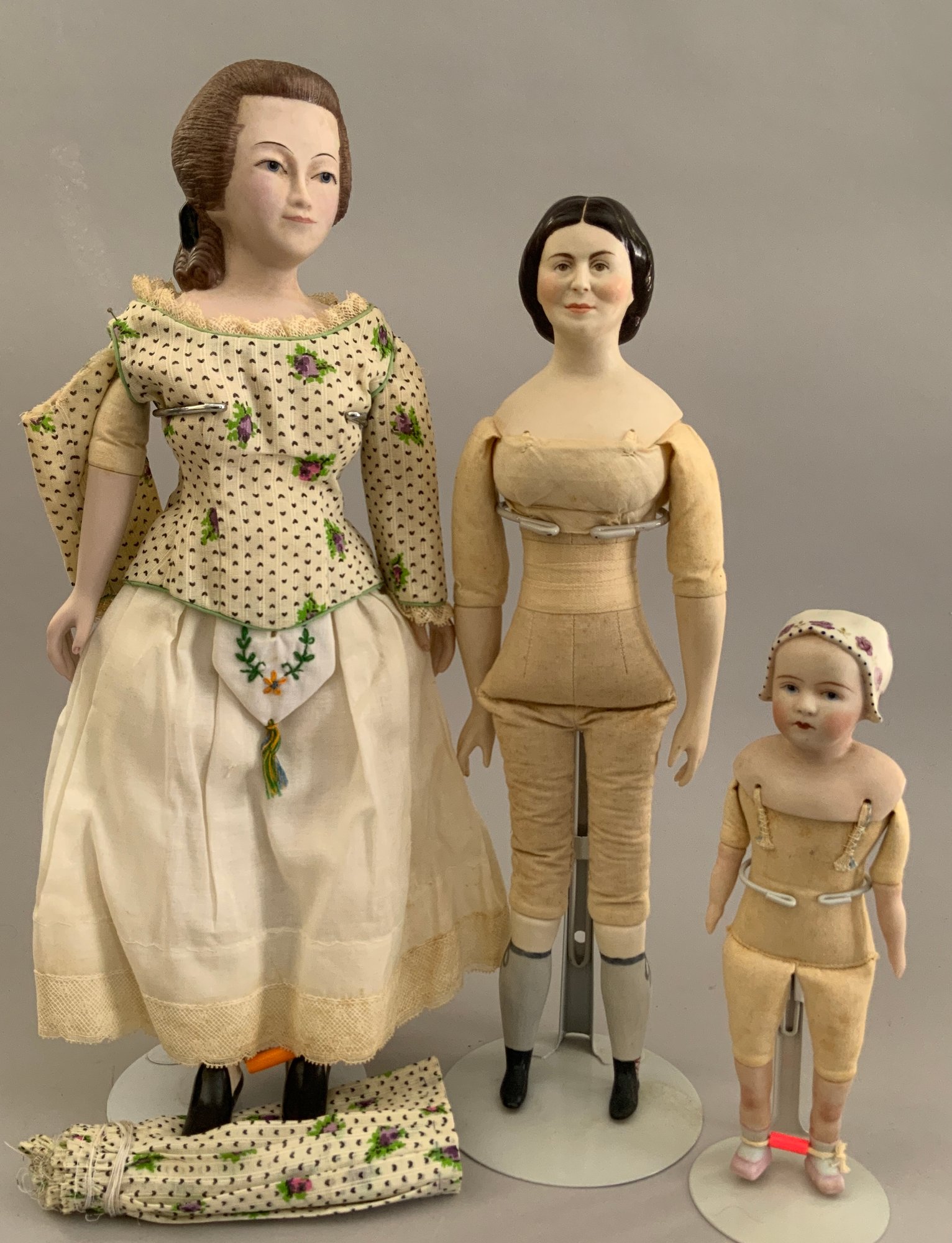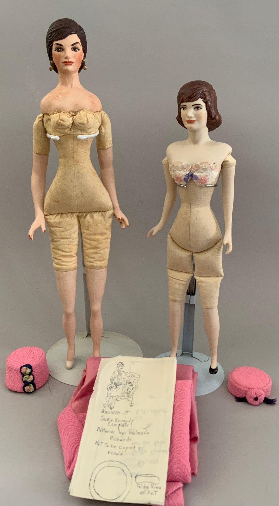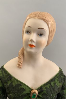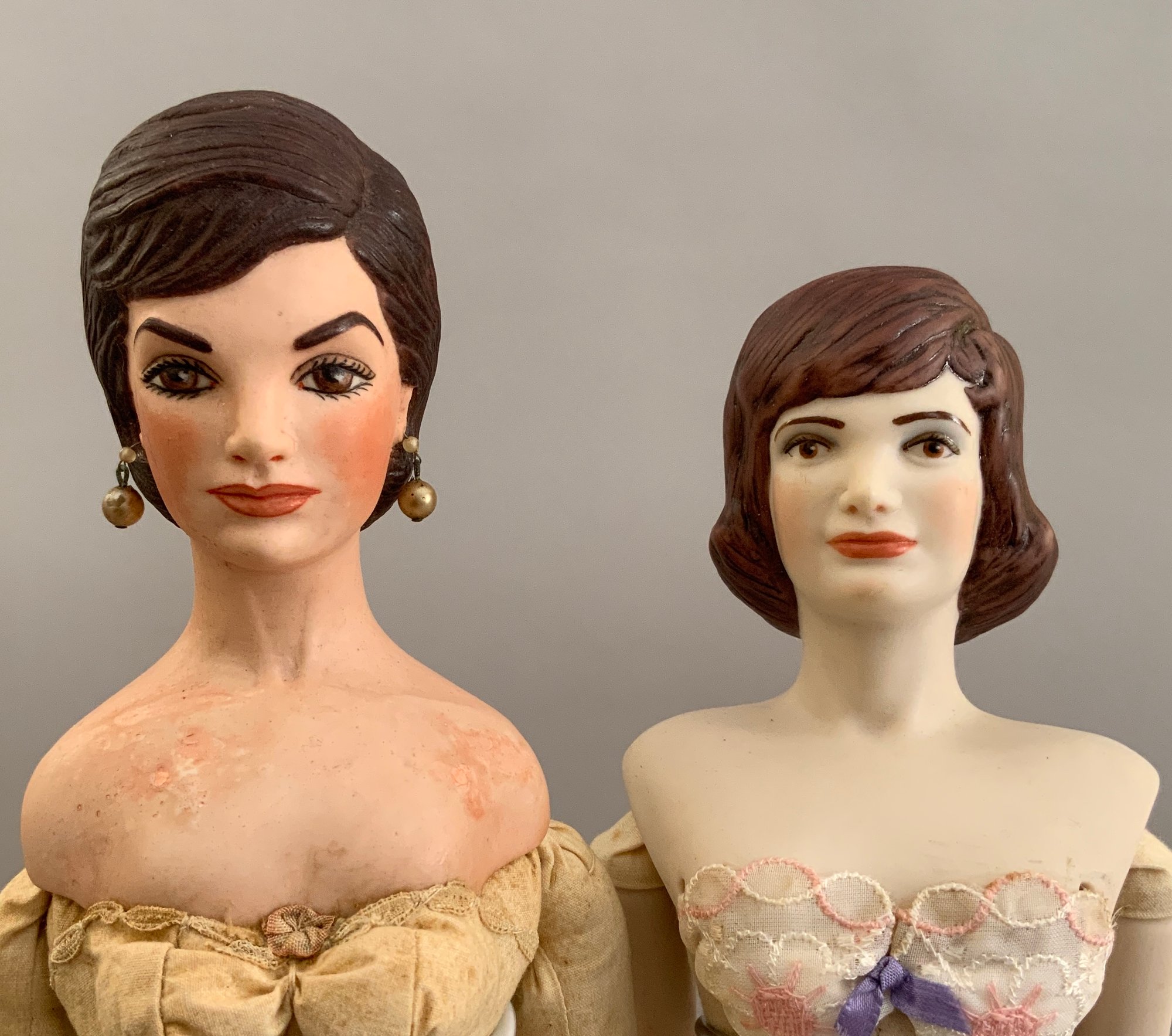 Opportunity box lot of 6 assorted artist dolls, 21” Parian S/H marked Harold “Leah” green dress, 15” bisque S/H by Grace Lathrop, 9” molded bonnet child doll, 17” Abigail Adams by Diana Lence Crosby 1978 convention doll, 2 – Jackie O artist dolls Harlod 16” & 19” Jackie 1962