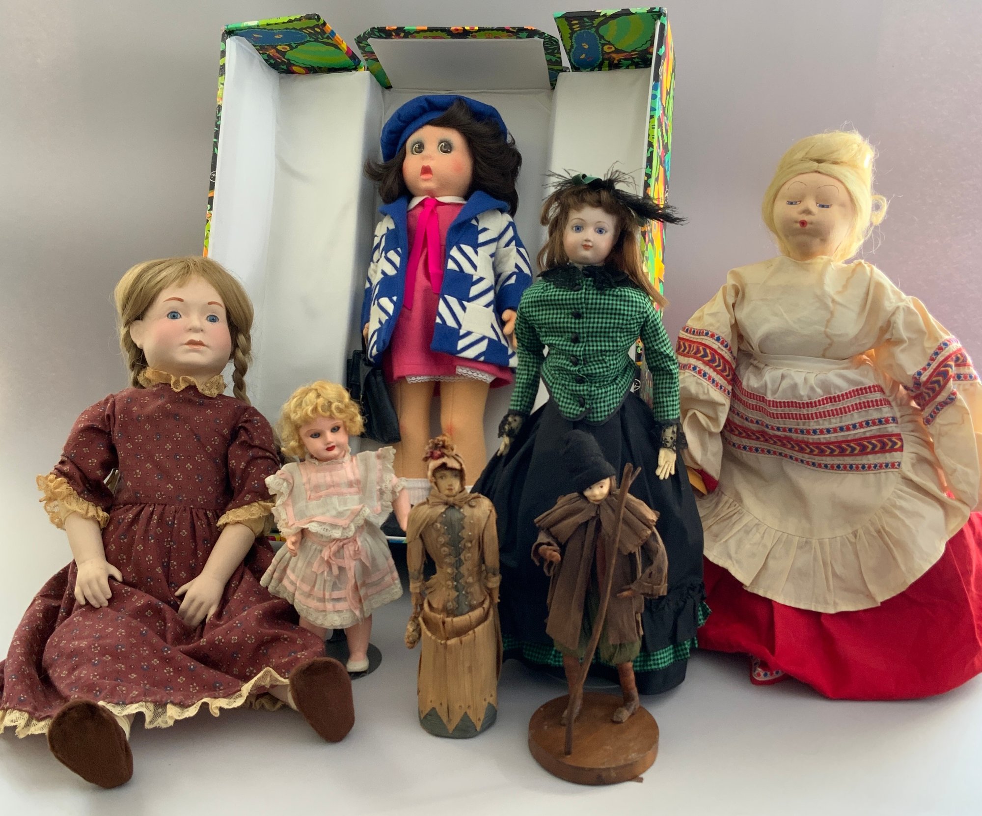 Opportunity box lot of assorted dolls including a 22” Lenci in original box