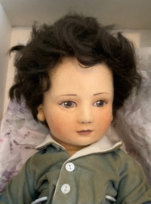 RJ Wright William, Little Children Series 1, #127 of 250 issue, molded and painted features, brown mohair, (blue sailor’s suit is sun faded, light soil on hands)w/ Certificate of Authenticity