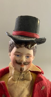 Schoenhut circus Ringmaster, bisque head, painted features, original outfit, (wear, stains, holes)