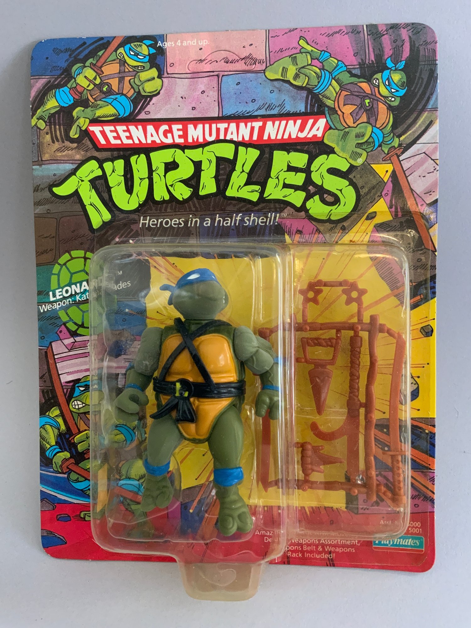 Teenage Mutant Ninja Turtles, Stock No.5001, 5002, 5003 (partial open pack), 5004 NIB, & 1 open turtle