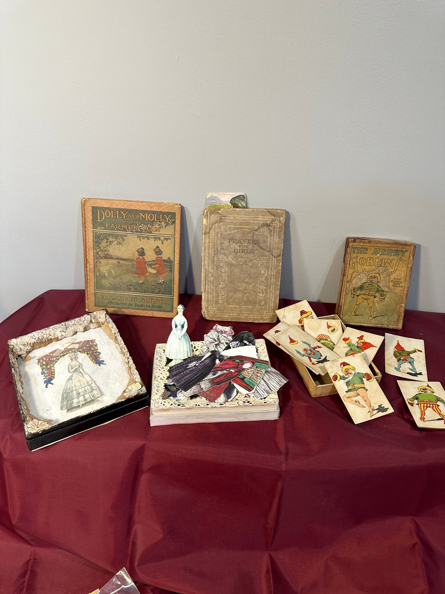The Merry Goblins, Prayers for Girls, Dolly & Molly, Paper doll with clothes (reproduction), 2 artist made boxes