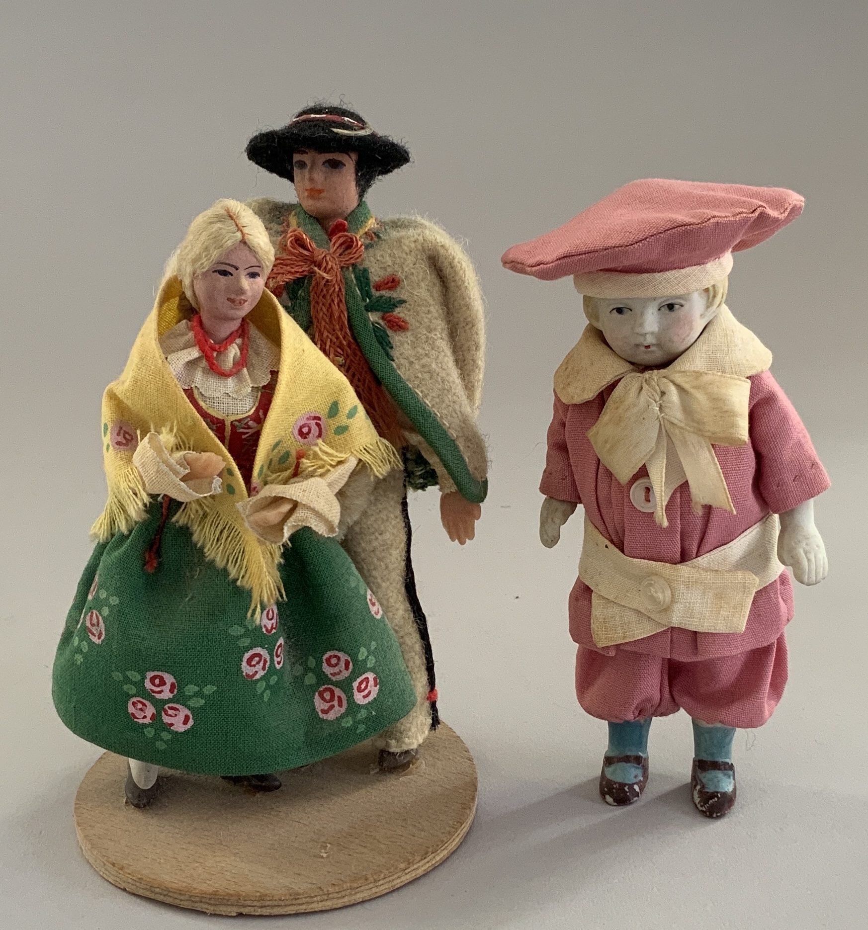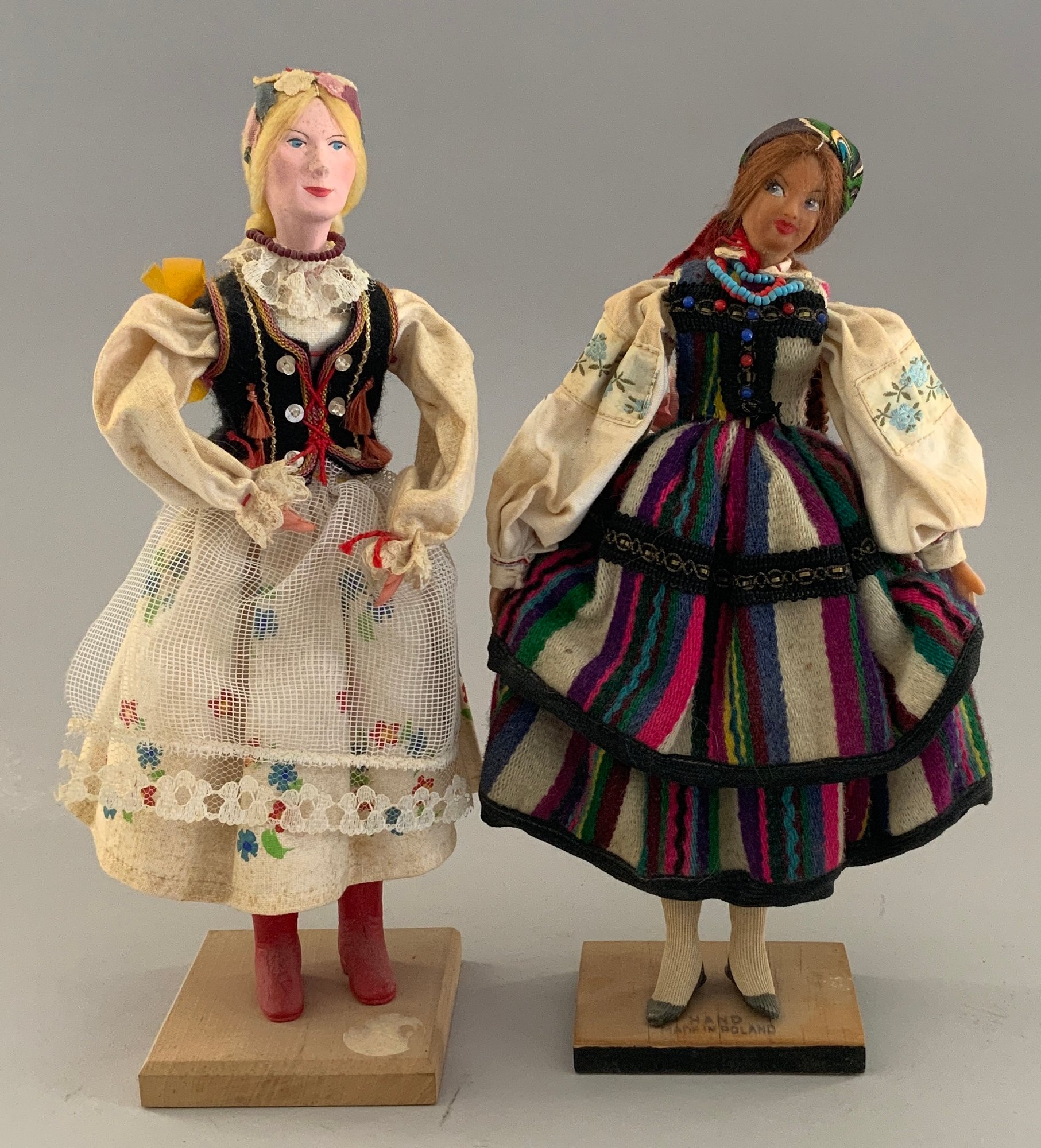 Tray lot of 8 Polish dolls & small Buster brown doll
