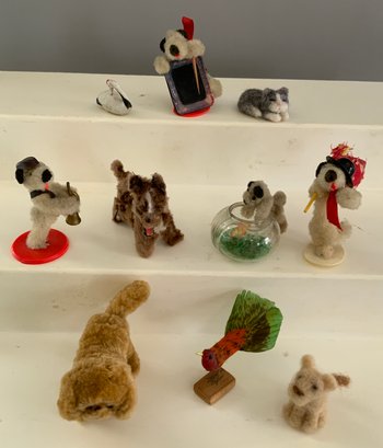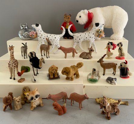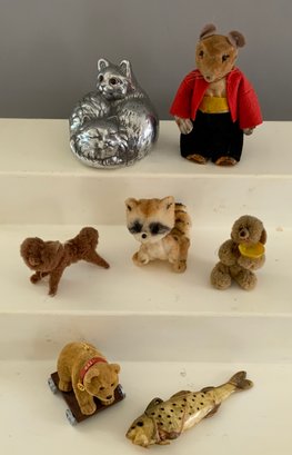 Tray lot of assorted animals including metal cat by Arthur Court Designs, Polar Bear is 8” long