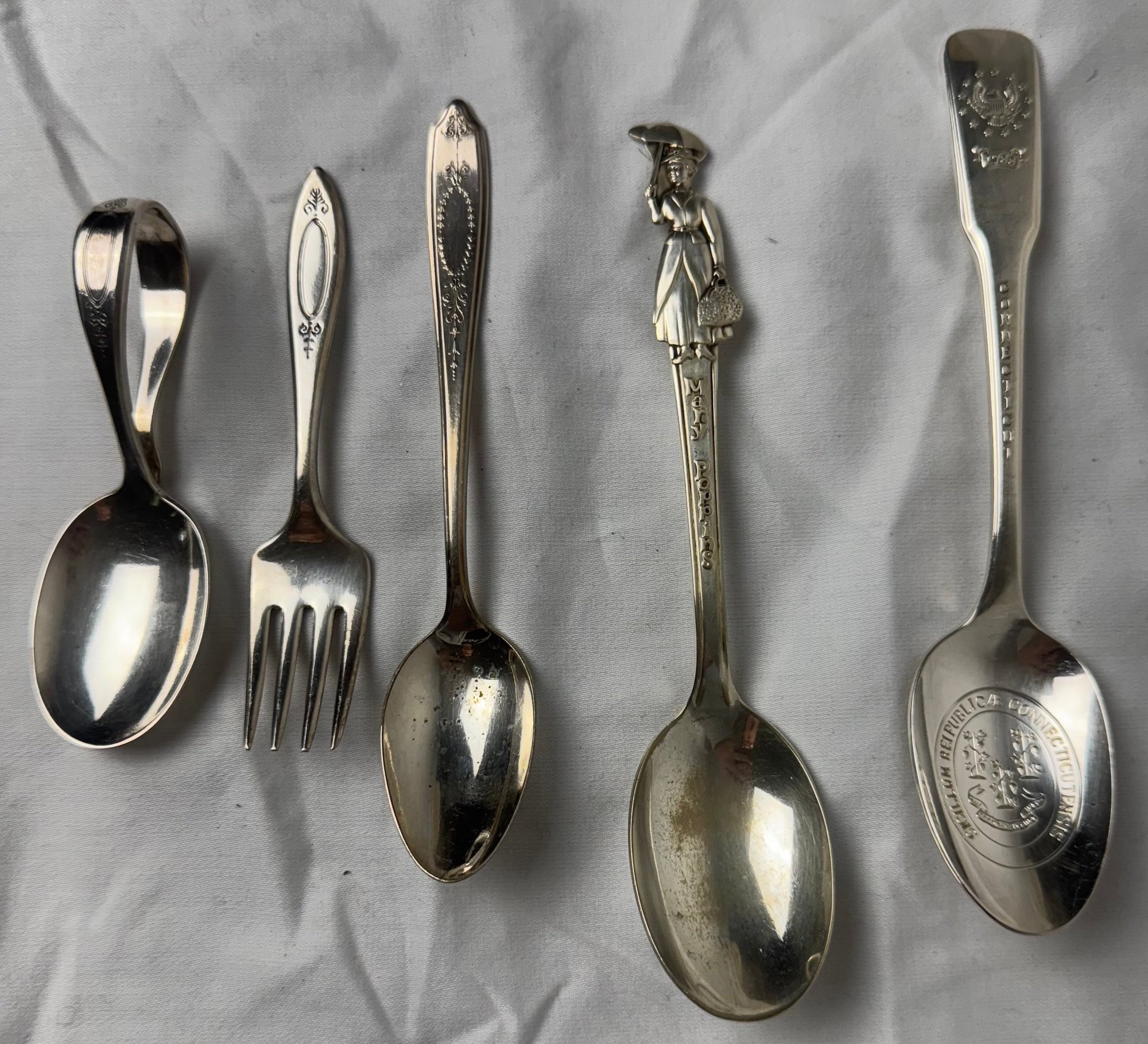 Silver Plate Childs Set, Mary Poppins Spoon And CT Souvenir Spoon