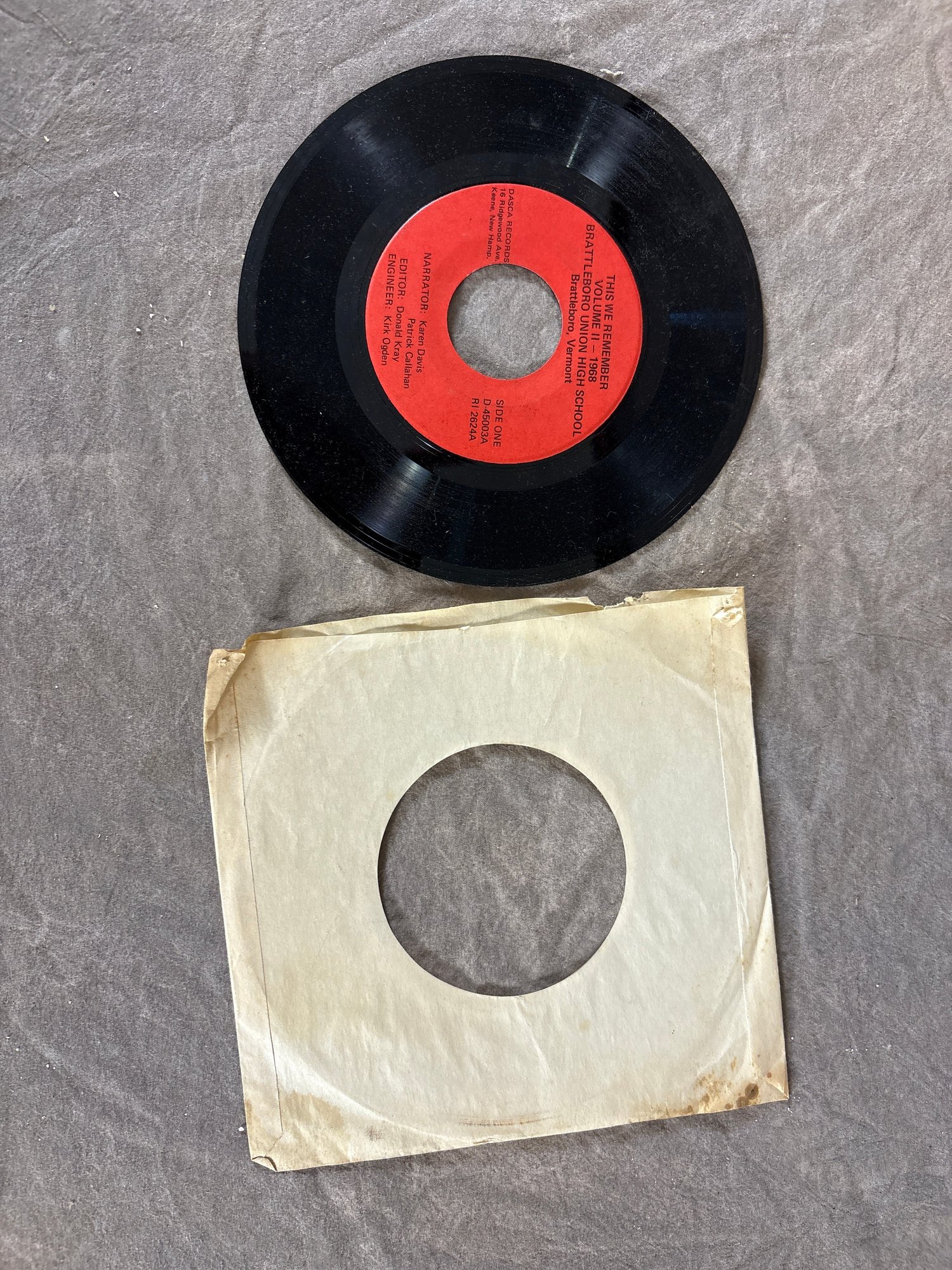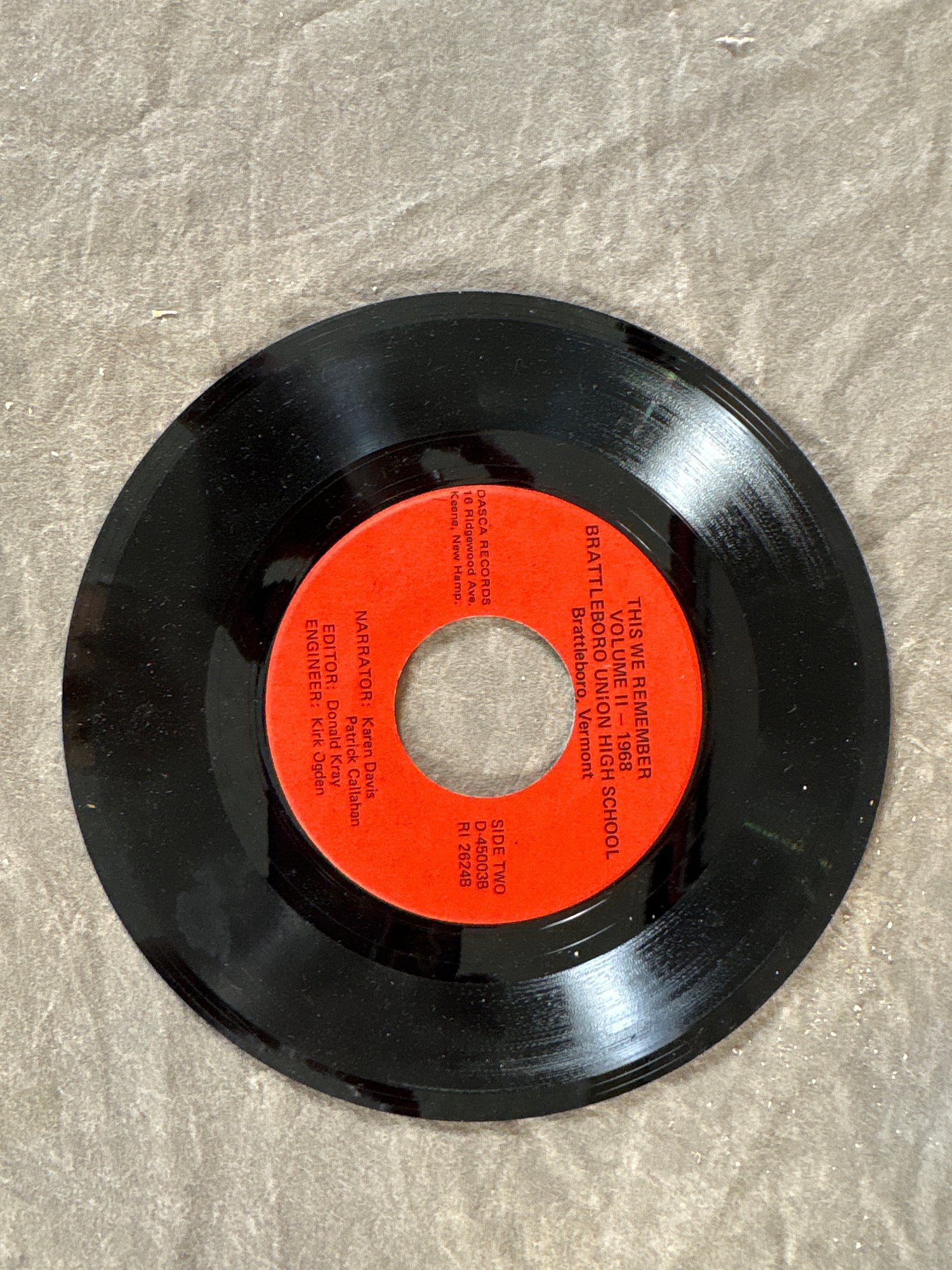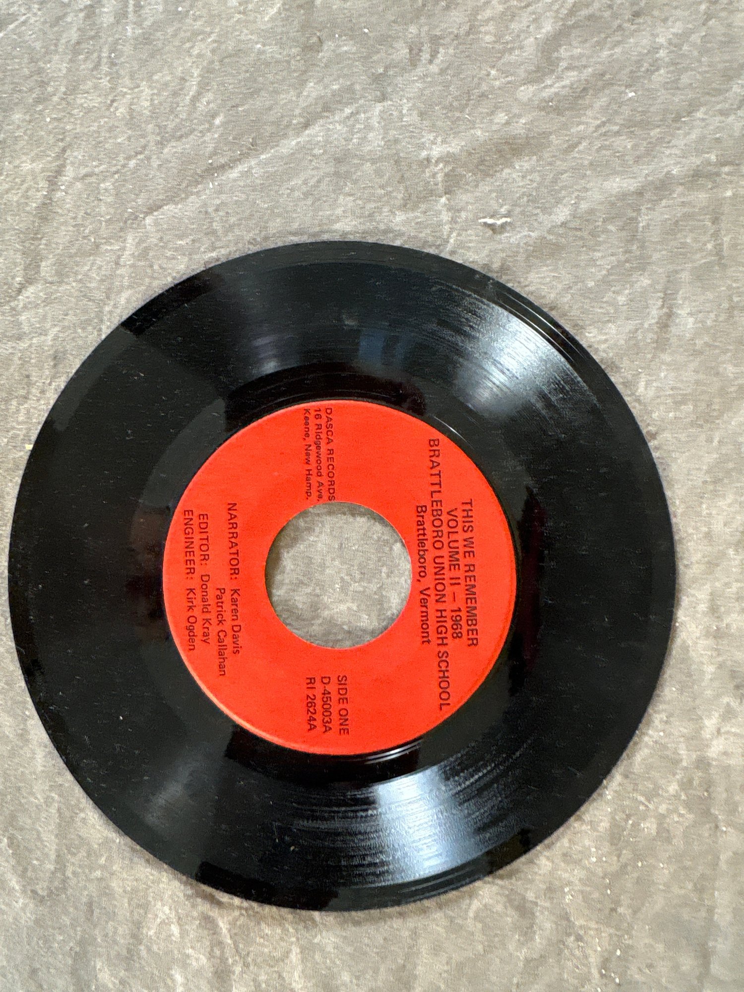 45 record of Brattleboro Vermont high school 1968 music