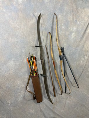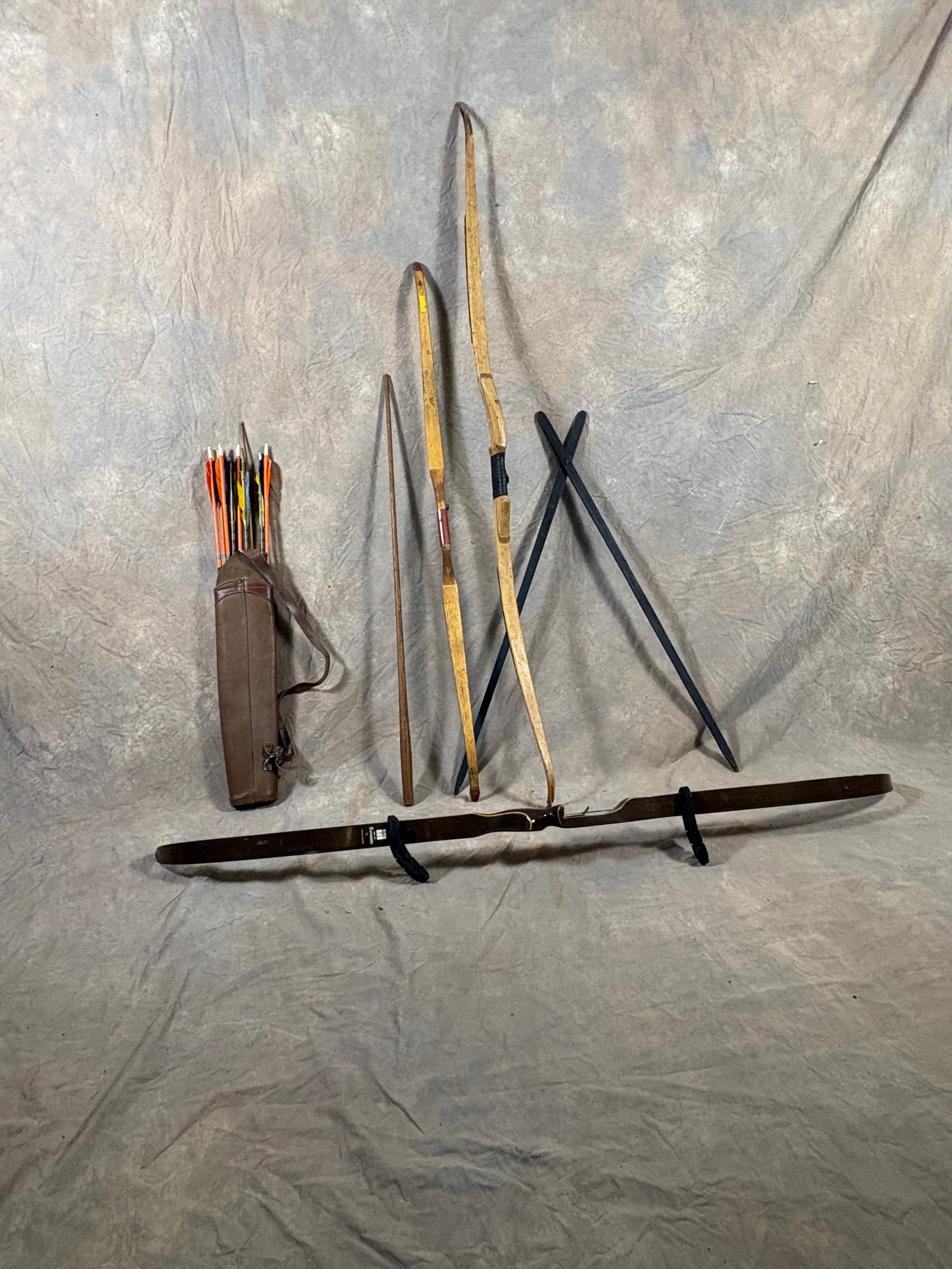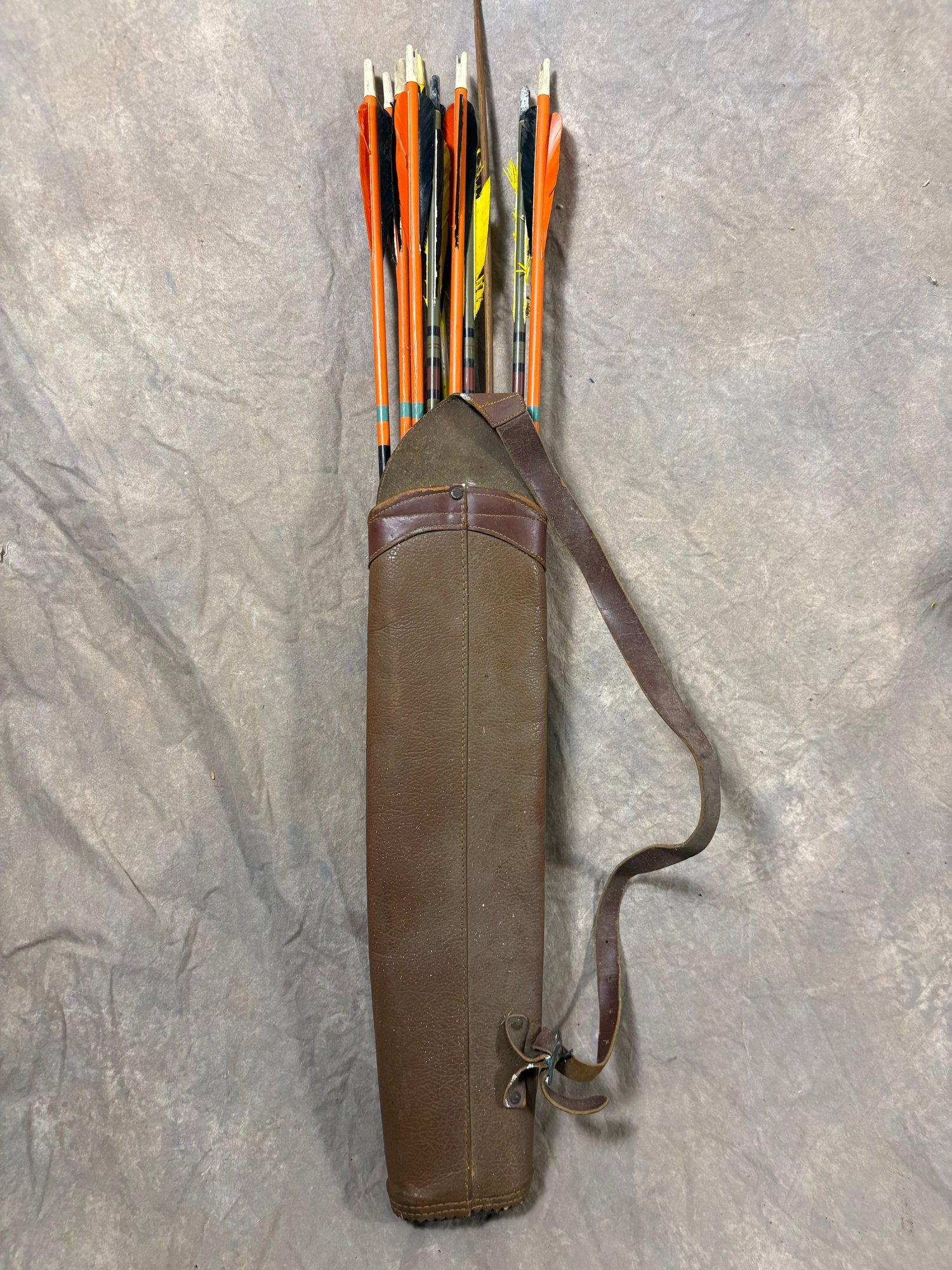 Antique archery items arrows in the carry case