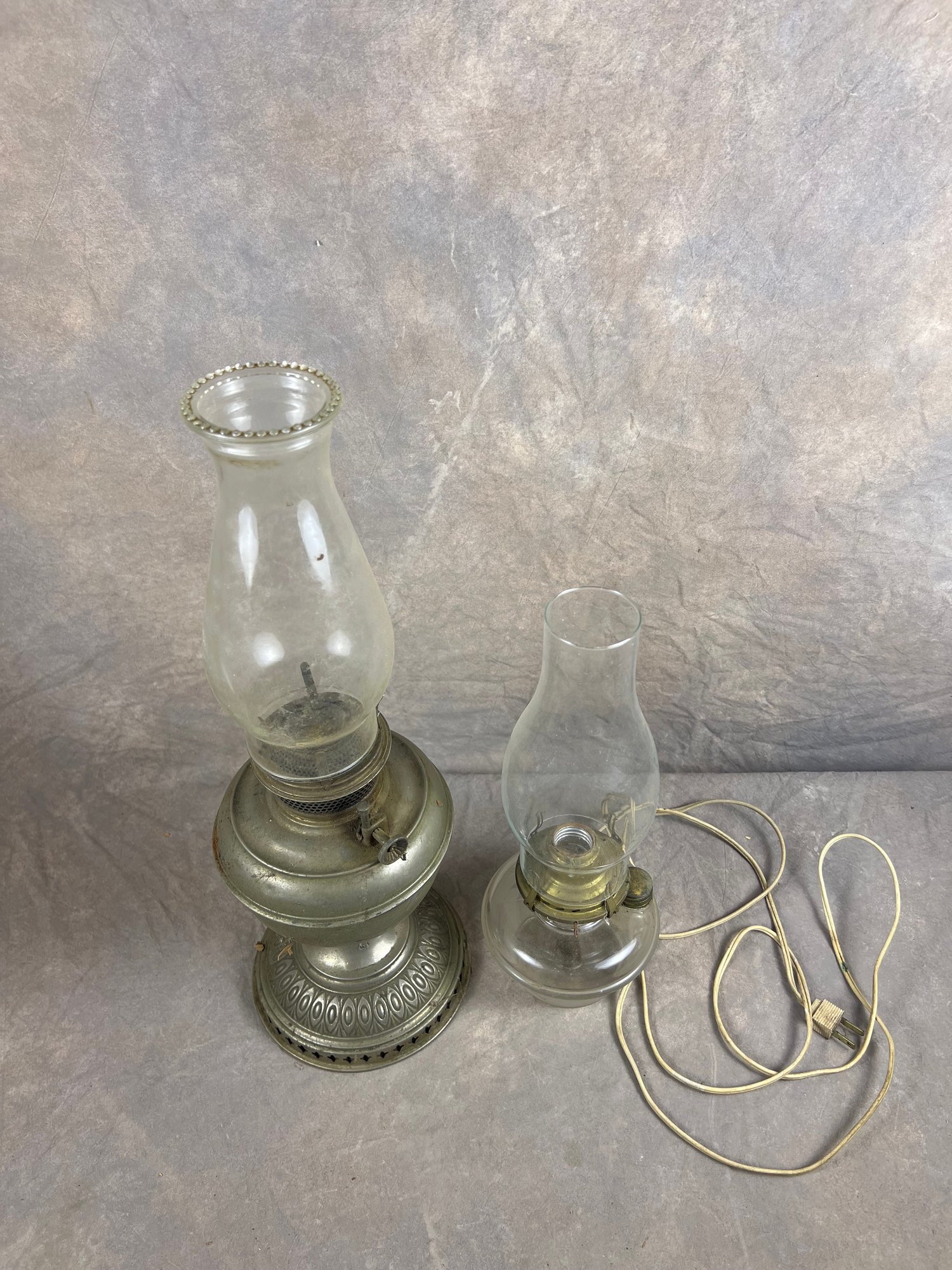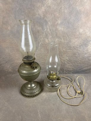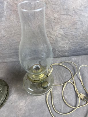 Antique Oil Lamps With Clear Glass Chimneys, collectors items, requires individual cleanings