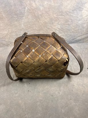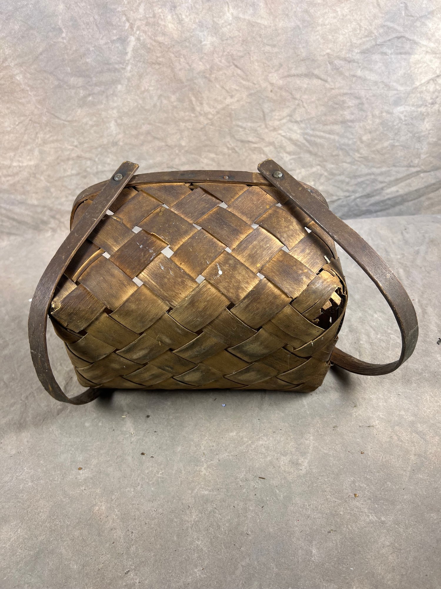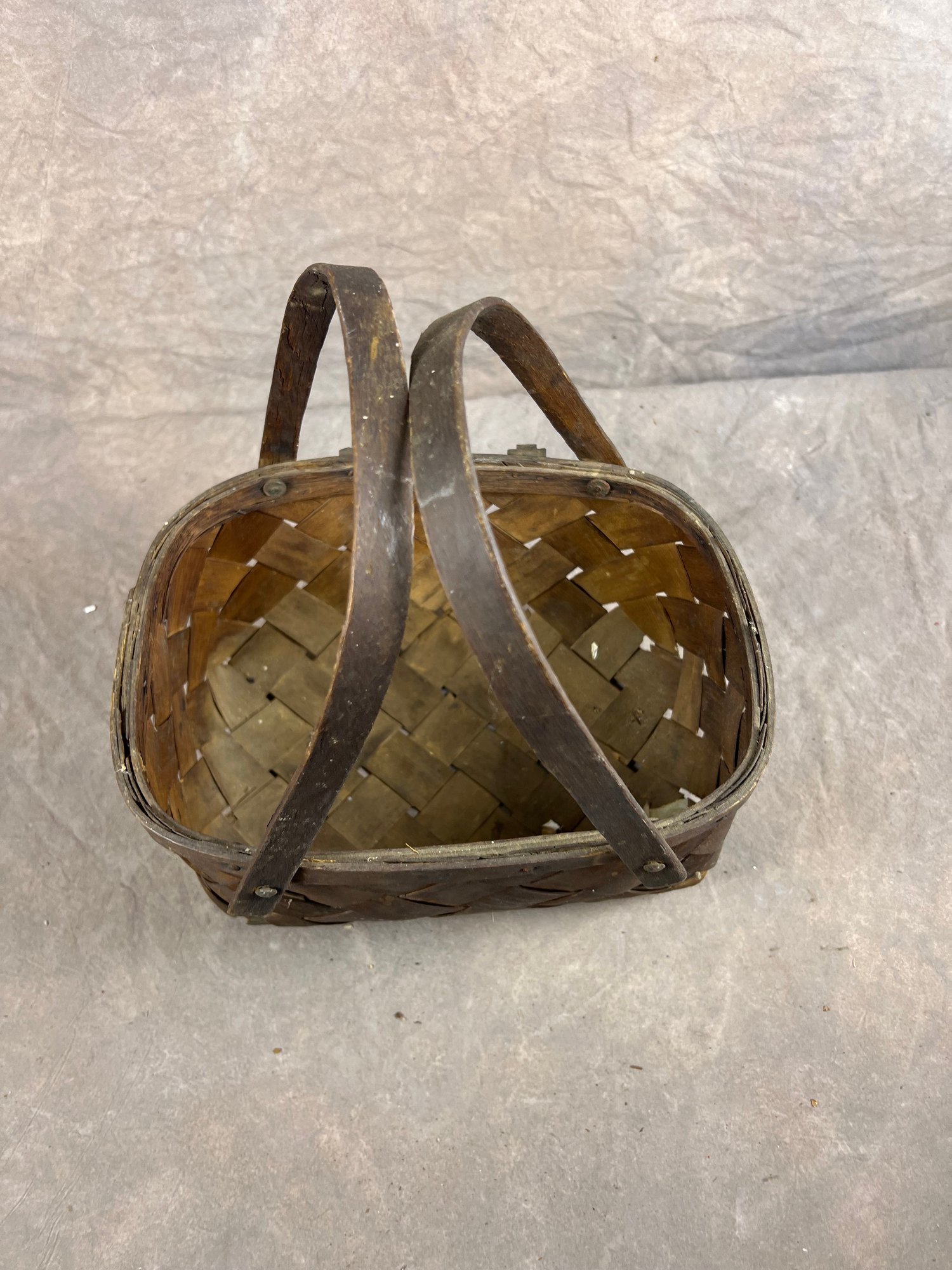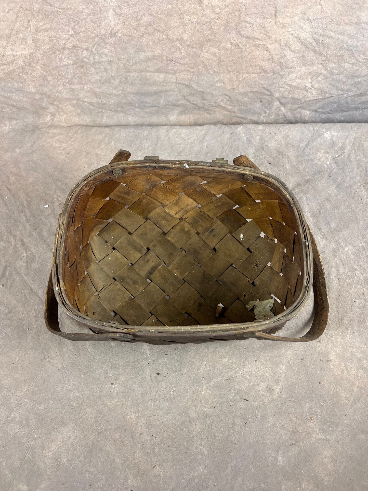 Antique Woven Wood Picnic Basket With Handles, in good condition