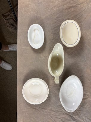 Assorted serving dishes and gravy boat one with ironstone stamp