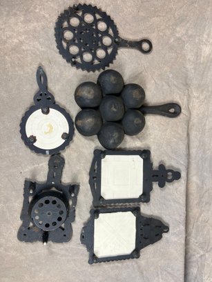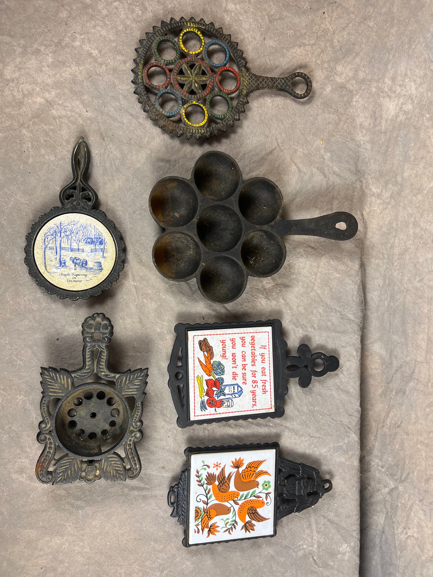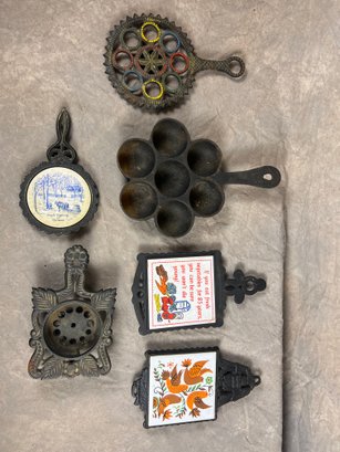 Collection Of Vintage Cast Iron And Ceramic Trivets, mid 20th century