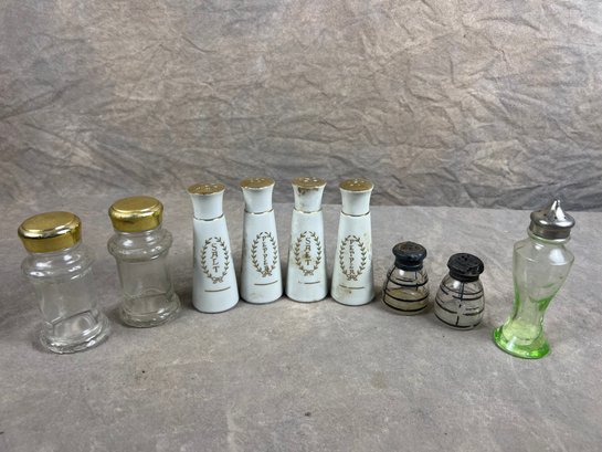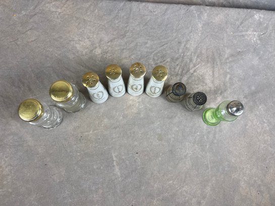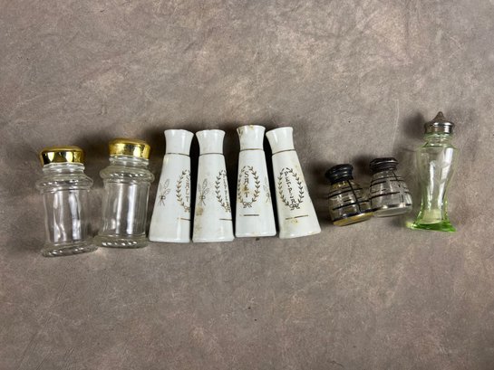 Nine Vintage Assorted Salt And Pepper Shakers, varying in sizes and designs, requires individual cleanings