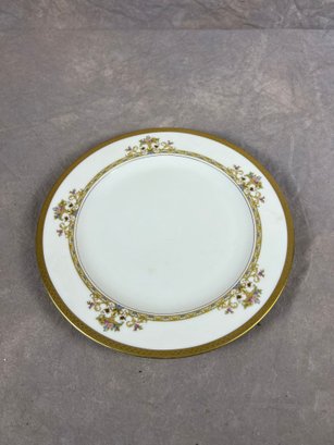 Floral Porcelain Dinner Plate With Gold Rim, in good condition