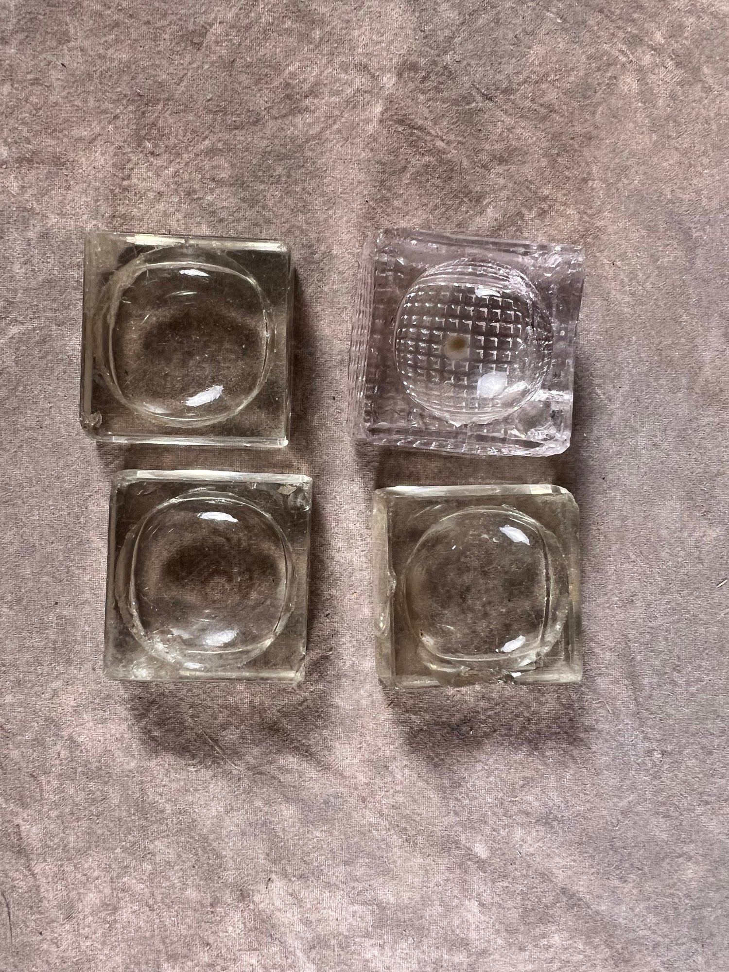 Collection of four various clear glass salts, three appear to be matching, various chips