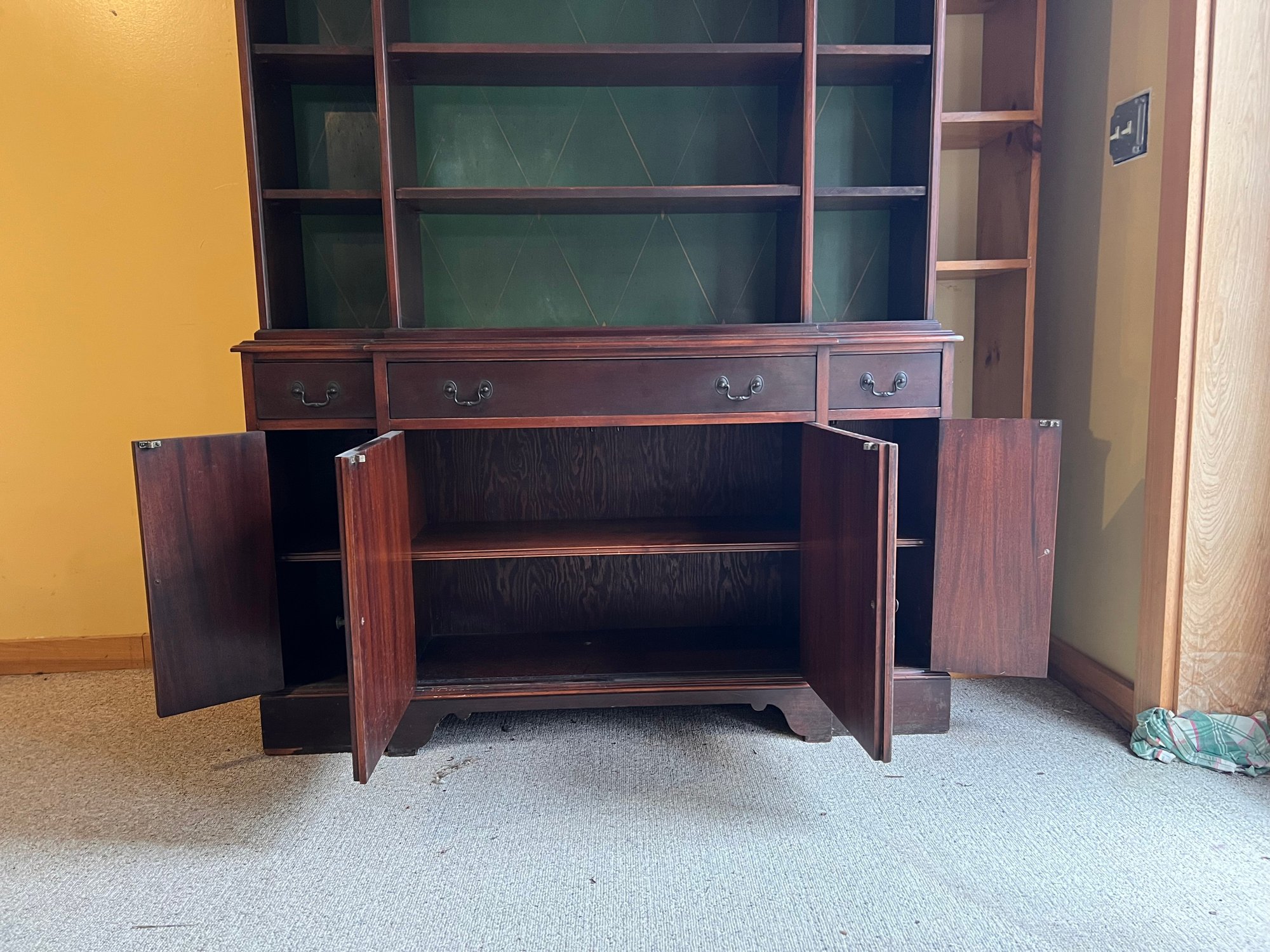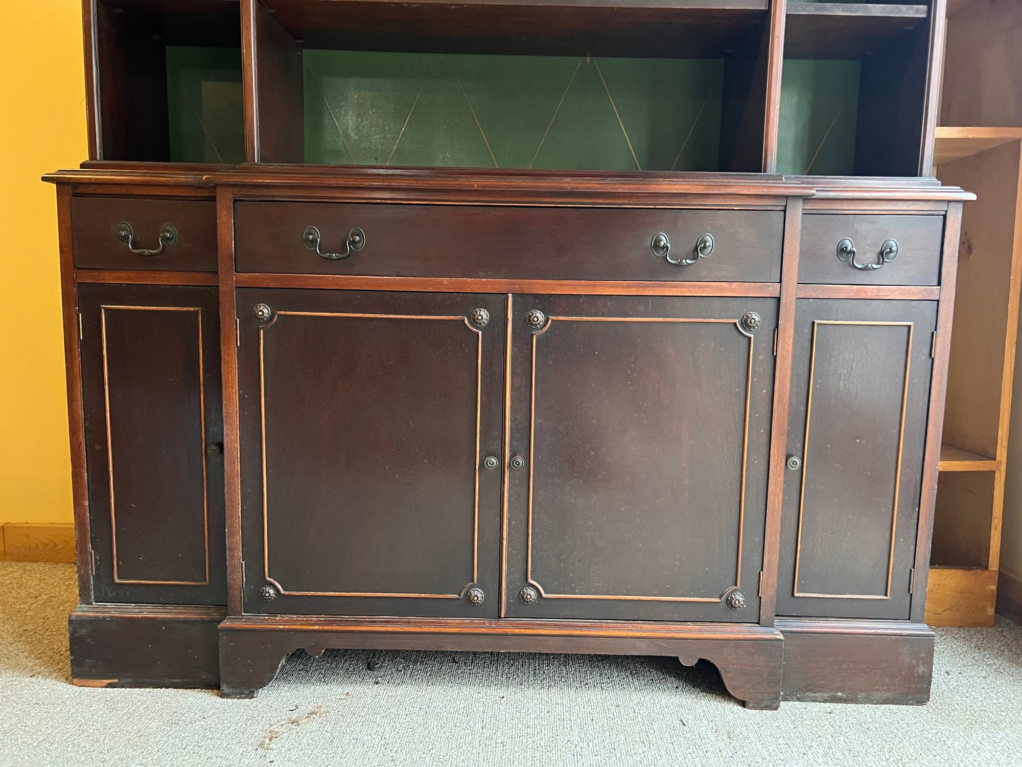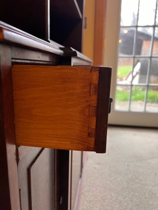 Wonderful Herman Miller breakfront bookcase. Dovetail drawers, original brass label. Reach out with any questions, we will load for you. Delivery available for additional charge.