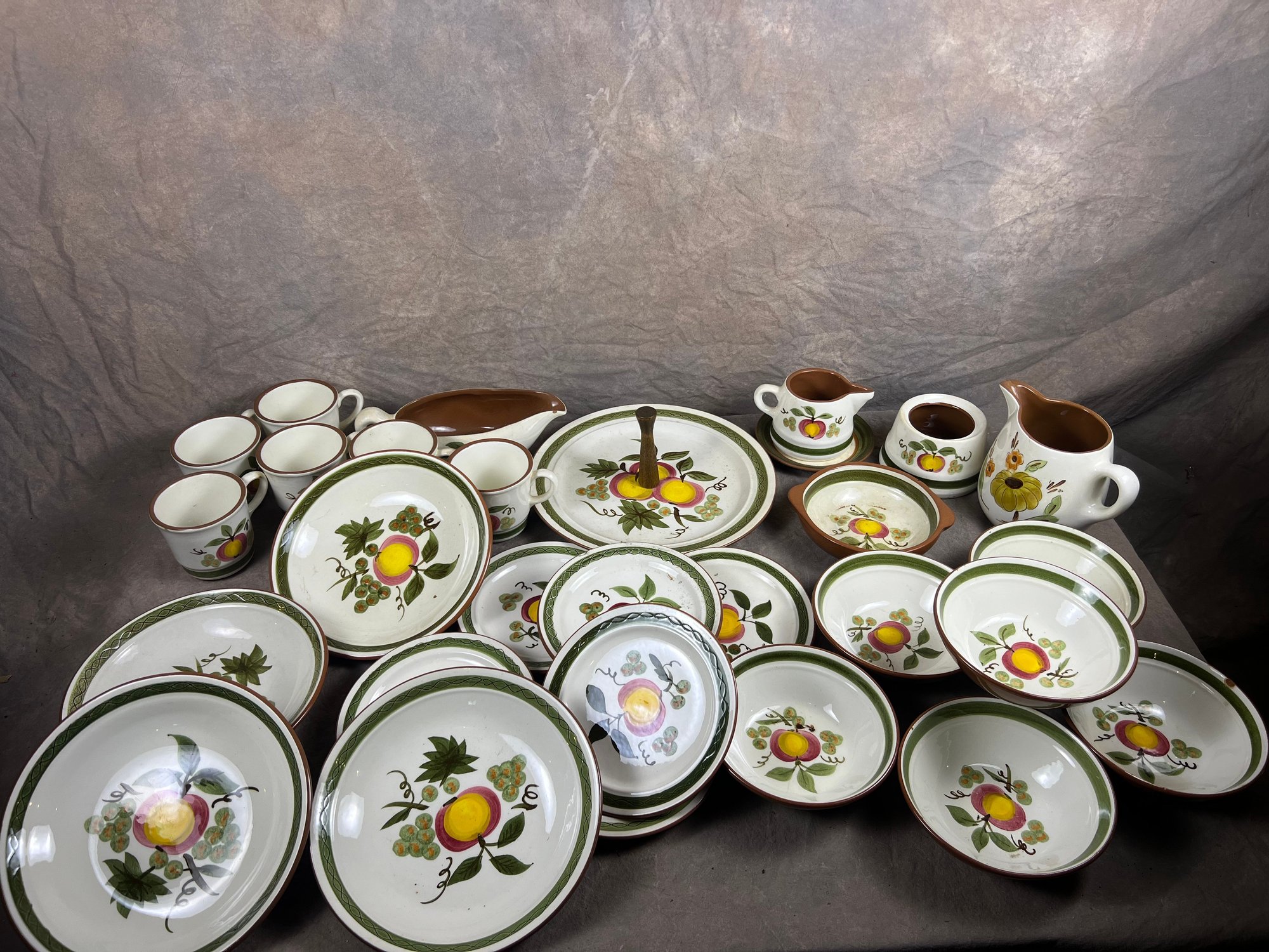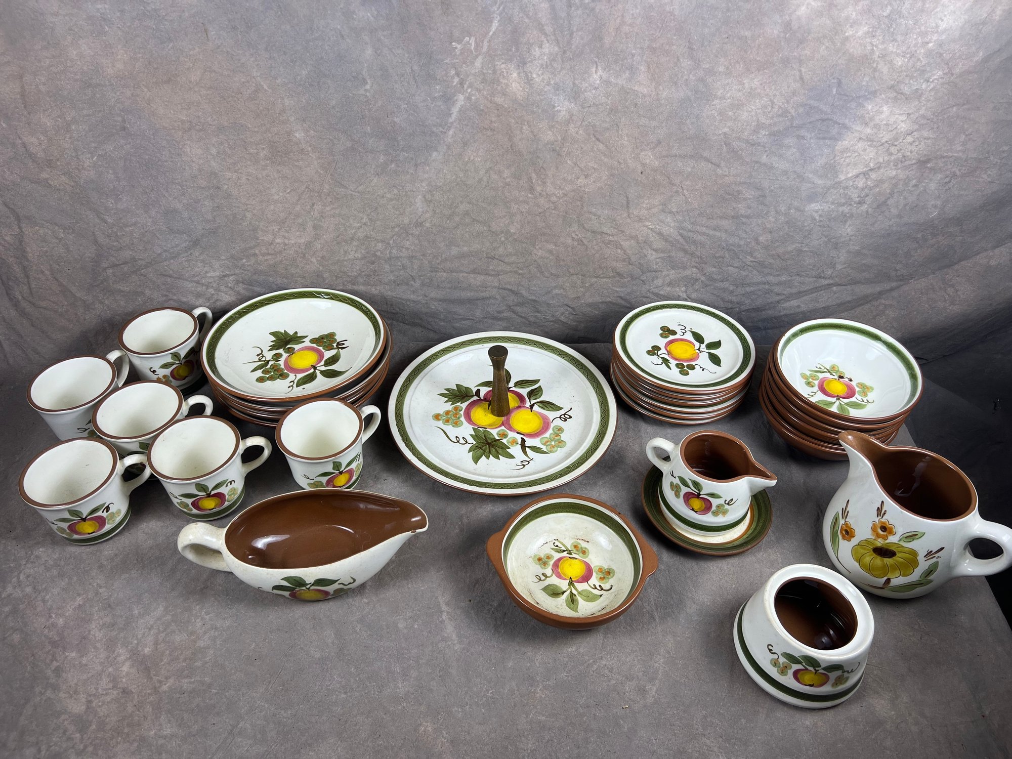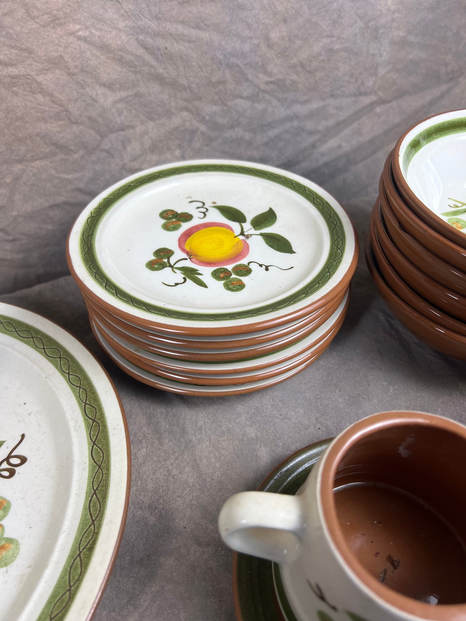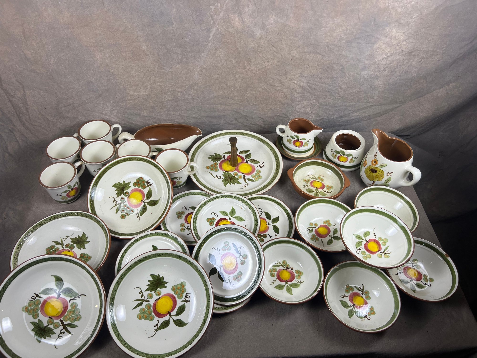Large Vintage Hand Painted Stangl Pottery Fruit Pattern Dinnerware Set, mid 20th century, in good condition