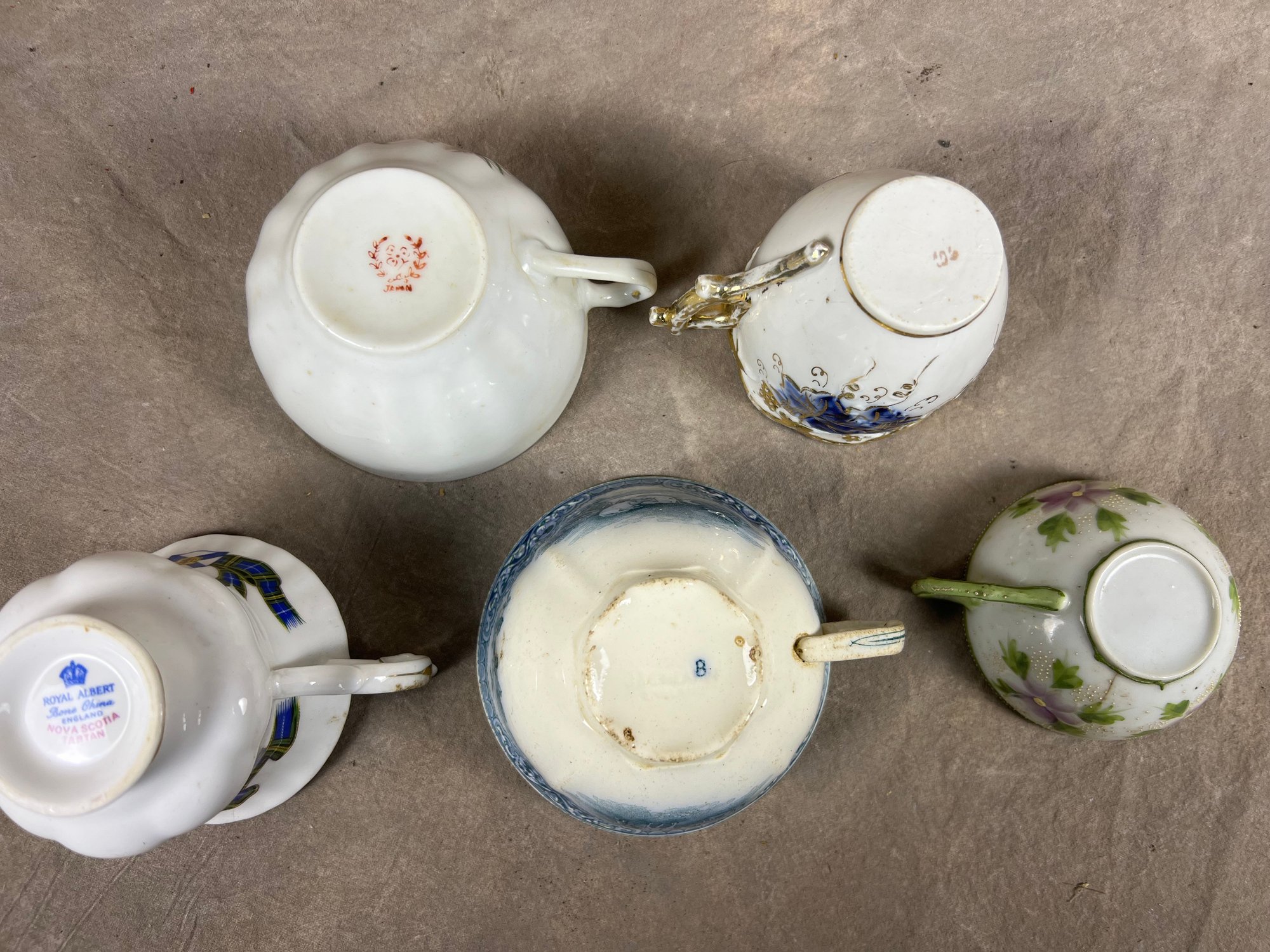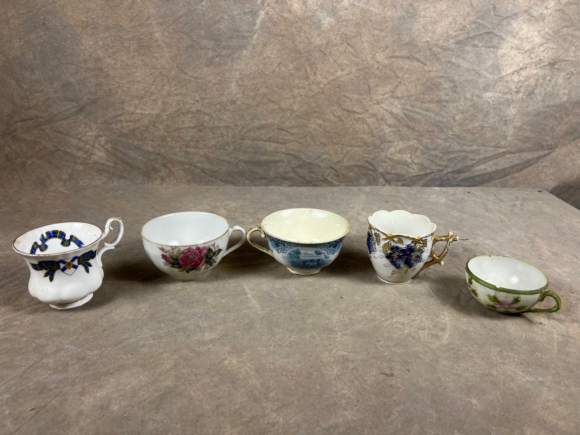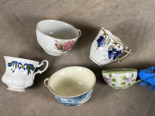 Group Of Five Painted Teacups, Varying In Designs And Origins, in good conditions, requires individual cleanings